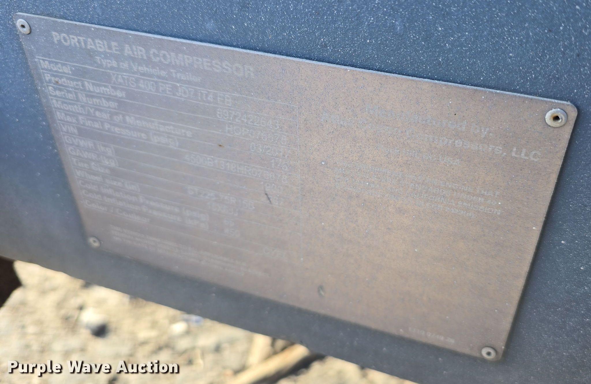 Purple Wave is selling a used Air Compressor in Nebraska. This item is a 2017 Atlas Copco XATS 400 PE JD7 IT4 EB air compressor with the following: Hours: 2,661 on meter, VIN: 4500B1318HR076678, Serial: HOP076678