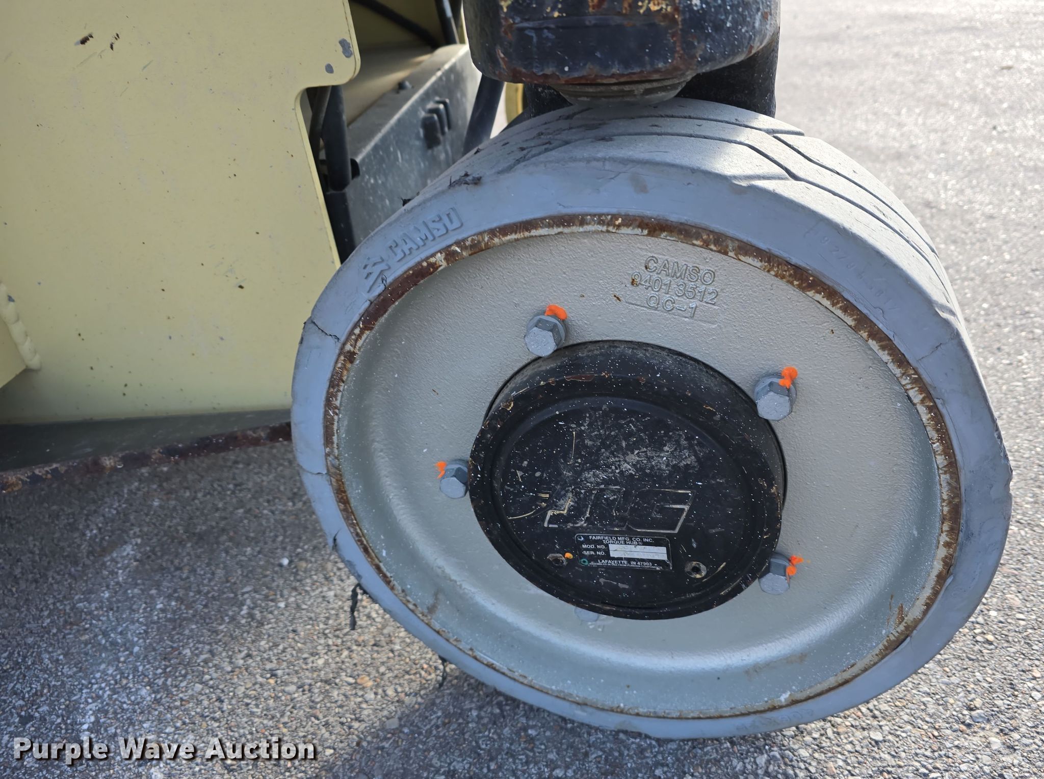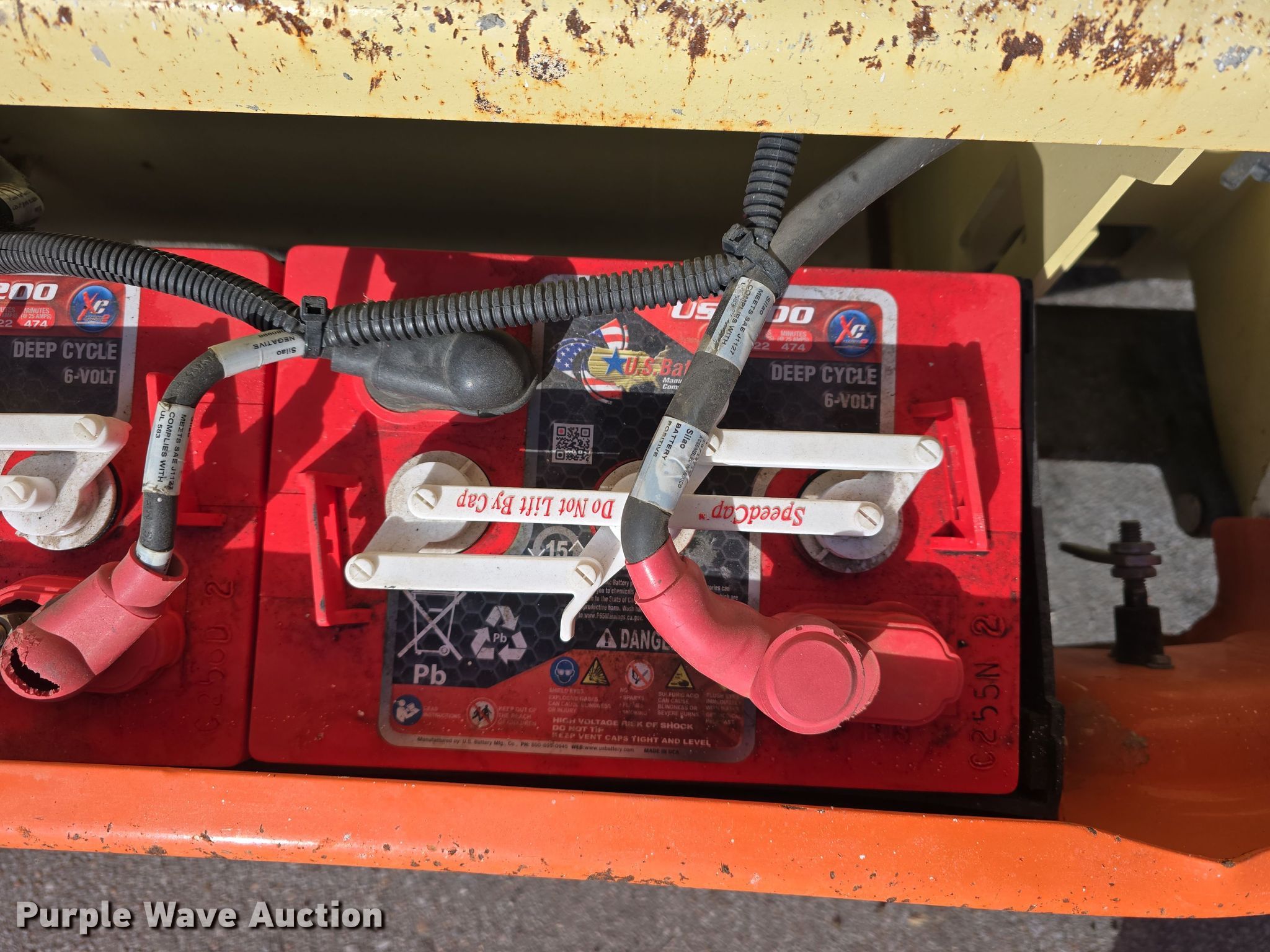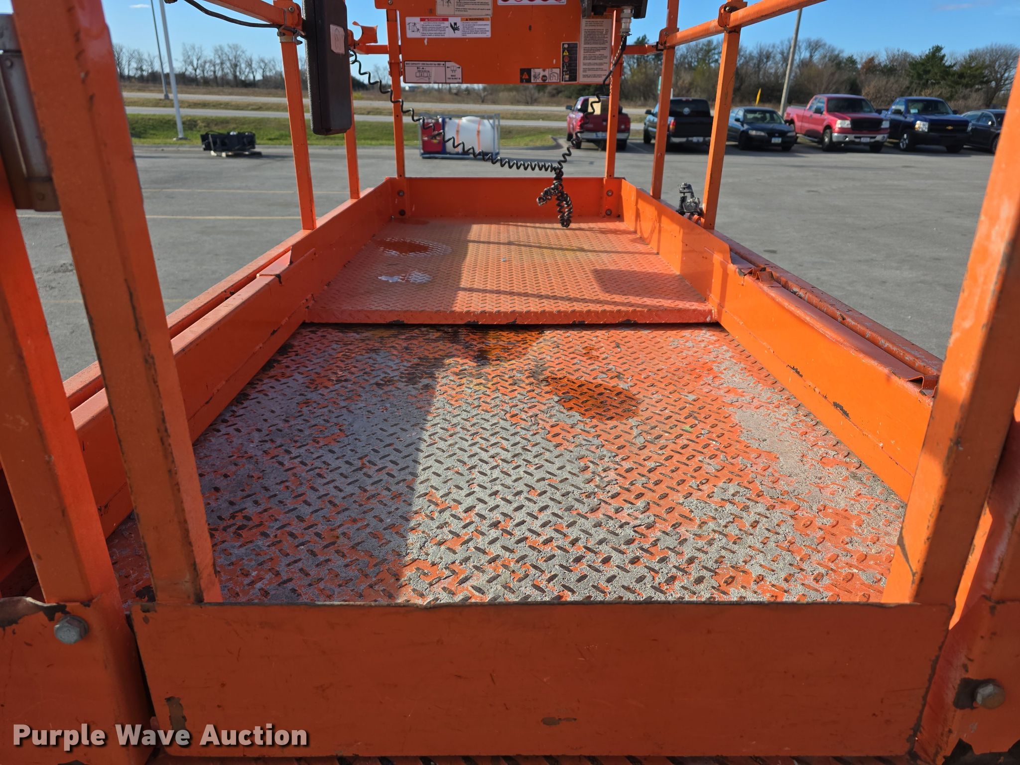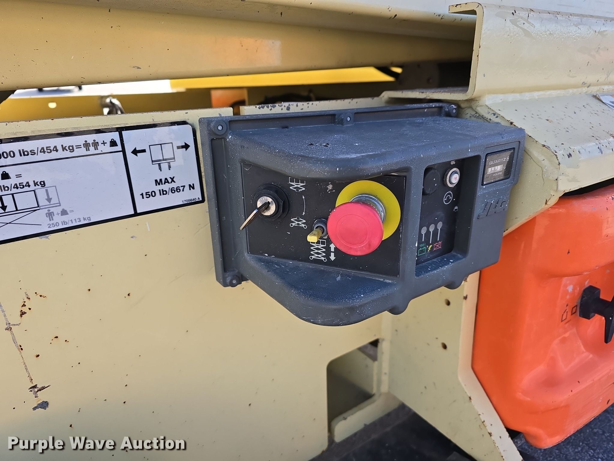 2017 JLG 2646 ES scissor lift. Hours: 49 on meter, Serial: 0200263689. Electric Motor Volts: 24. Features Maximum lift capacity: 1,000 lbs, Maximum lift height: 26', Platform: 146" L x 44" W, AC power outlet, Controls: Remote Control, Ground, Platform extensions: Manual, Safety alarm. Tires Tire size: 406X125, Solid, Non-marking. Notes Platform extension manual release lock issues, possible broken bolt. Jordan Machinery/ S & N Auto Sales. Waterloo, NE 68069