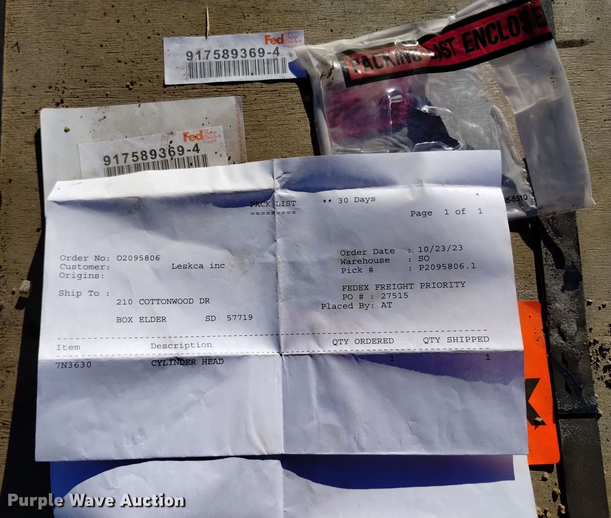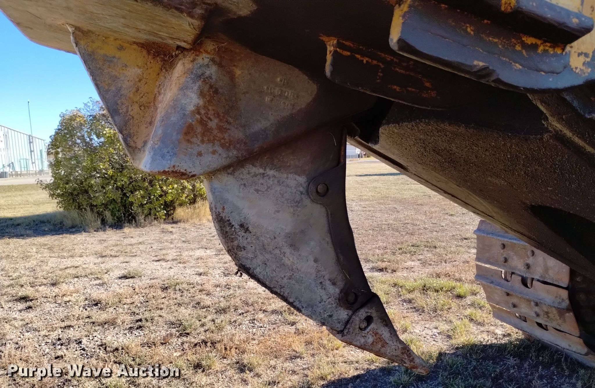 1977 Caterpillar D9H dozer. Hours: 1,276 on meter, Serial: 90V5569. Engine Caterpillar D353E, Serial: 97U8647, Cylinders: 6, Fuel type: Diesel. Transmission Powershift, 3F - 3R. Operators station Enclosed cab, Heat, Steering: Clutch brake. Features Dozer blade Type: Semi-U, Single-tilt, Width: 162" W, Attachments Ripper Caterpillar No. 9, Shanks: 1.. Tracks Width: 29", Grouser pads: Single, Bottom rollers: 7, Track guards. Notes Additional parts, Ripper issues, hydraulic leak. Leskca Inc. Box Elder, SD 57719