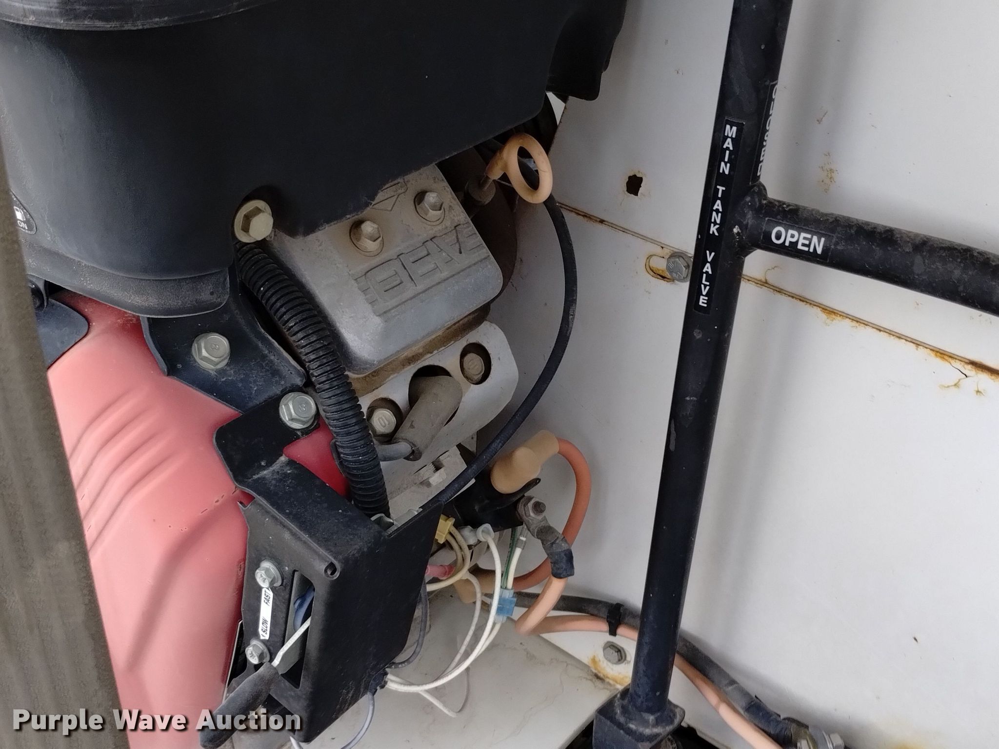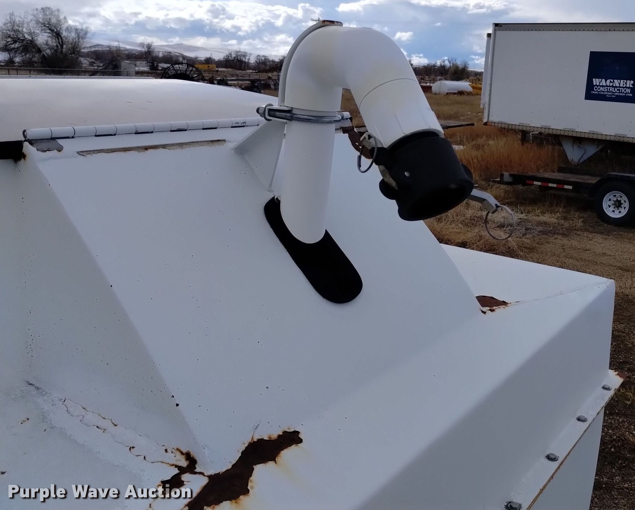 Turf Maker hydroseeder. Serial: 109032. Engine Briggs & Stratton Vanguard, Cylinders: 2, Fuel type: Gas, HP: 16. Features Hose reel Diameter: 17.5", Hose Diameter: 2", Tank Capacity: 535 gallons. Notes Trailer not included, Engine issues , Non-operational unit. Wagnercorp. Craig, CO 81625