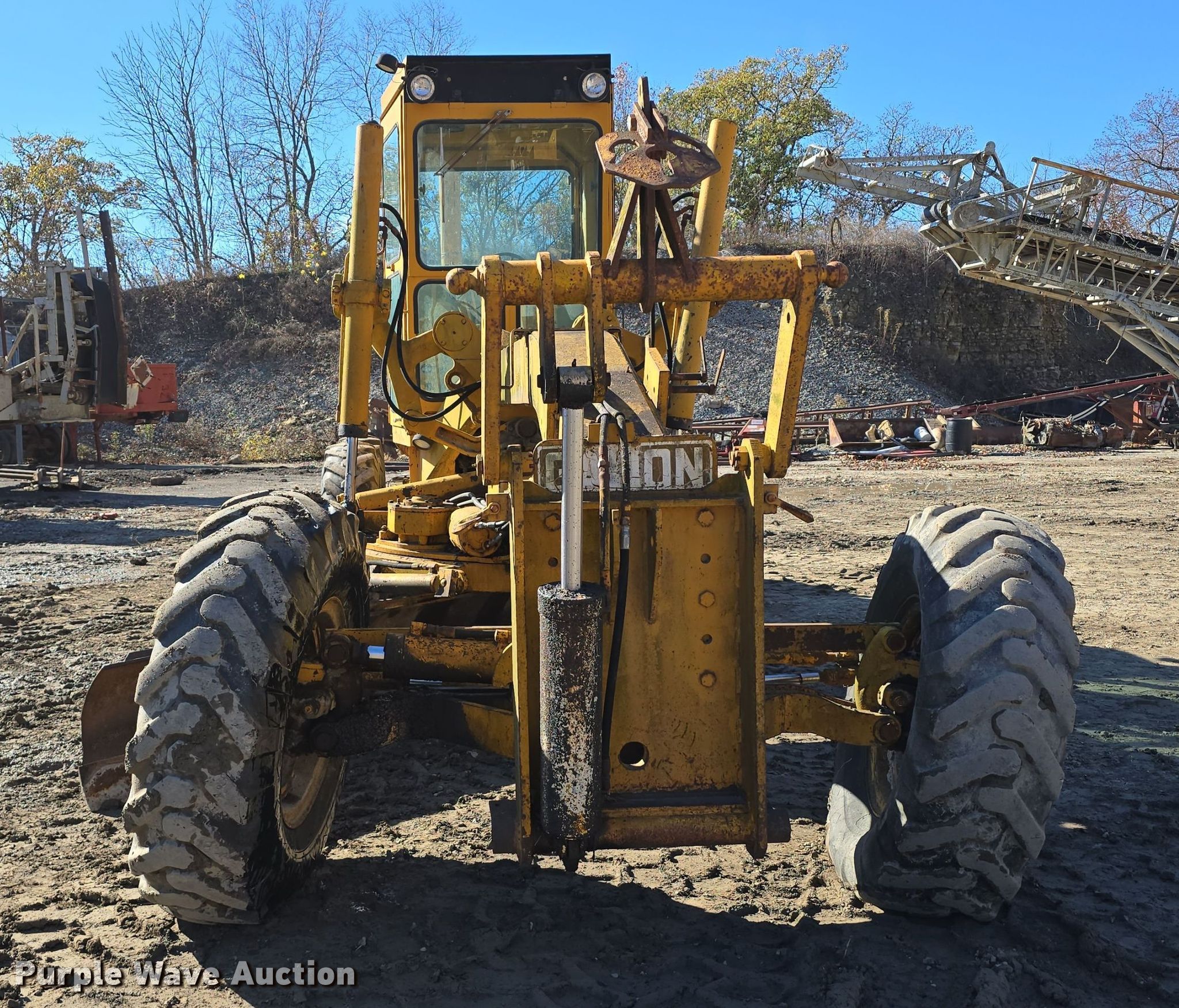 Galion T500C rigid frame motor grader. Hours: 489 on meter Actual hours unknown, Serial: 08618. Engine Detroit Diesel, Cylinders: 4, Fuel type: Diesel. Transmission Powershift, 4F - 4R. Operators station Enclosed cab, Heat, Hydraulic control valves: 8. Features Moldboard: Tip control, Side shift, Moldboard total width: 14', Front-mounted lift group. Tires Size: 14.00-24TG. Notes Hour meter has been replaced, Hydraulic leaks, Dead battery. Whet Rock Quarry. Amazonia, MO 64421