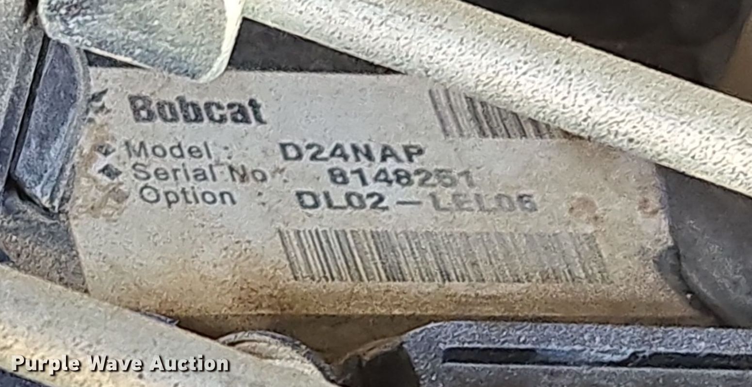 2018 Bobcat T650 tracked skid steer loader. Hours: 4,736 on meter, Serial: ALJG26793. Engine Bobcat D24NAP, Displacement: 2.4L, Cylinders: 4, Fuel type: Diesel. Transmission Hydrostatic, Two speed travel. Operators station Enclosed cab, AC, Heat, Bucket control: Selectable, Electronic Monitoring System panel. Features Auxiliary hydraulics, Auxiliary electrical outlet, Quick coupler: Hydraulic, Bucket Width: 78", Cutting edge: Bolt-on. Tracks Width: 18". BC Hardscapes. Kansas City, MO 64119