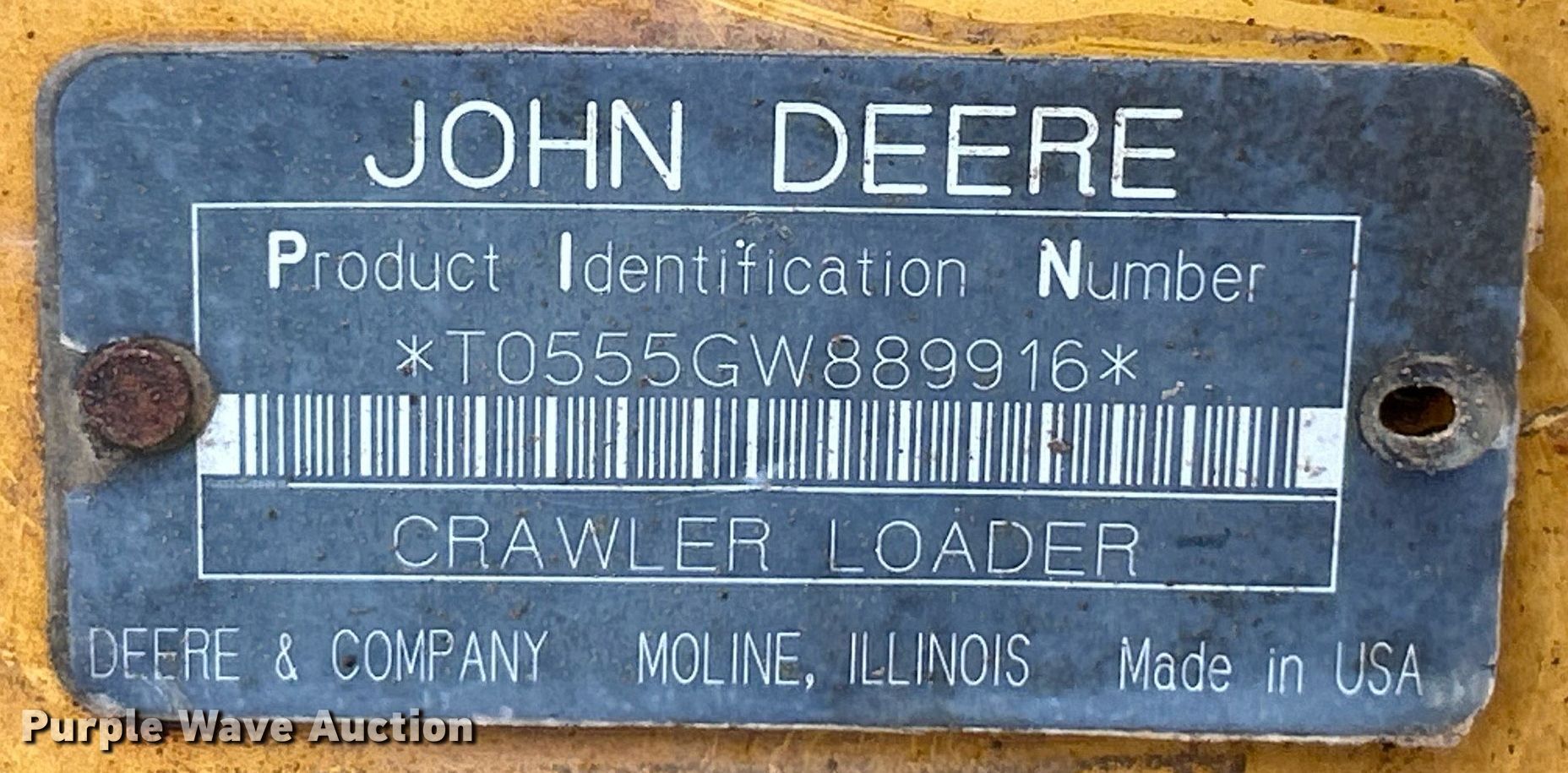 Purple Wave is selling a used Crawler Loader in Missouri. This item is a 2000 John Deere 555G WT Series IV track loader with the following: Hours: 3,333 on meter, Serial: T0555GW889916