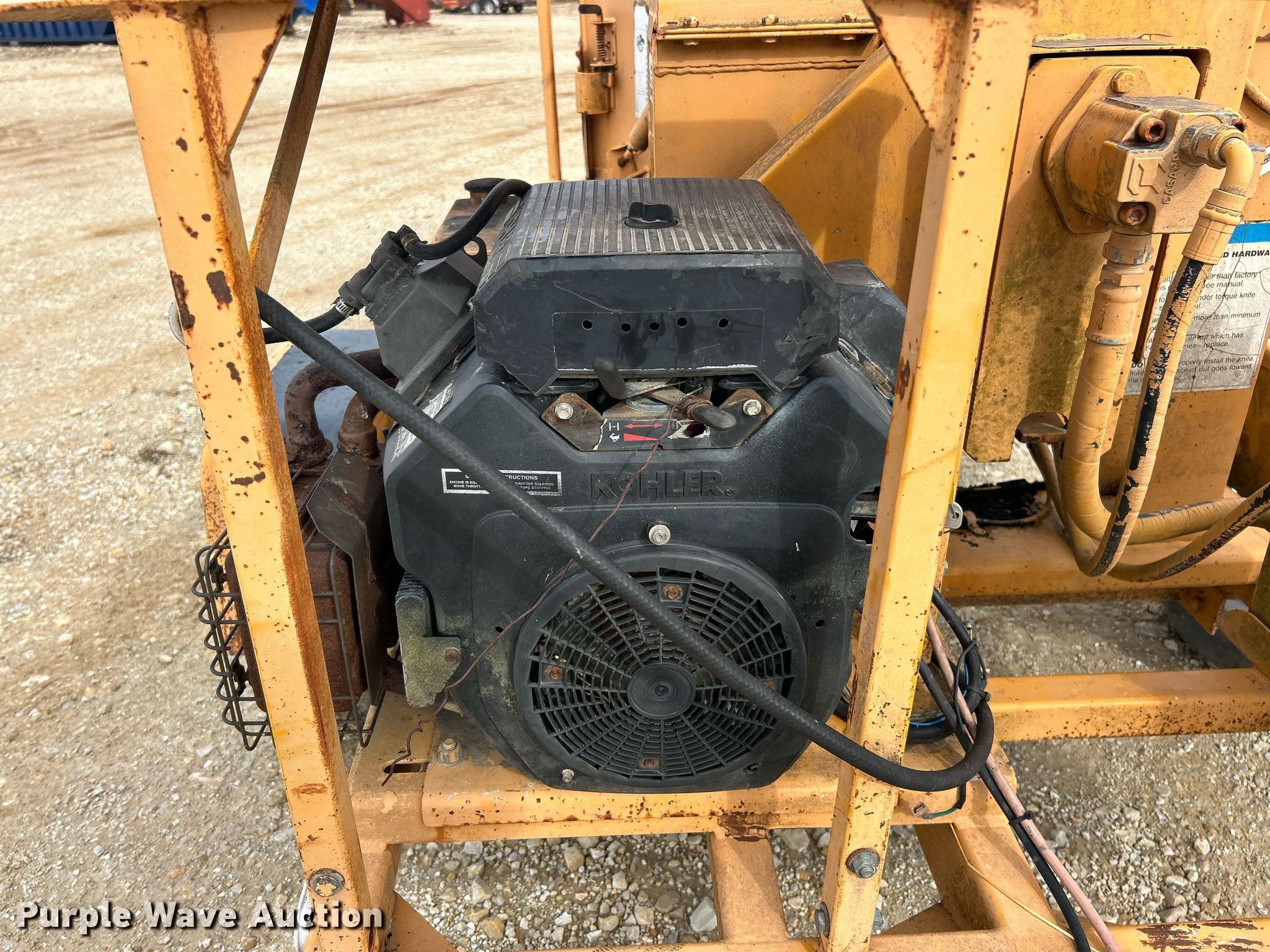 Bandit 65AW wood chipper. Serial: 005677. Engine Kohler Command 25, Displacement: 725 cc, Cylinders: 2, Fuel type: Gas, HP: 25. Features Capacity: 6", Throat opening: 12" x 9". Trailer 9.5' L x 66" W, Ball hitch size: 2", Suspension: Spring, Axles: Single, Tire size: 5.30-12. Transfer of ownership documentation will be a bill of sale. Hunter Modular Construction. Jonesburg, MO 63351