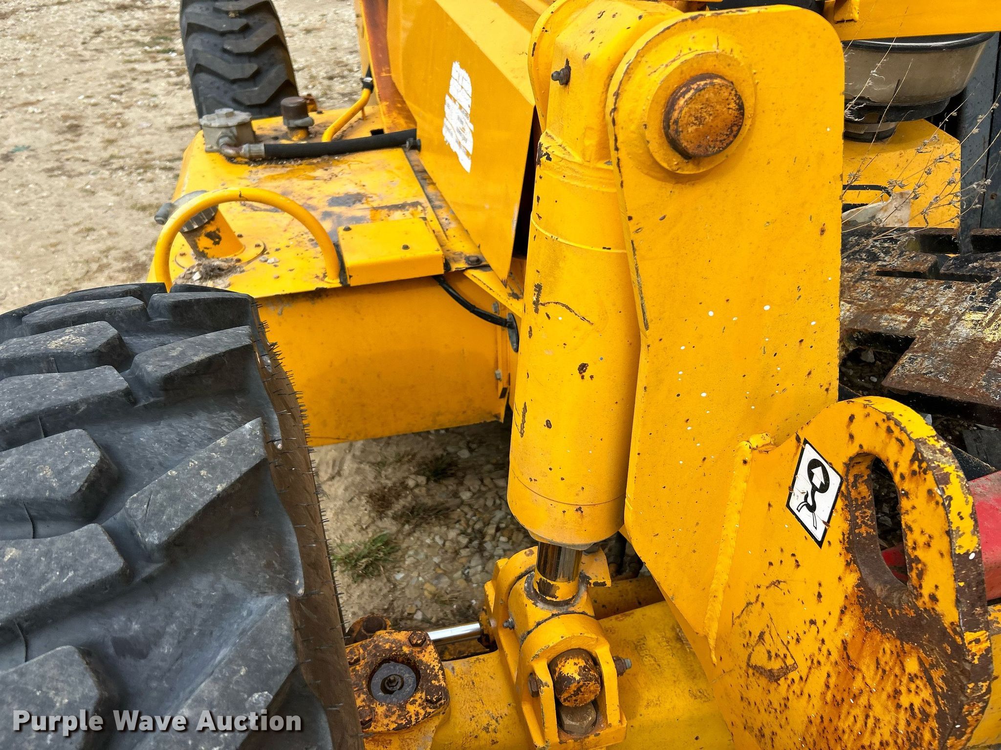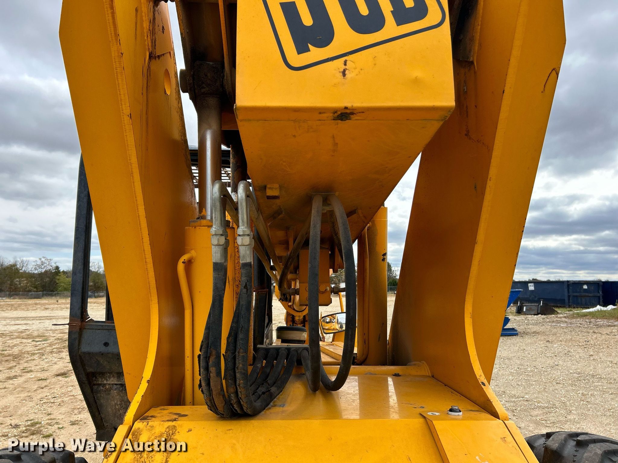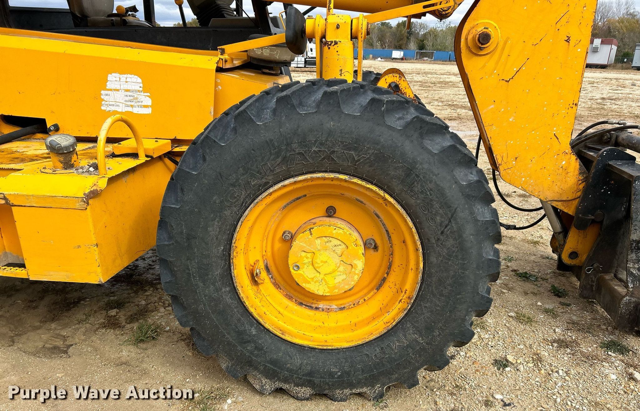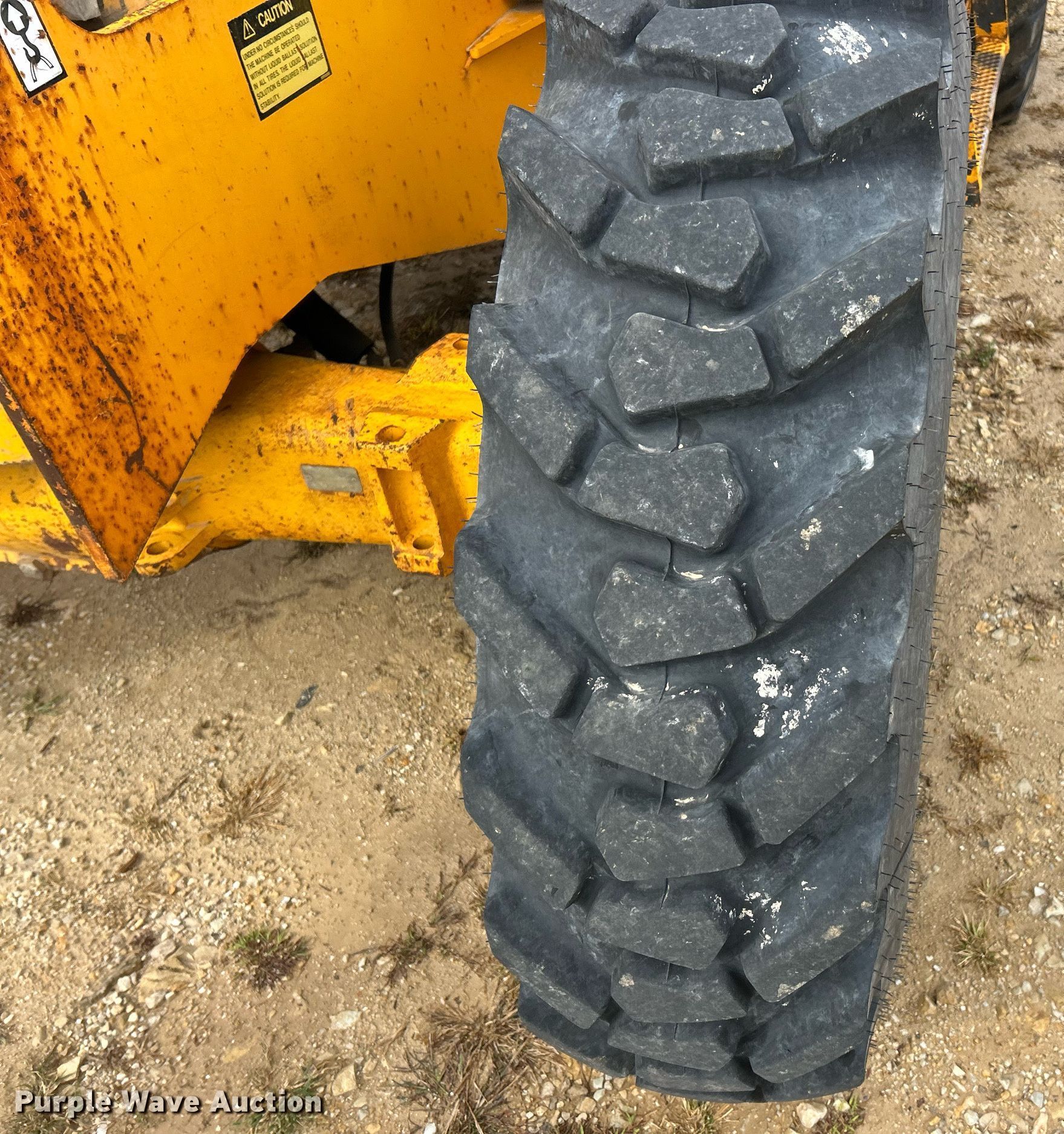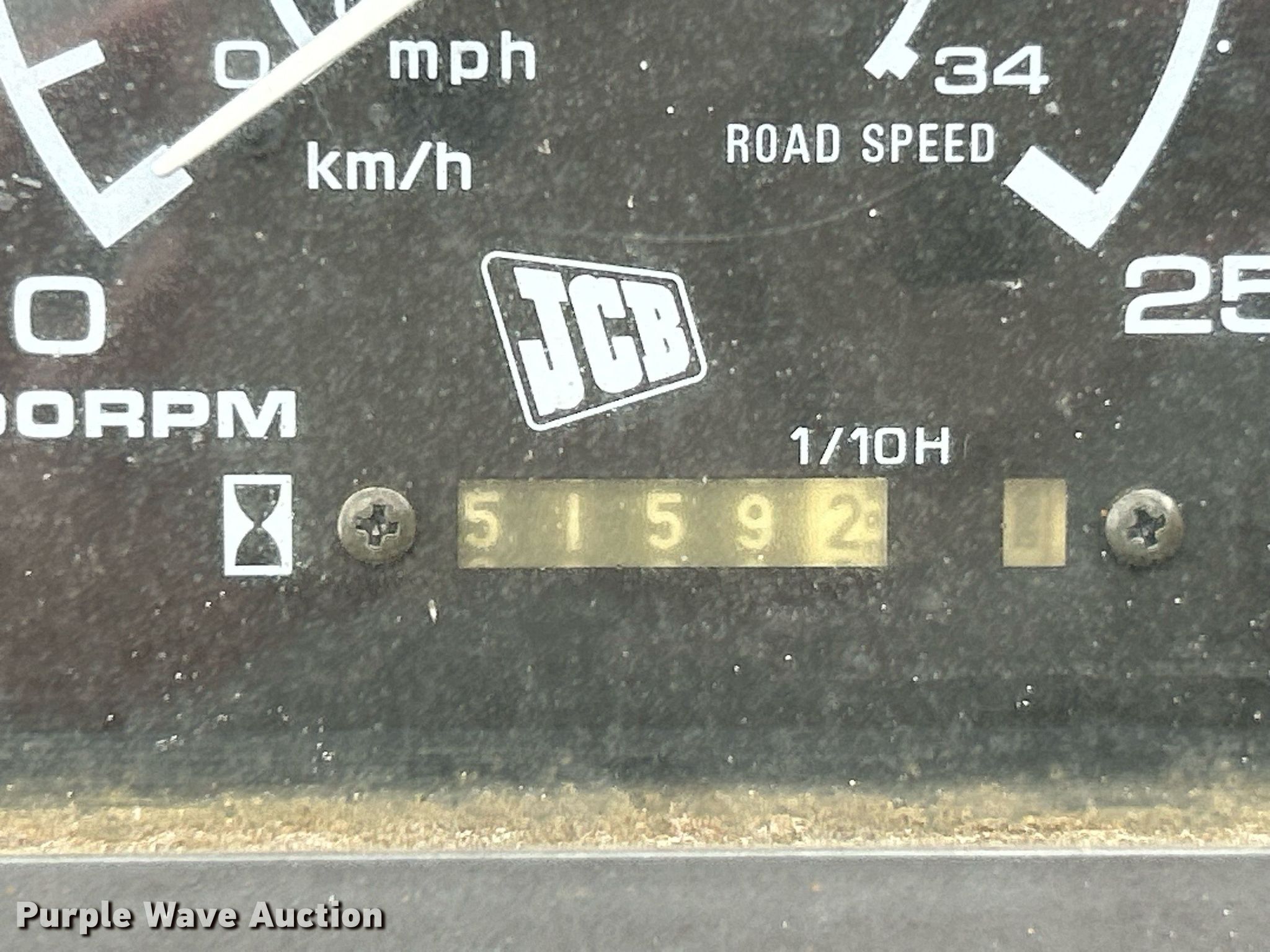 1999 JCB 506C telehandler. Hours: 5,159 on meter, Serial: SLP506C0XE0585994. Engine JCB, Cylinders: 4, Fuel type: Diesel. Transmission Shuttle shift, Four wheel drive. Operators station OROPS, Steering: Crab, Four wheel. Features Maximum lift capacity: 6,000 lbs, Boom stages: 3, Fork length: 47", Auxiliary hydraulics, Tilt carriage, Hydraulic leveling. Tires Size: 13.00-24. Notes Engine issues. Hunter Modular Construction. Jonesburg, MO 63351