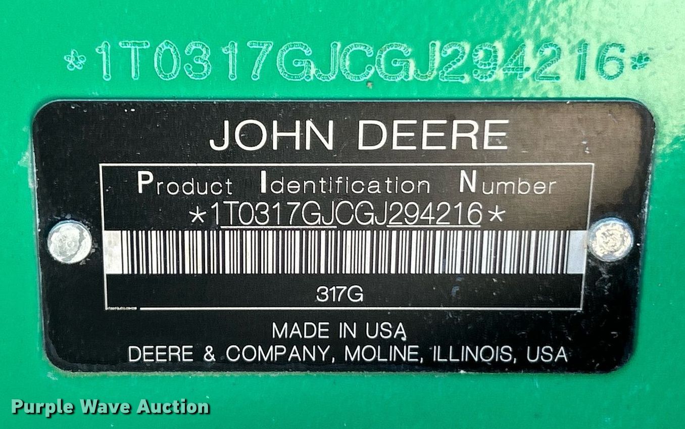 Purple Wave is selling a used Tracked Skid Steer Loader in Missouri. This item is a 2016 John Deere 317G tracked skid steer loader with the following: Hours: 1,867 on meter, Serial: 1T0317GJCGJ294216