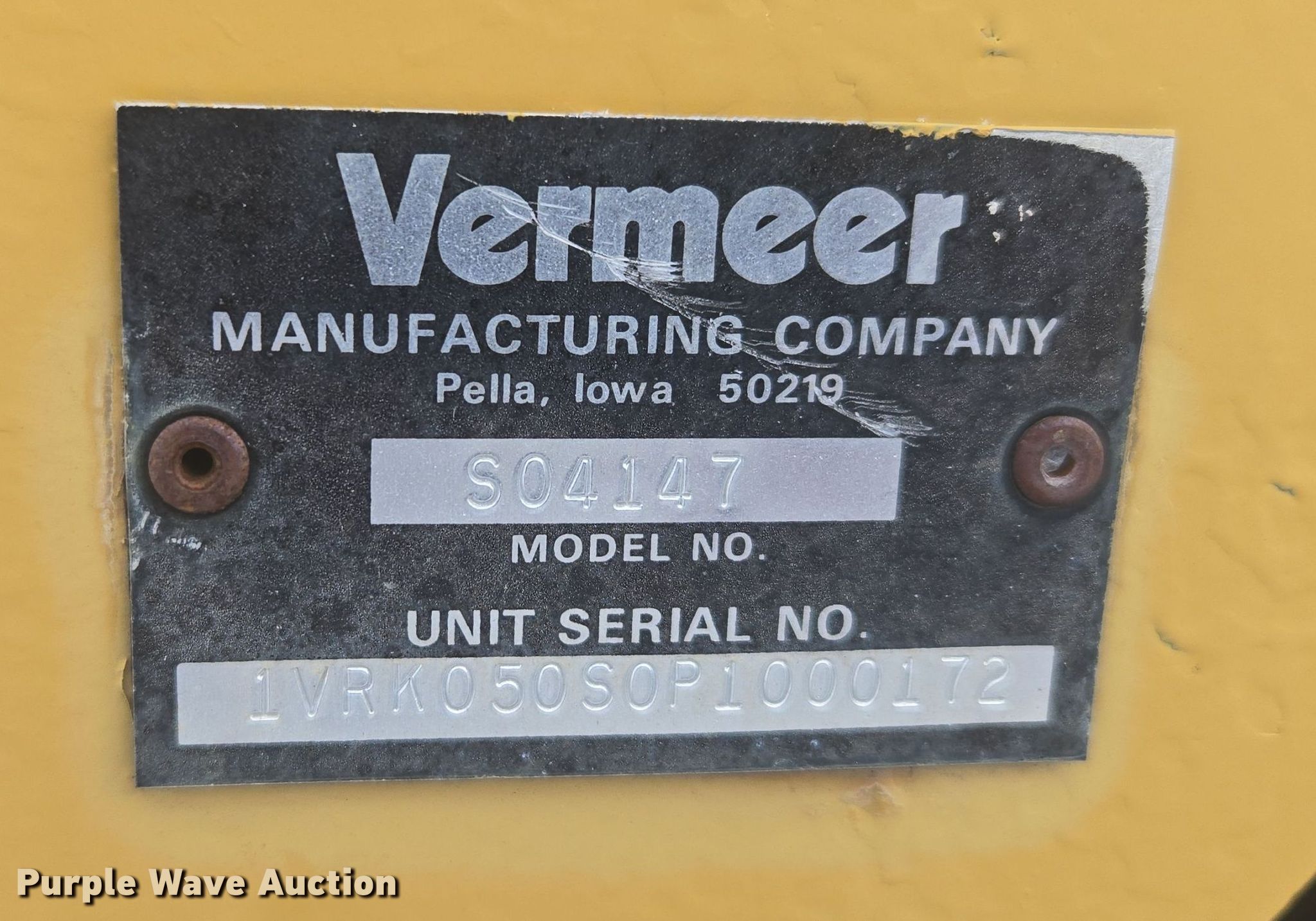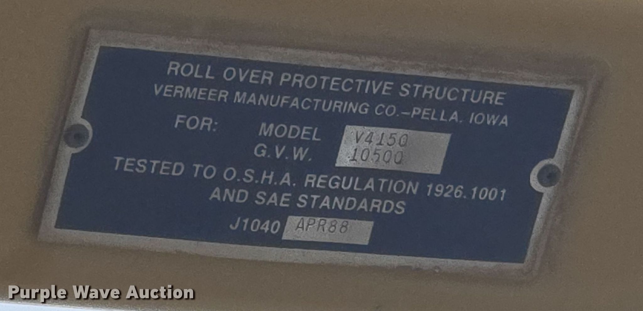Purple Wave is selling a used Trencher or Rock Saw in Wyoming. This item is a 1993 Vermeer V4150 trencher with the following: Hours: 883 on meter, Serial: 1VRF08206P1000305