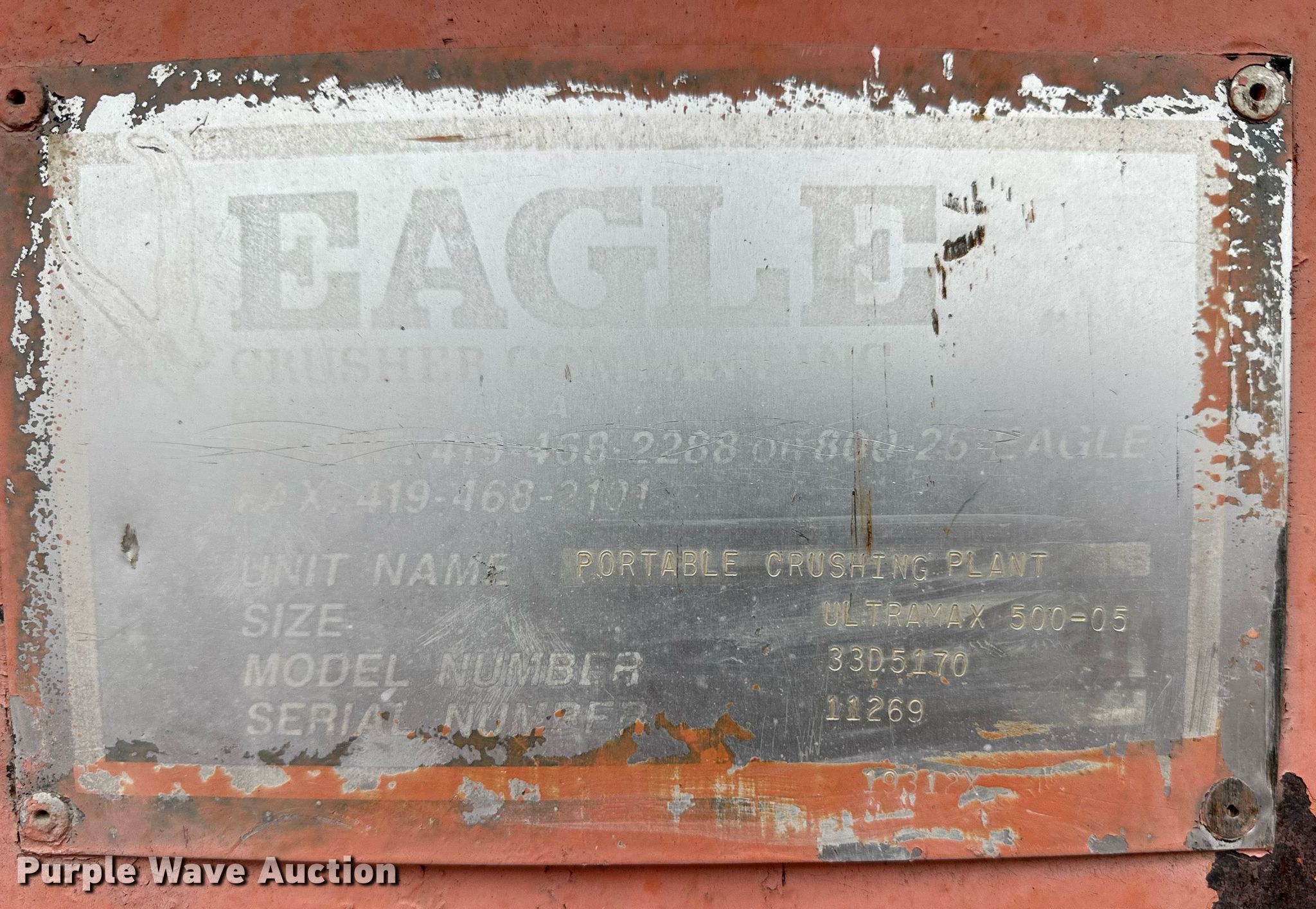 Purple Wave is selling a used Crusher or Crushing Plant in Kansas. This item is a 1997 Eagle 33D5170 crushing plant with the following: Hours: 3,345 on meter, Serial: 11269