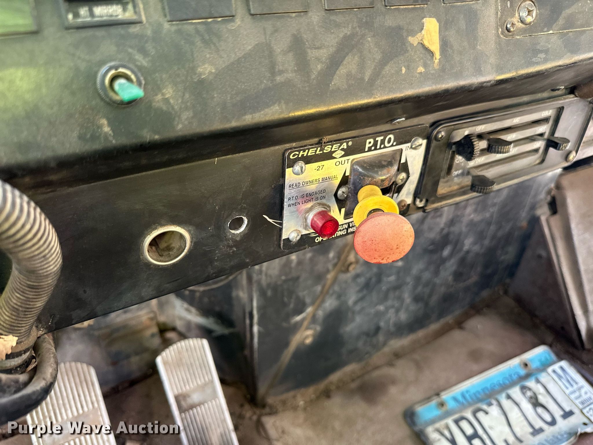 1989 International F9370 semi truck. Miles: 349,210 on odometer, Hours: 983 on meter, VIN: 2HSFBGUR6KC029639. Engine Cummins, Cylinders: 6, Fuel type: Diesel. Transmission Eaton fuller, Manual. Chassis Axles: Tandem, Differential lock: Inter-axle, Brakes: Air, PTO, Truck chassis: 12', GVWR: 48,000 lbs FAWR: 12,000 lbs, RAWR: 18,000 lbs. Interior Heat. Features Fuel tank: Single. Tires Size: 11R22.5. Minnesota title. Knife River. Little Falls, MN 56345
