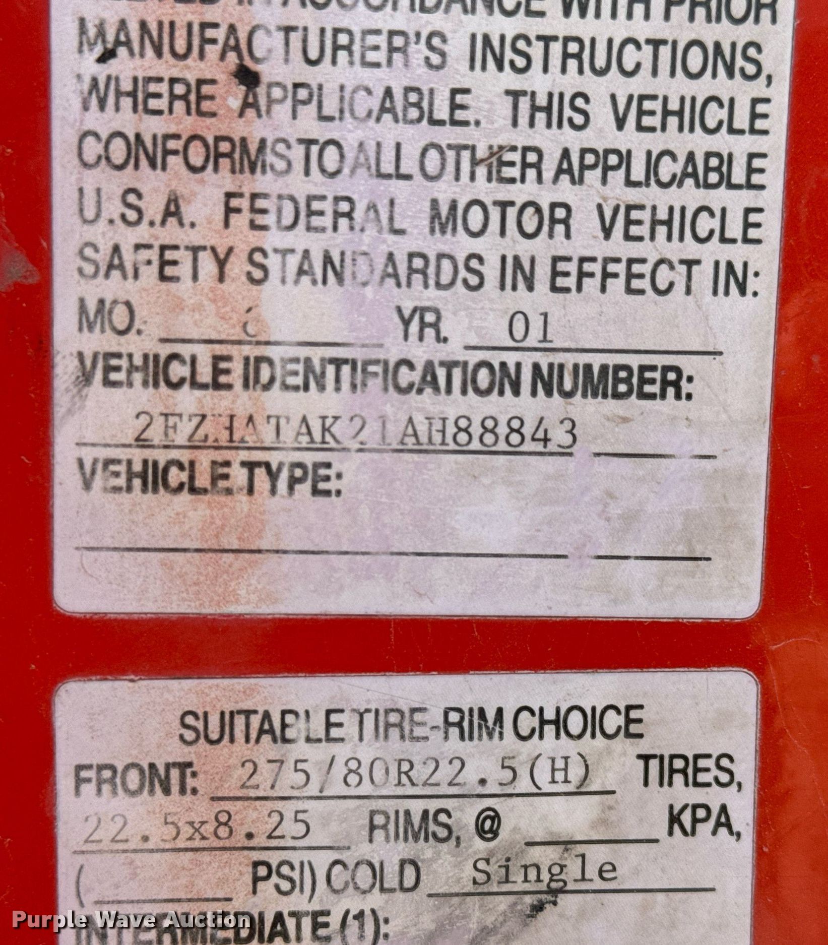 Purple Wave is selling a used Construction Dump Truck in Kansas. This item is a 2001 Sterling LT7500 dump truck with the following: Miles: 249,027 on odometer, Hours: 13,060 on meter, VIN: 2FZHATAK21AH88843, Unit #: NT74