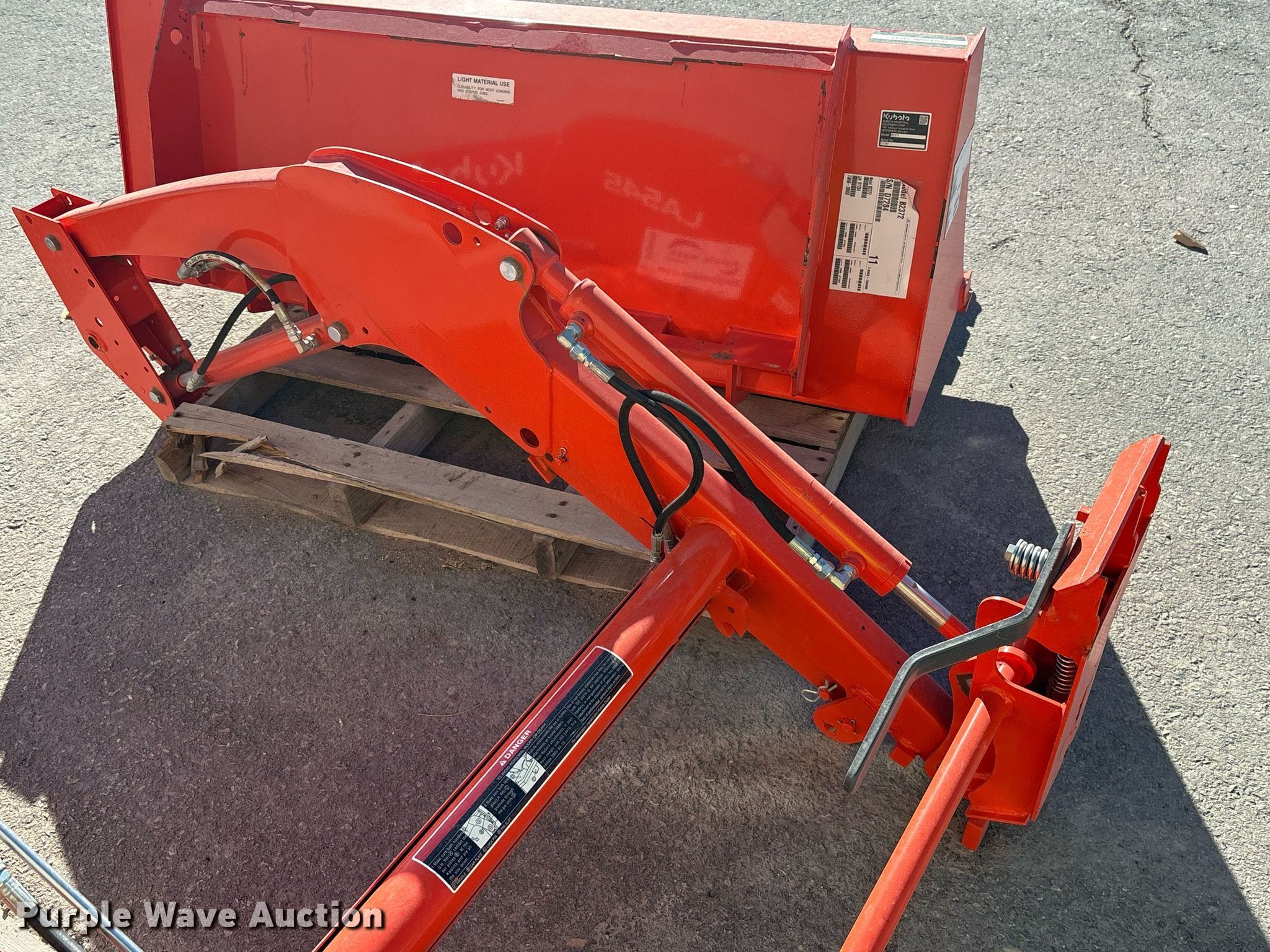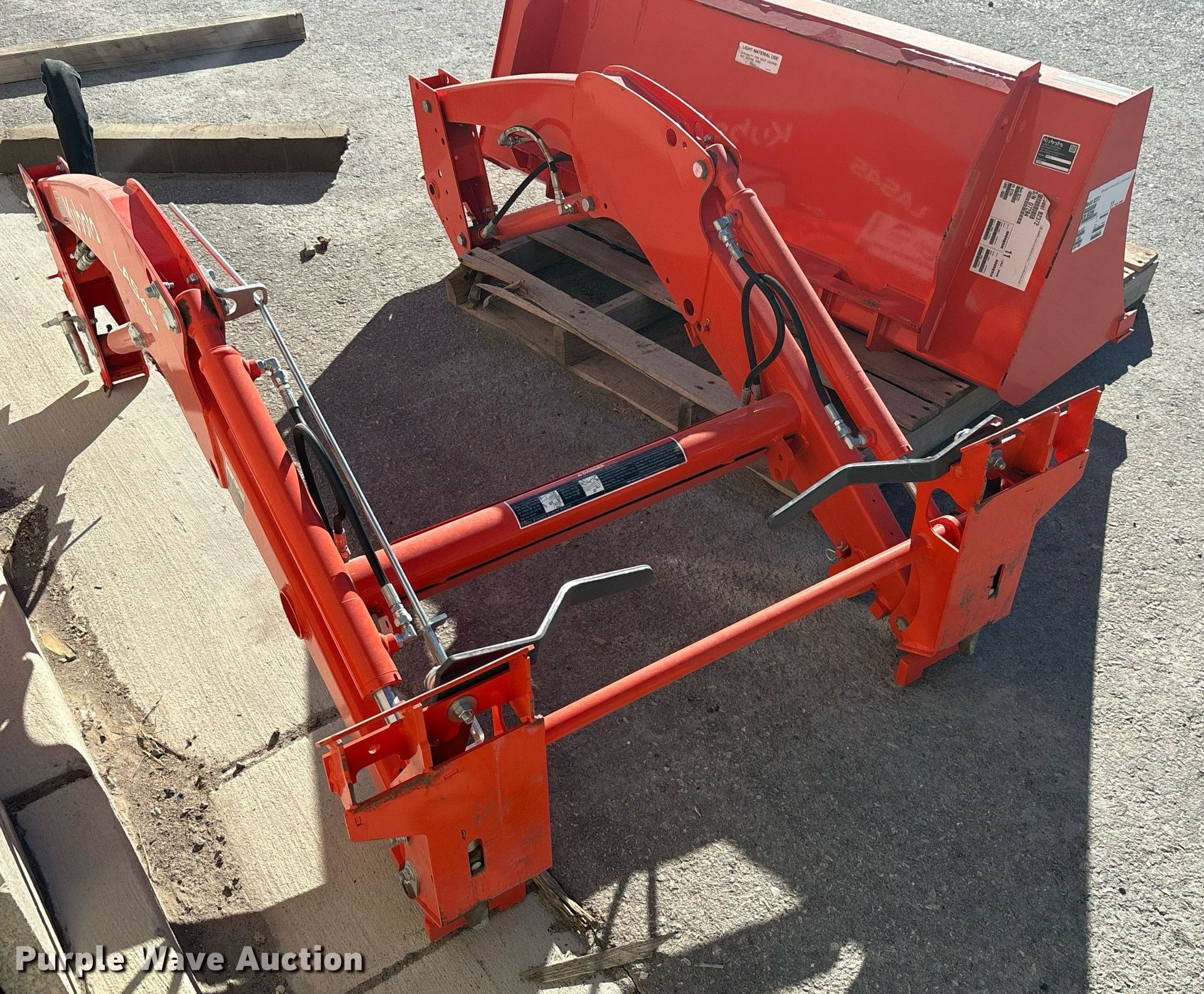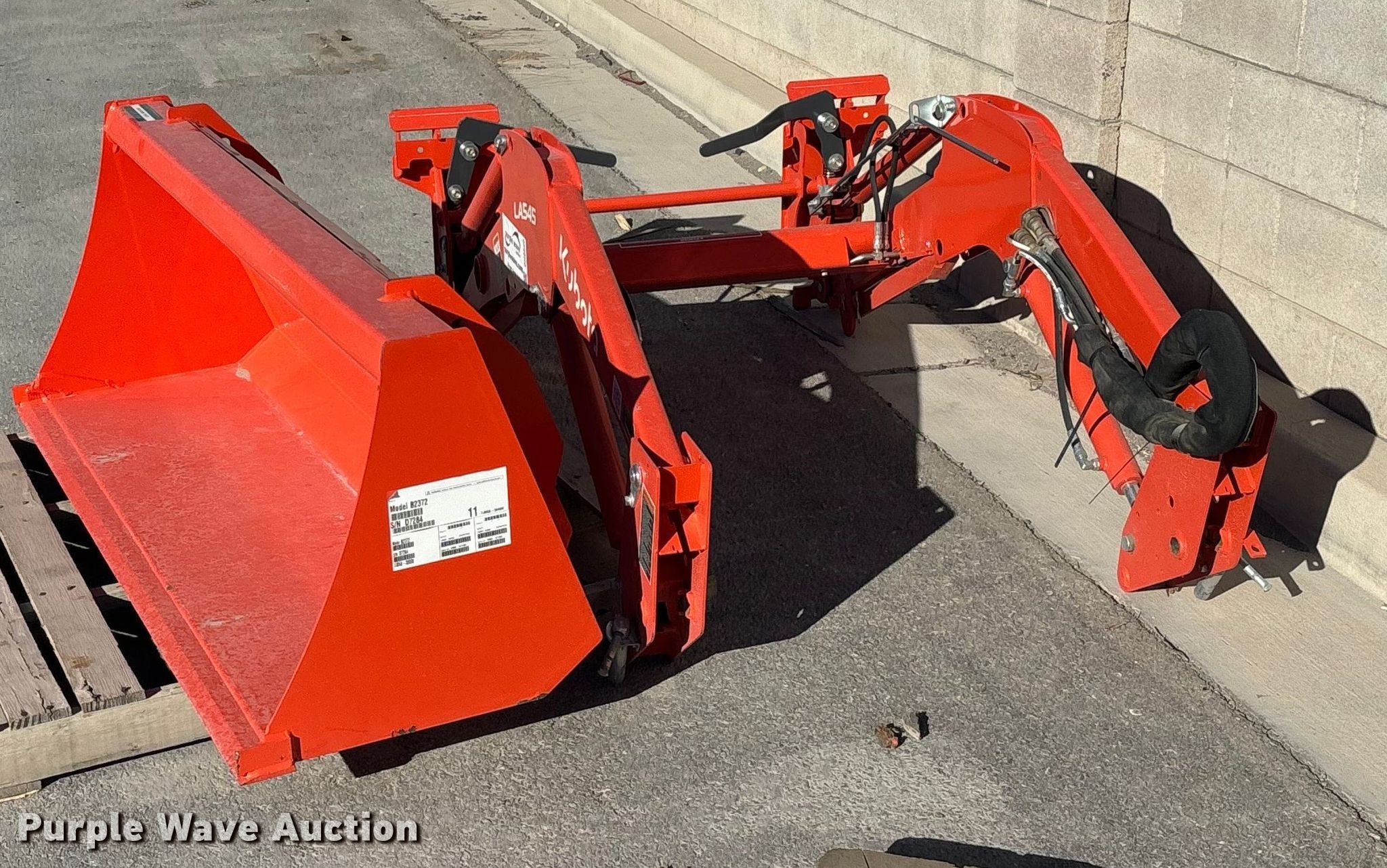 Purple Wave is selling a used Ag Tractor Loader or Attach. in Nevada. This item is a Kubota LA545 loader with the following: Bucket, Width: 60", Auxiliary hydraulics