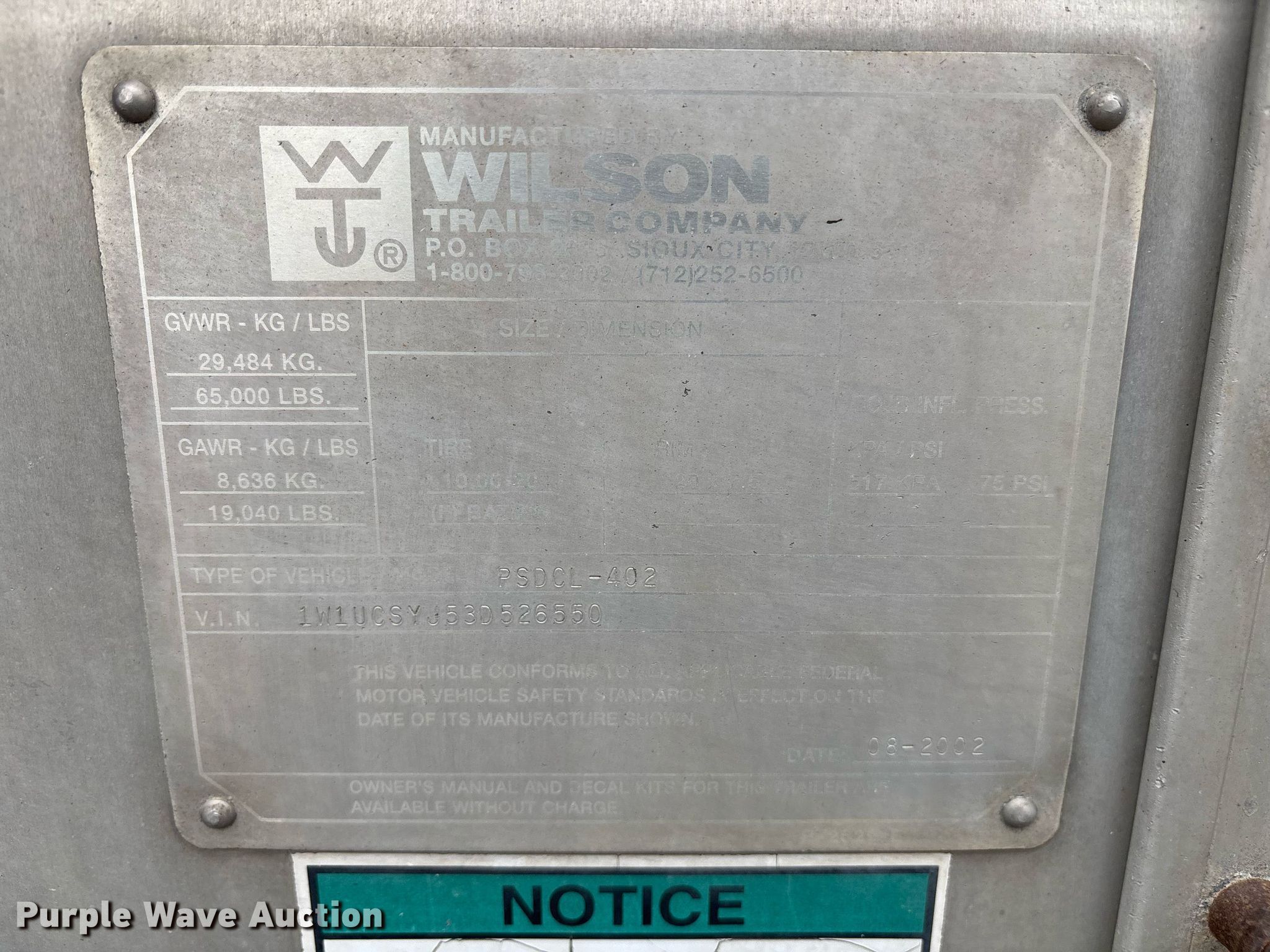 Purple Wave is selling a used Livestock Trailer in Oklahoma. This item is a 2003 Wilson PSDCL-402 livestock trailer with the following: VIN: 1W1UCSYJ53D526550