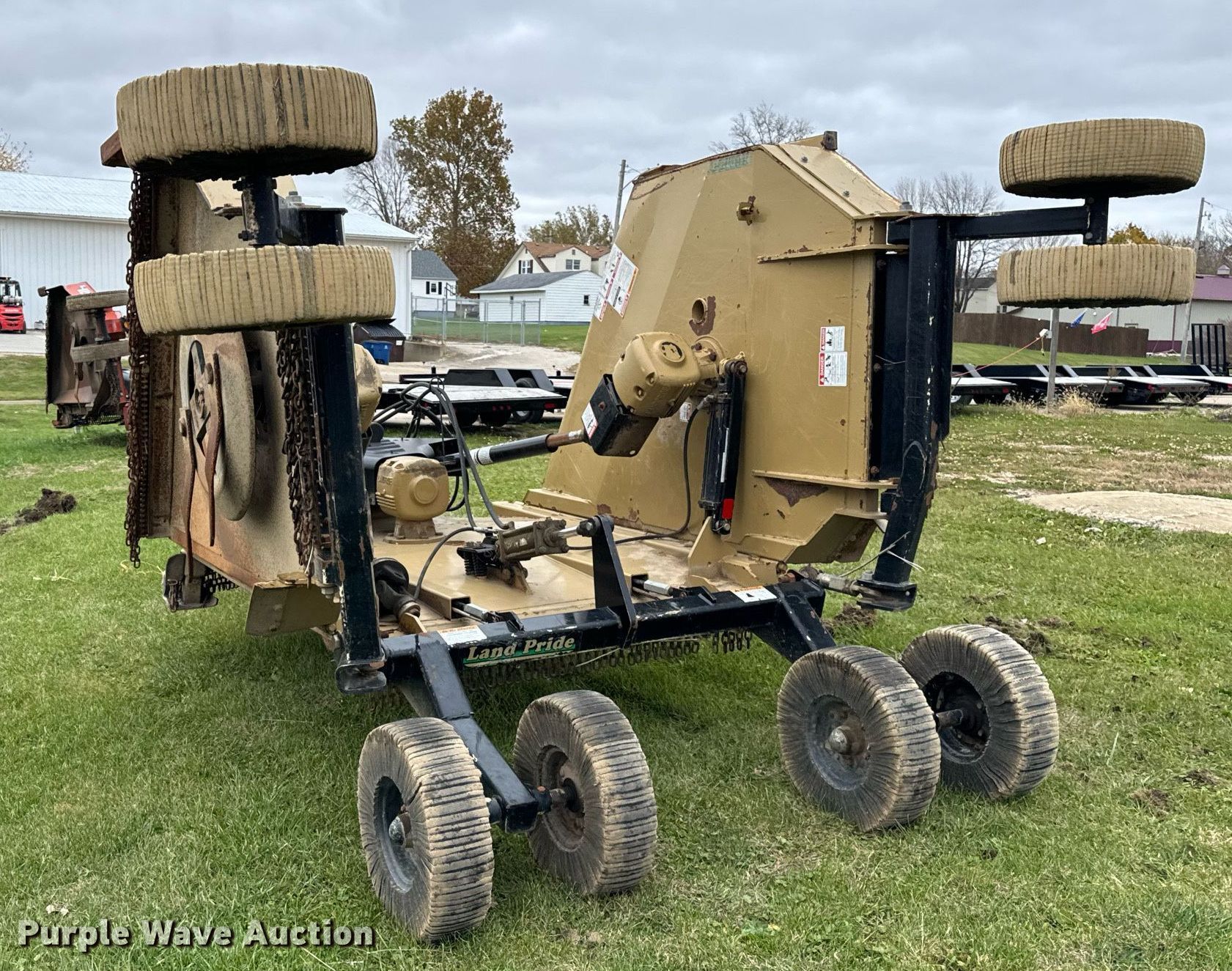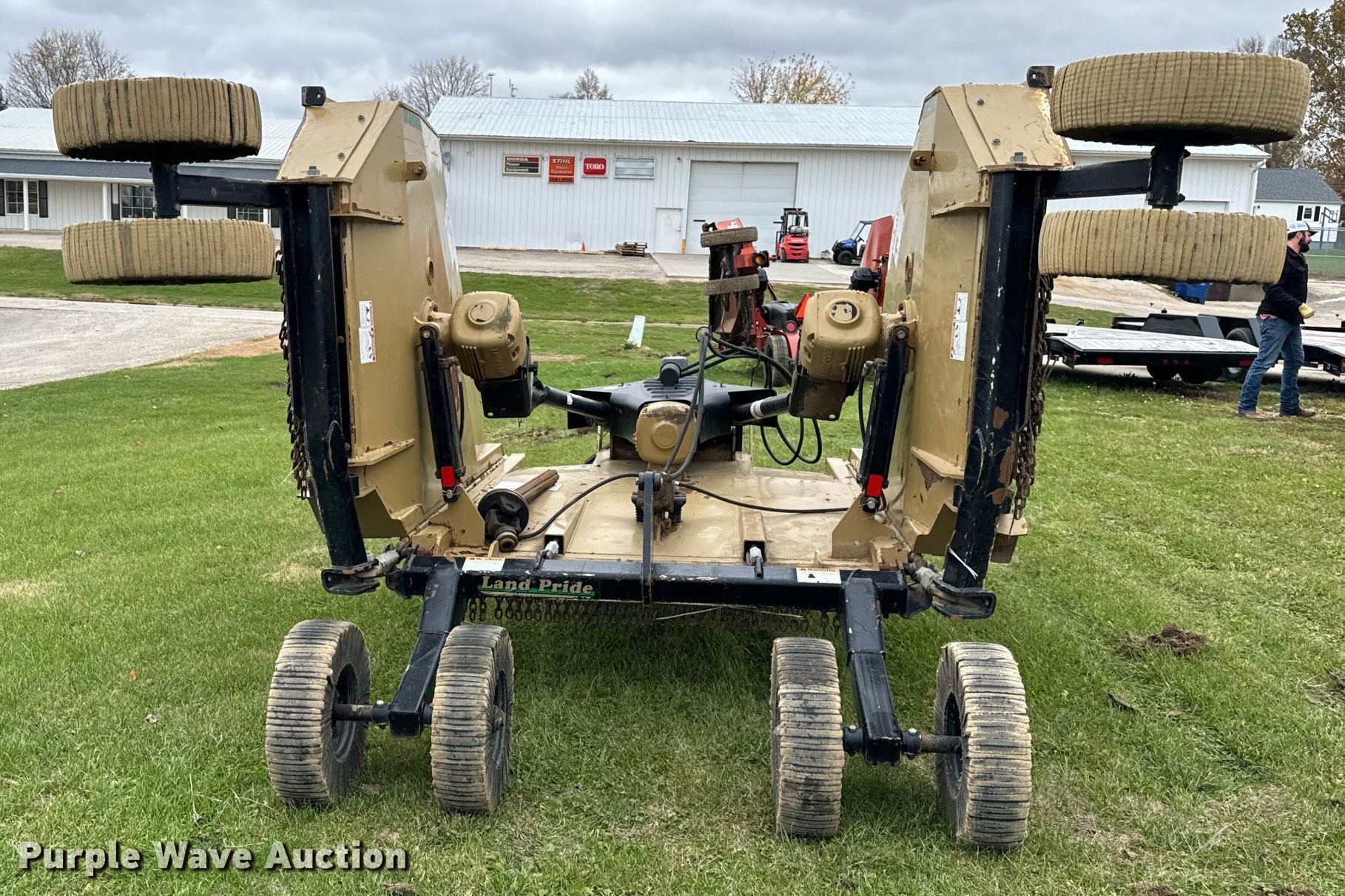 Land Pride RCM5515 batwing rotary mower. Serial: 574555. Features Width: 15', Hydraulic lift, Hydraulic fold, PTO: 1000. Tires Size: 18", Solid. Princeville, IL 61559