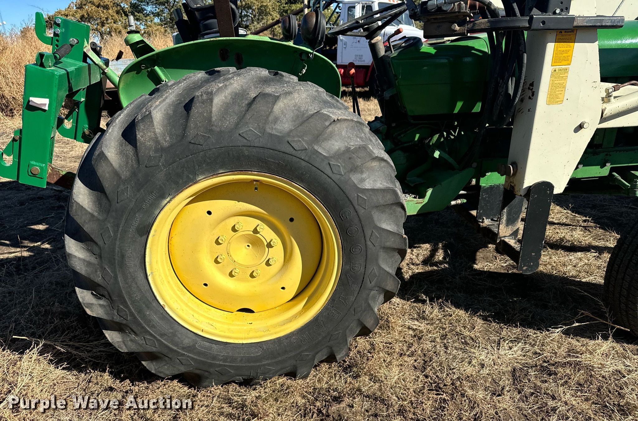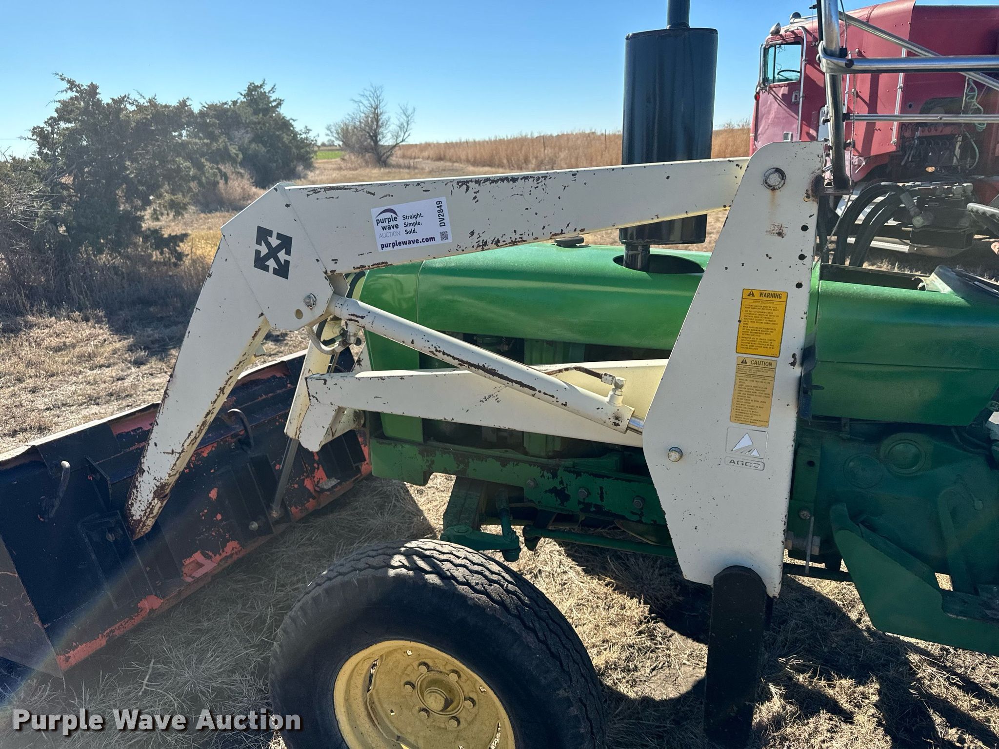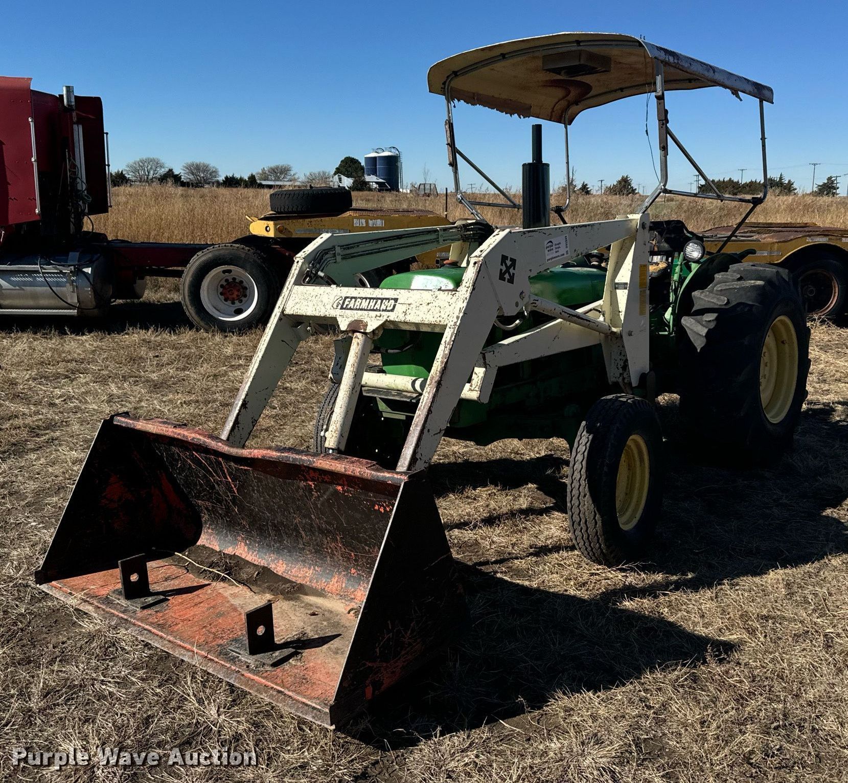 John Deere 2040 tractor. Hours: 2,248 on meter. Engine John Deere, Serial: 78372CD, Cylinders: 3, Fuel type: Diesel. Transmission Manual, 4F - 4R. Features PTO: 540, Three point Quick attach, Hydraulic remote sets Rear: 1, Loader Farmhand 2, Controls: Two-lever, Bucket Width: 72".. Tires Front: 7.50-16, Rear: 16.9-24. Notes Dead battery. Scott City, KS 67871