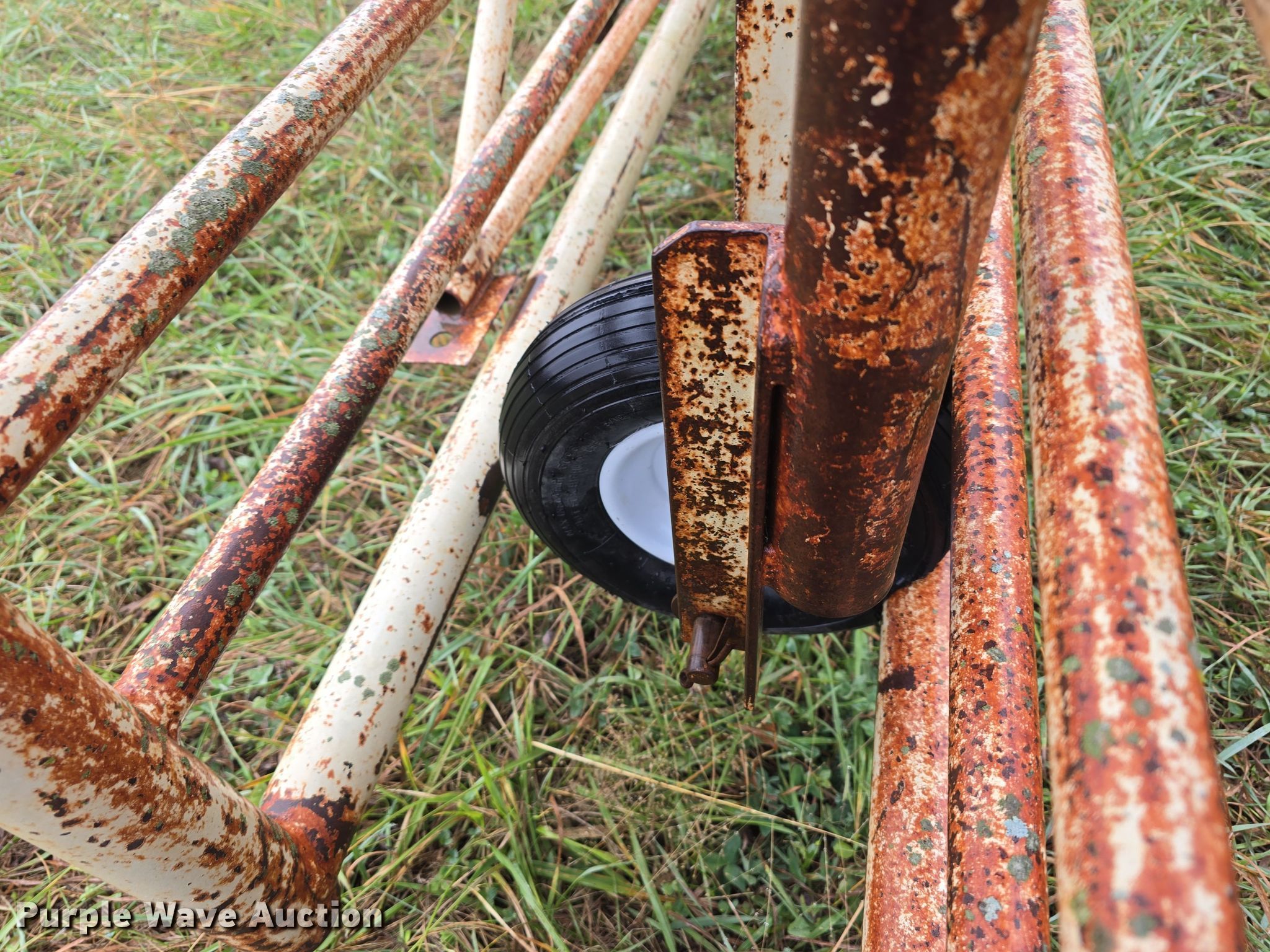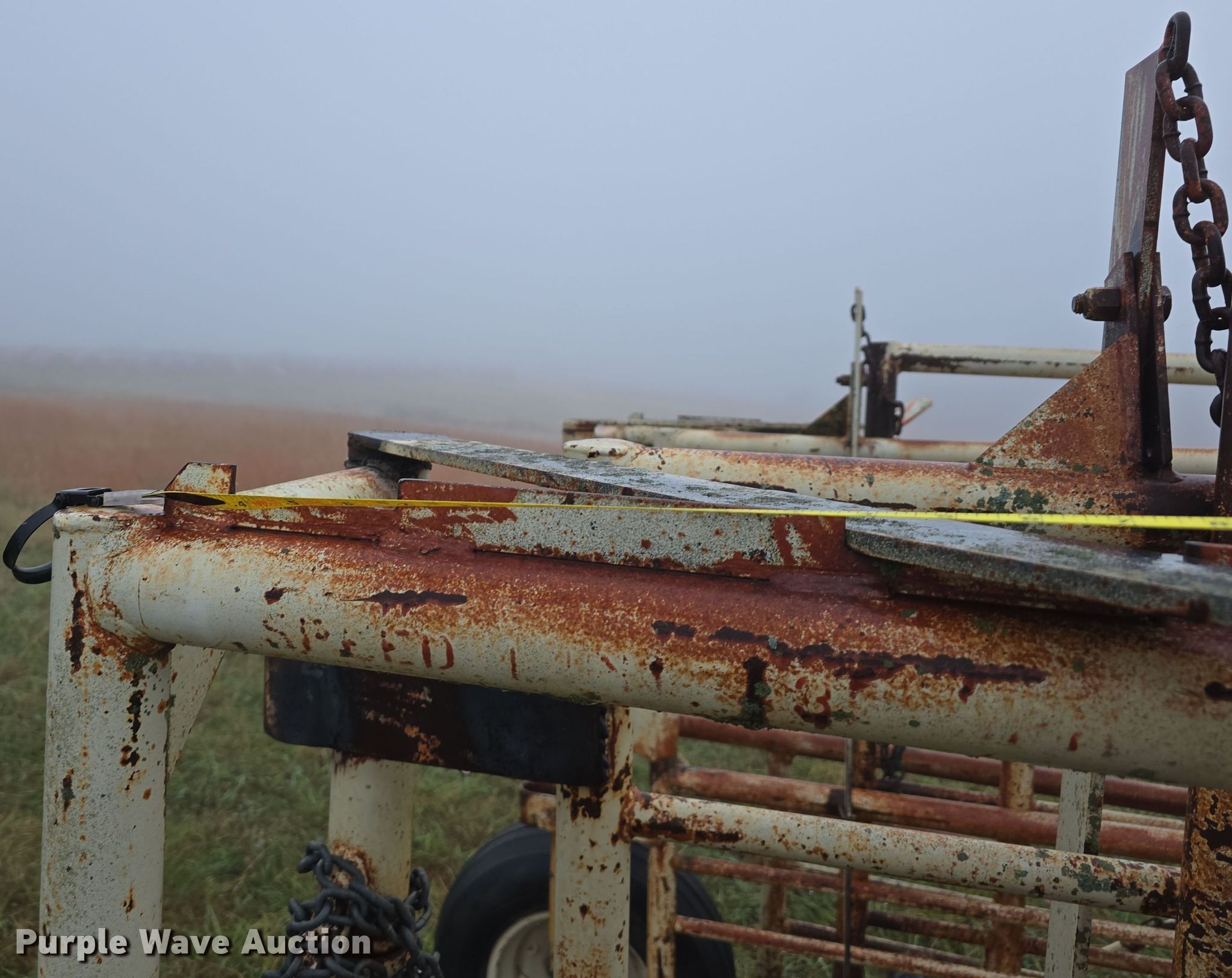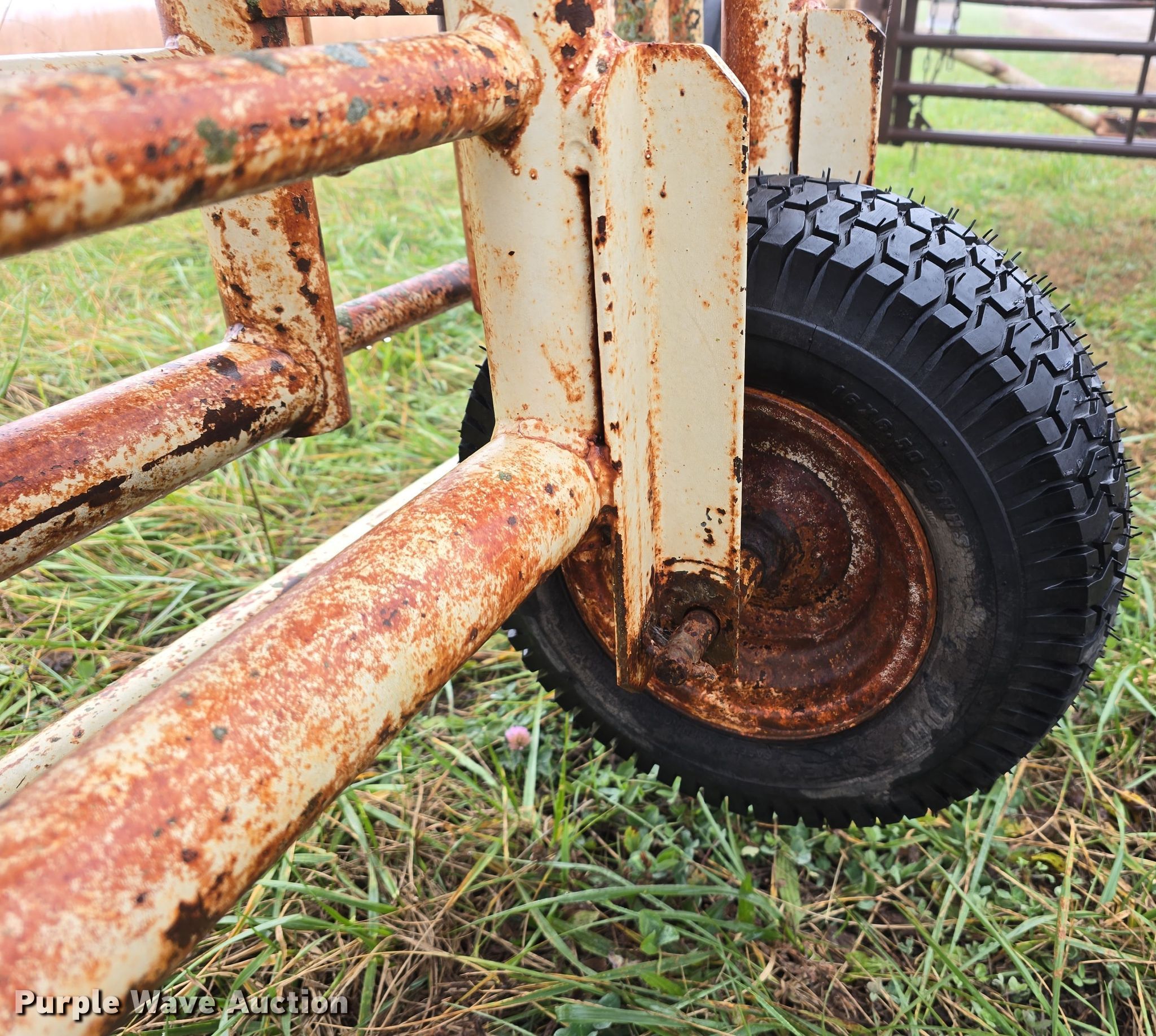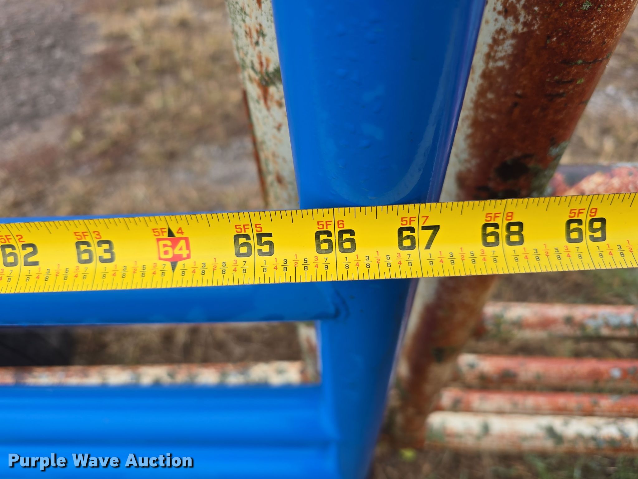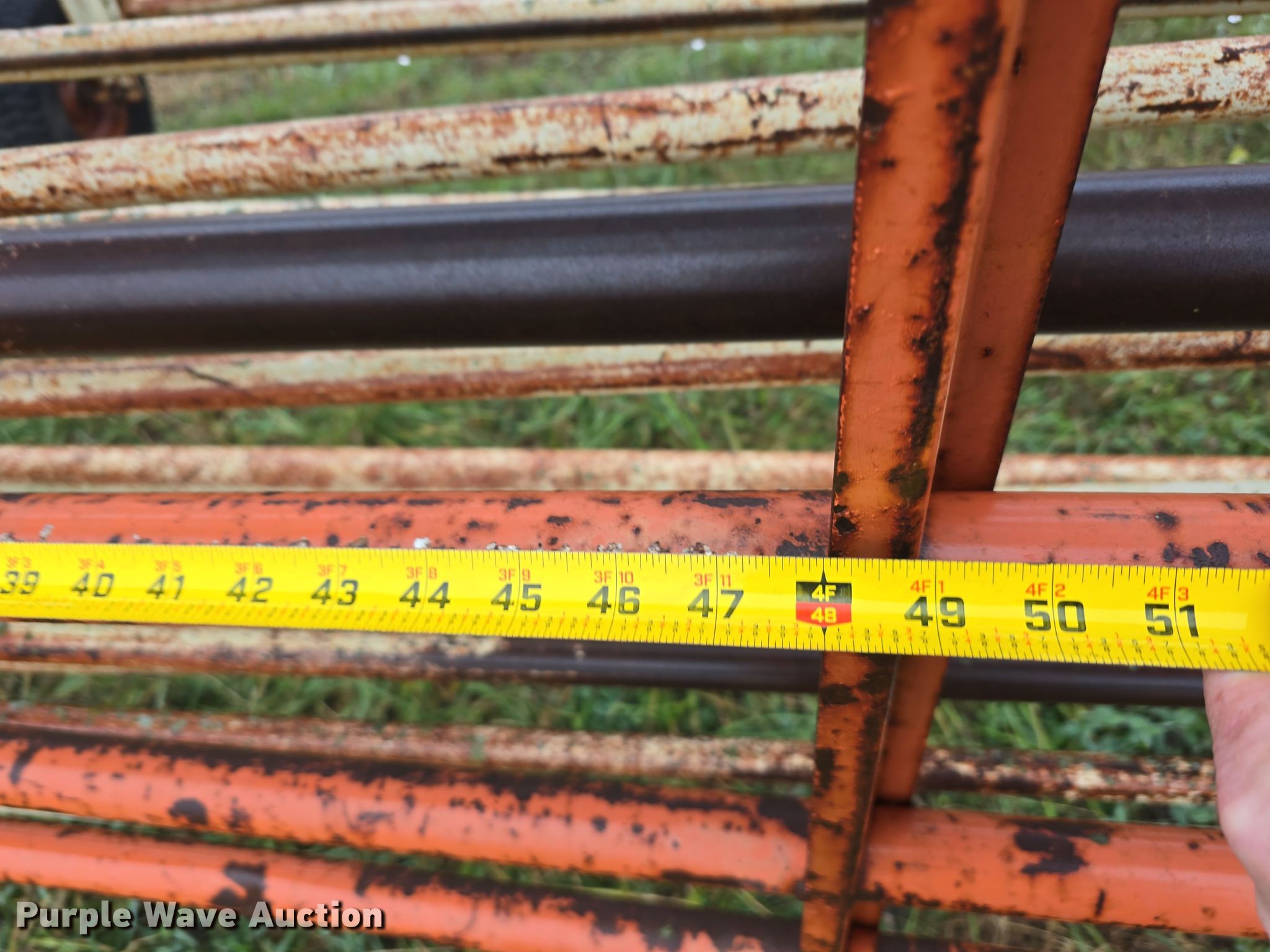 Wilson Corral livestock corral. Serial: 0098. Features Overall dimensions: 36' L x 96" W, (2) panels 24' 6" L x 56" H, (2) panels 20' L x 56" H, (2) 22' 6" L x 56" H, (3) gates: 68" W x 52" H, Gate: 16' L x 60" H, Gate: 14' L x 52" H. Tires Size: 11L-15, (2) gate tires: 16x6.50-8, (2) gate tires: 4.00-6. Bethany, MO 64424