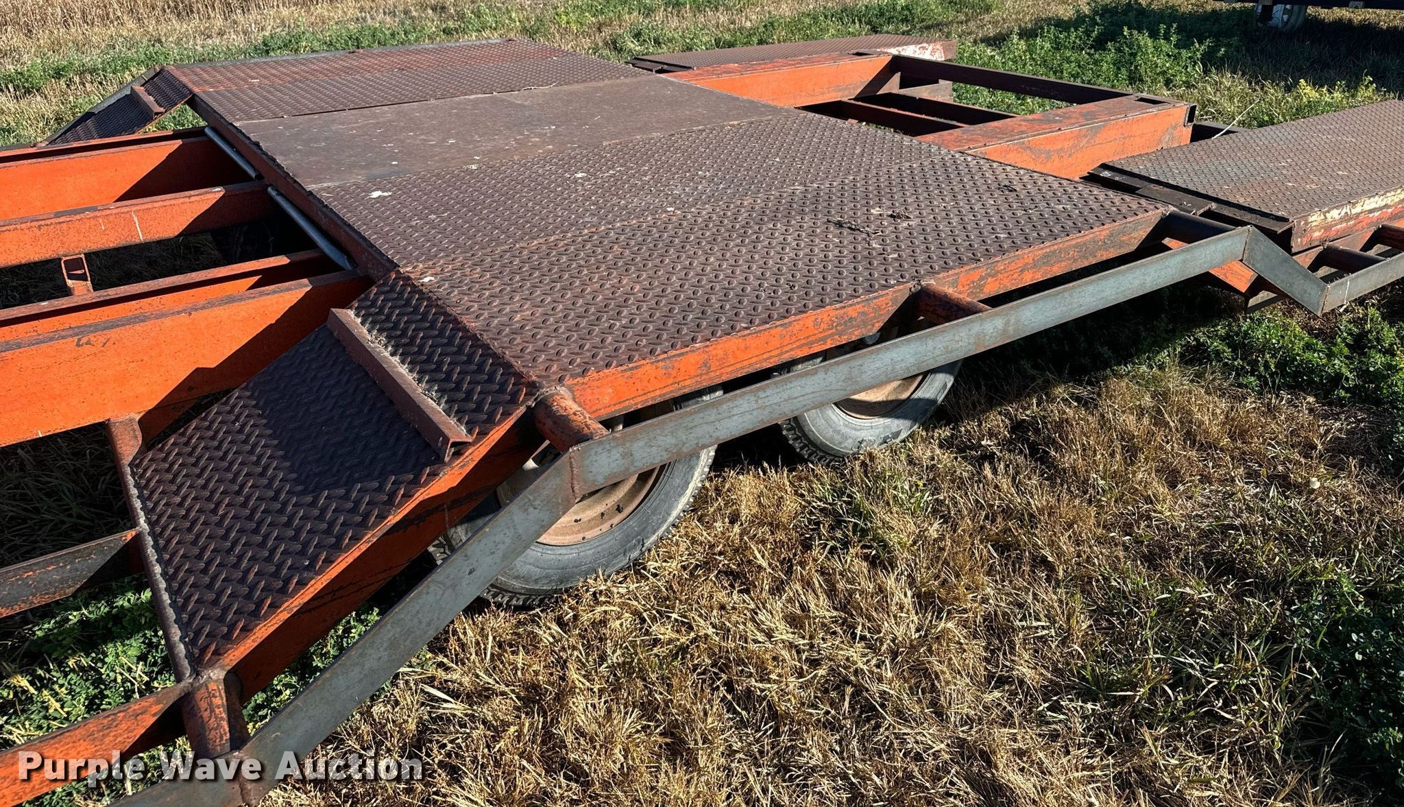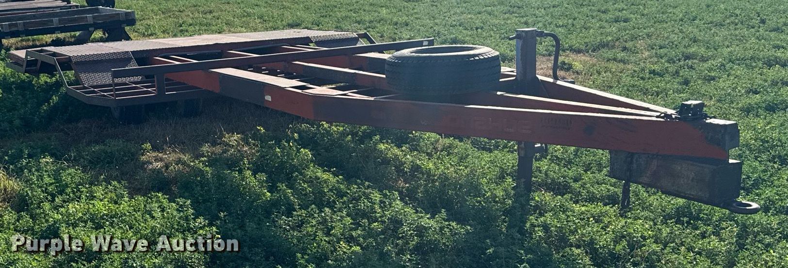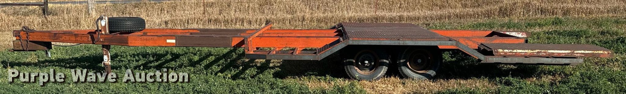 Donahue combine trailer. VIN: 800XL00964. Dimensions Overall: 33' L x 144" W, Deck: 16' 2" L x 144" W, Ramps: Manual Length: 6'. Features Deck type: Steel. Chassis Hitch: Pintle, Landing gear: Single, Suspension: Spring, Brakes: Electric, Axles: Tandem. Tires Steel wheels, Size: 9.50-16. Transfer of ownership documentation will be a bill of sale. Witthuhn Aerial Service. Callaway, NE 68825