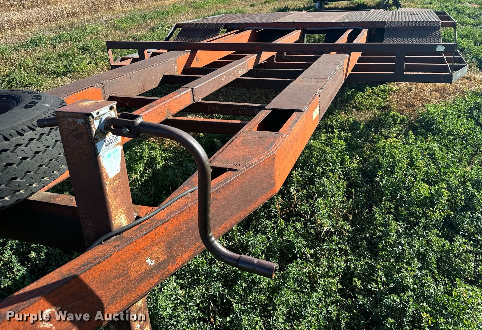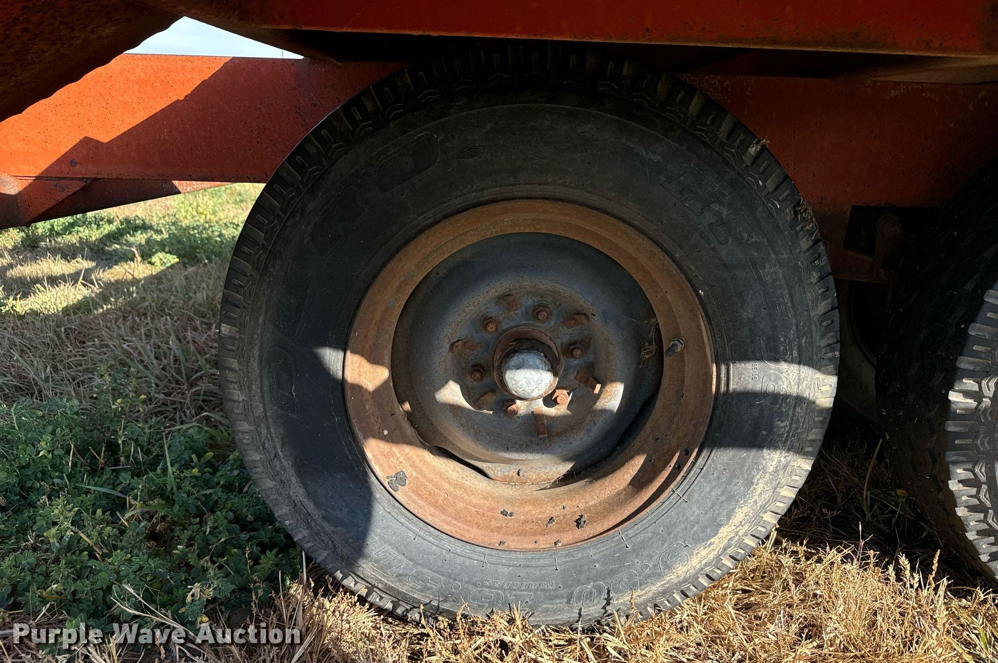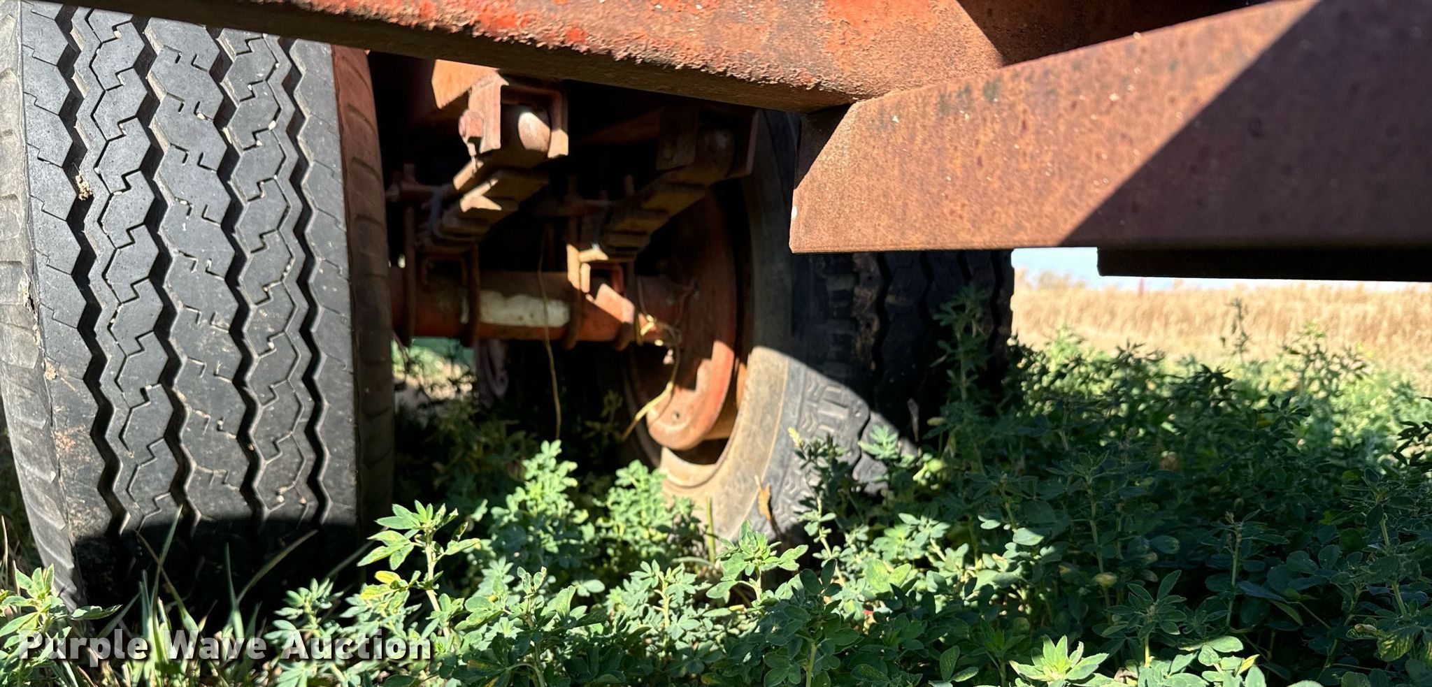 Donahue combine trailer. VIN: 800XL00964. Dimensions Overall: 33' L x 144" W, Deck: 16' 2" L x 144" W, Ramps: Manual Length: 6'. Features Deck type: Steel. Chassis Hitch: Pintle, Landing gear: Single, Suspension: Spring, Brakes: Electric, Axles: Tandem. Tires Steel wheels, Size: 9.50-16. Transfer of ownership documentation will be a bill of sale. Witthuhn Aerial Service. Callaway, NE 68825
