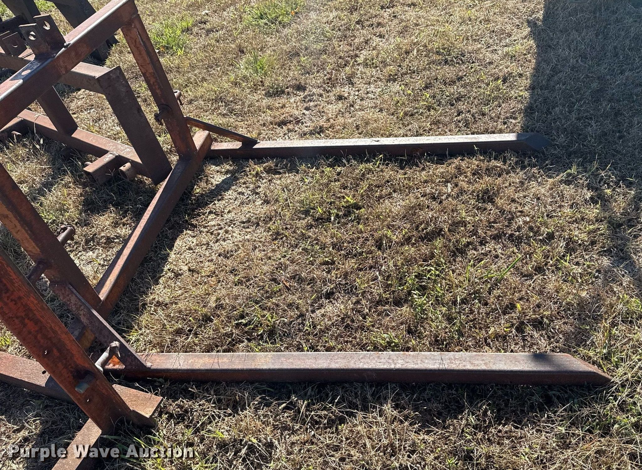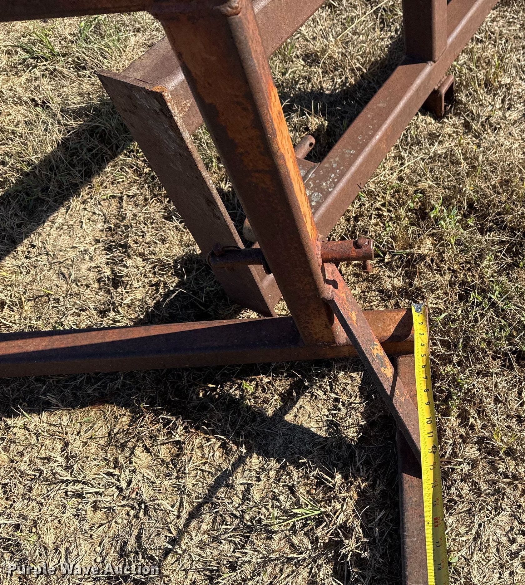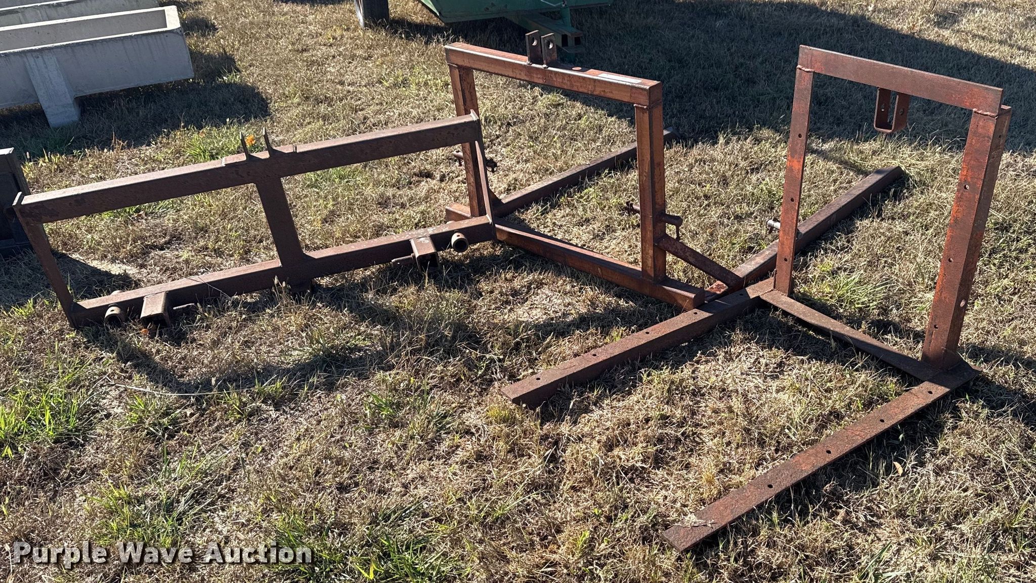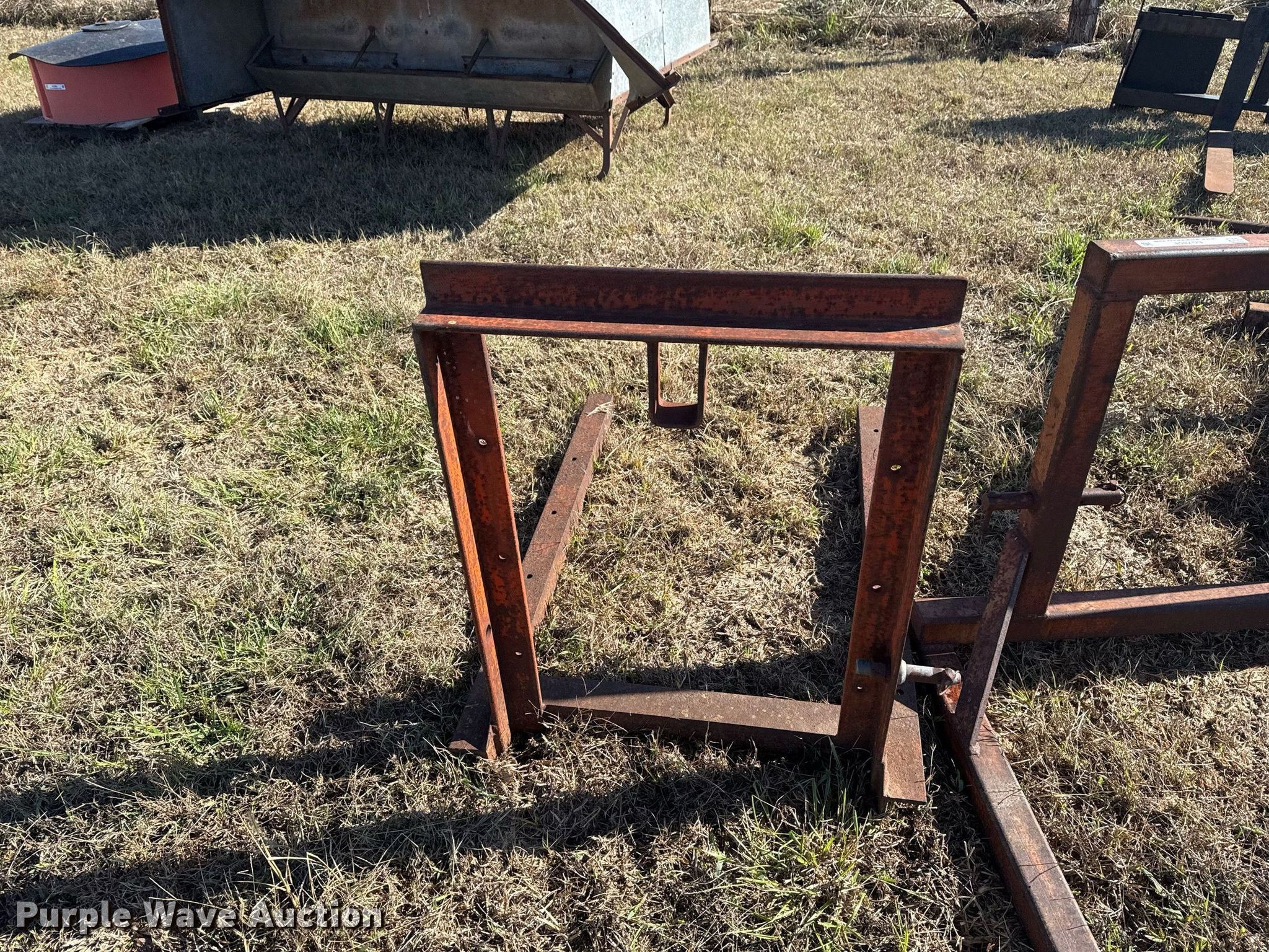 Purple Wave is selling a used Hay Handling in Oklahoma. This item is a (2) shop built bale arms with the following: Bale spear carriage, 39" L x 29" W