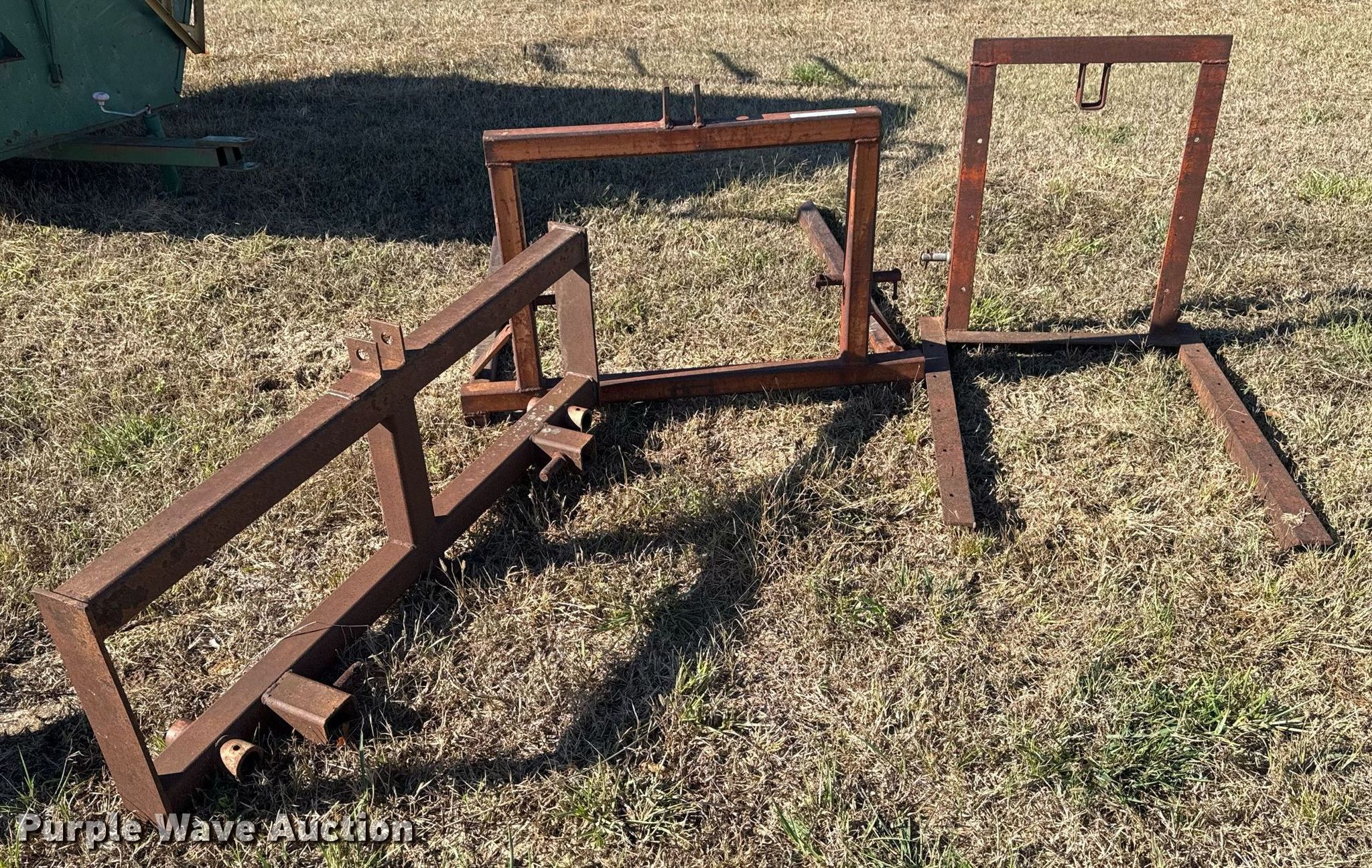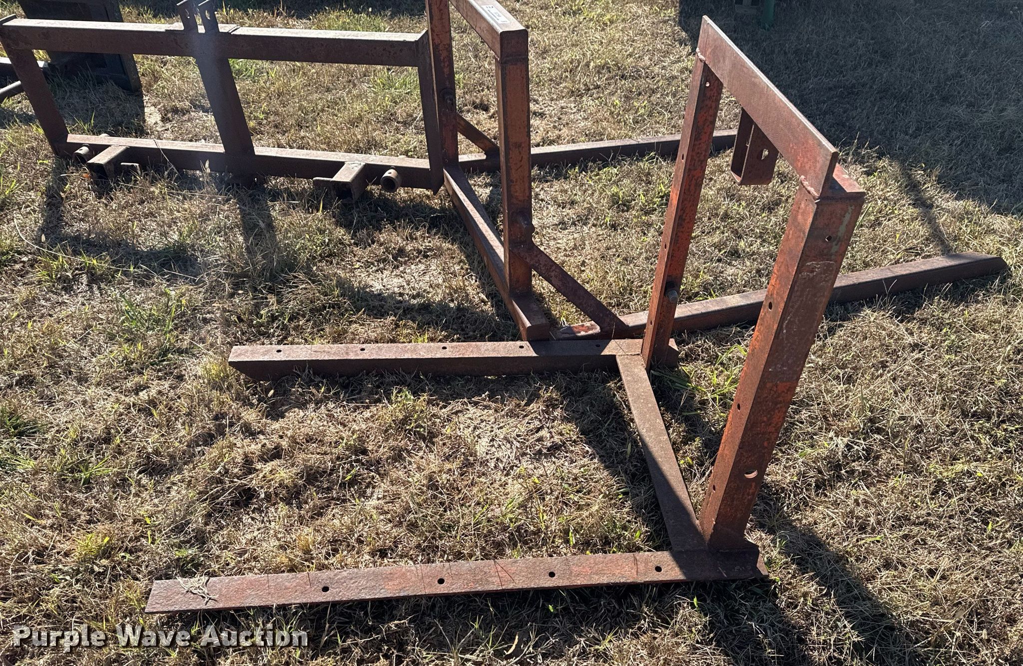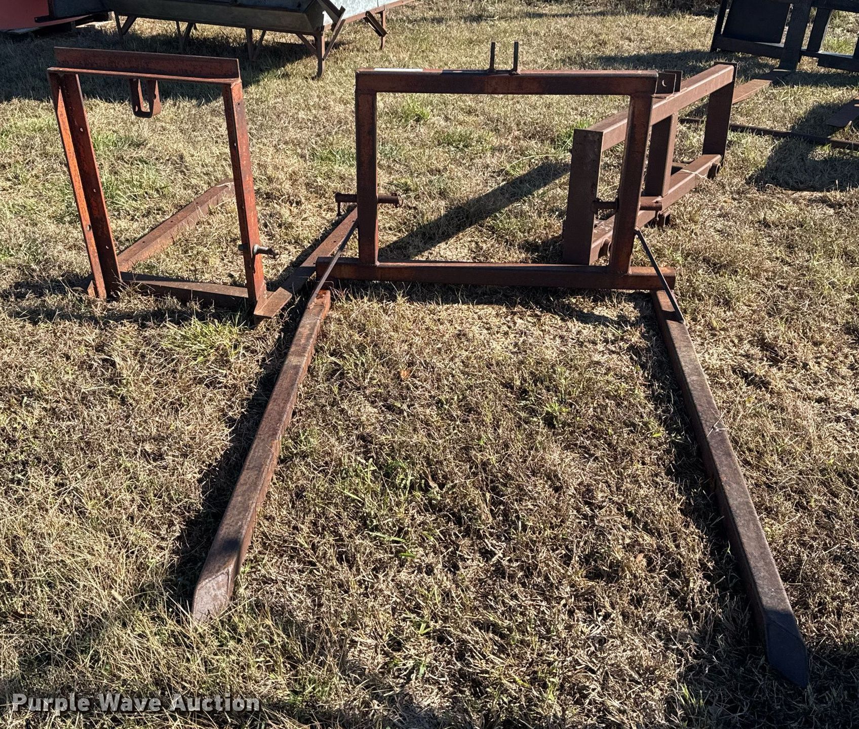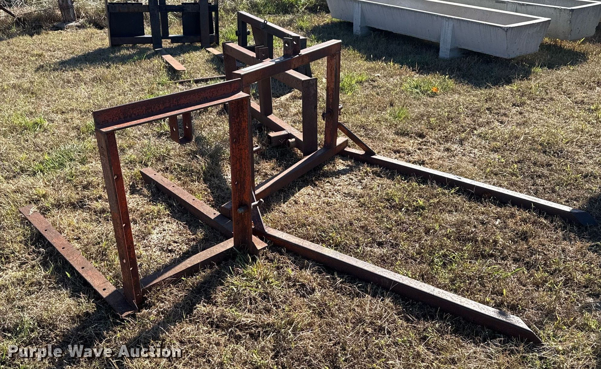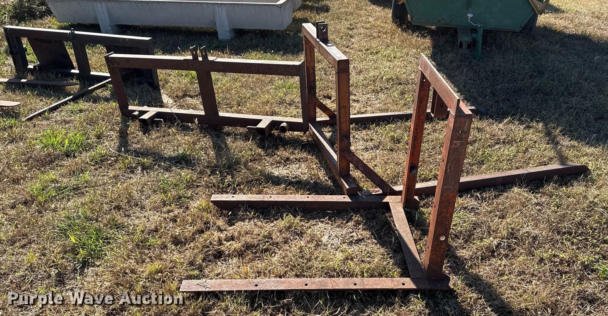 Purple Wave is selling a used Hay Handling in Oklahoma. This item is a (2) shop built bale arms with the following: Bale spear carriage, 39" L x 29" W