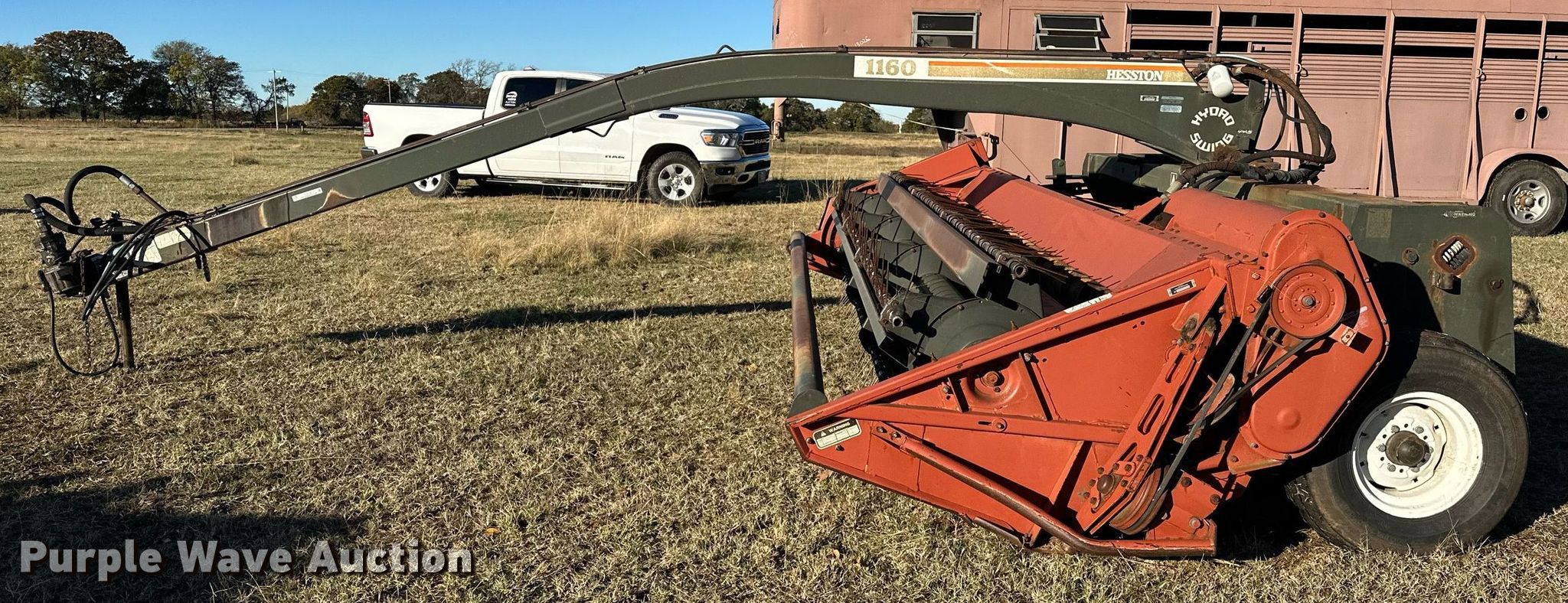 Purple Wave is selling a used Windrower Pull Type in Oklahoma. This item is a Hesston 1160 swather / windrower with the following: Serial: T16002193
