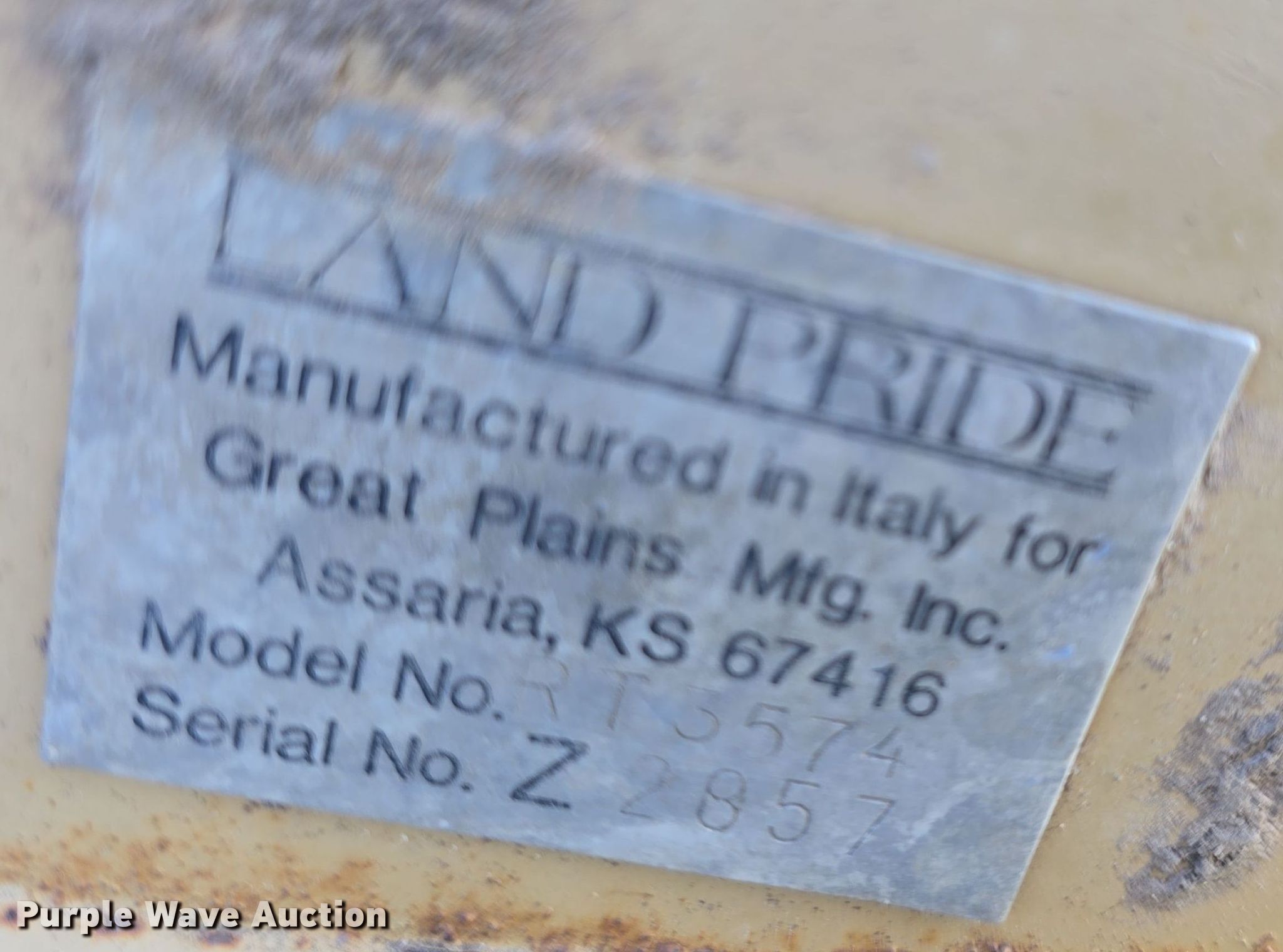Purple Wave is selling a used Tillage Other in Kansas. This item is a Land Pride RT3574 tiller with the following: Serial: Z2857