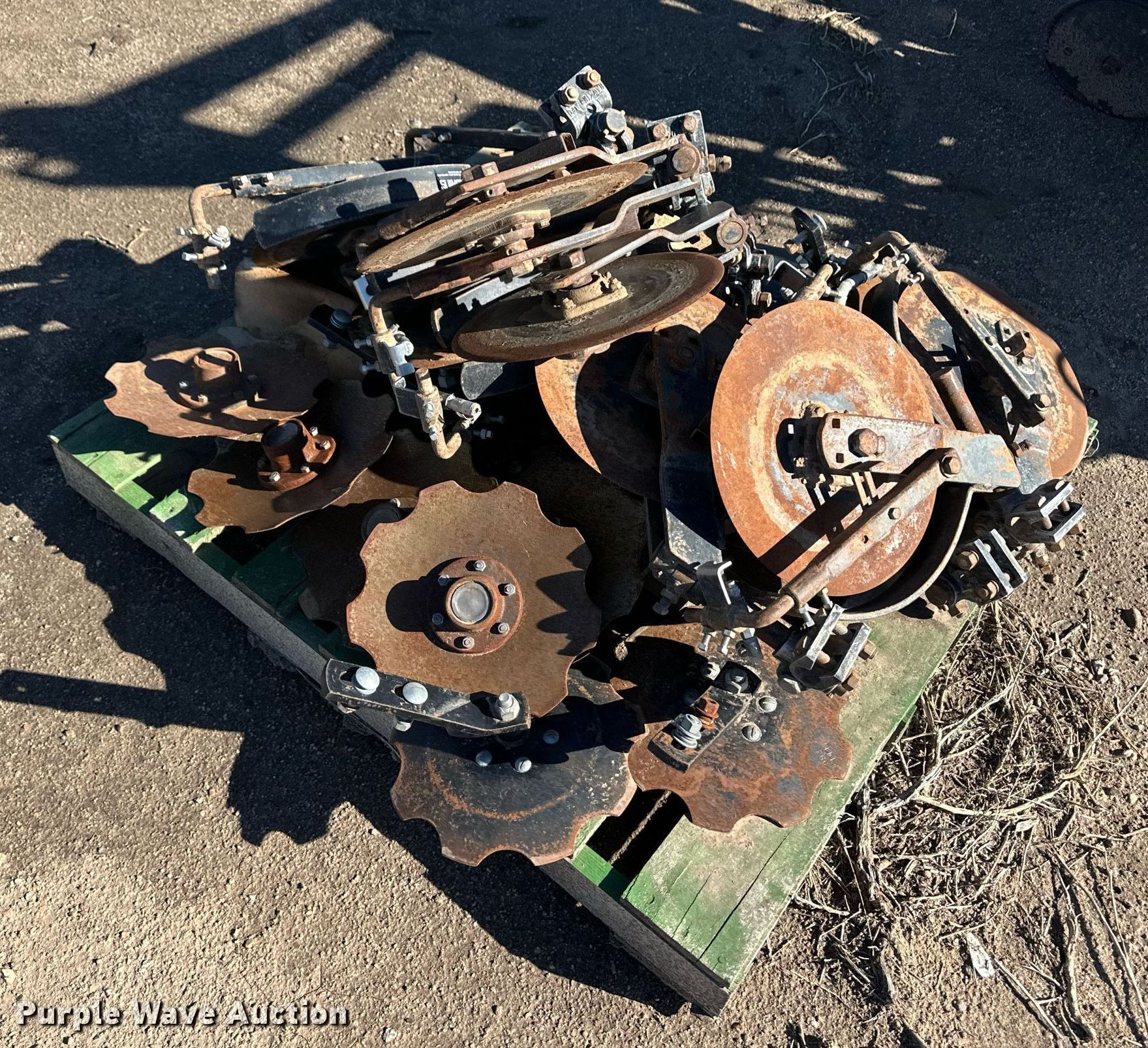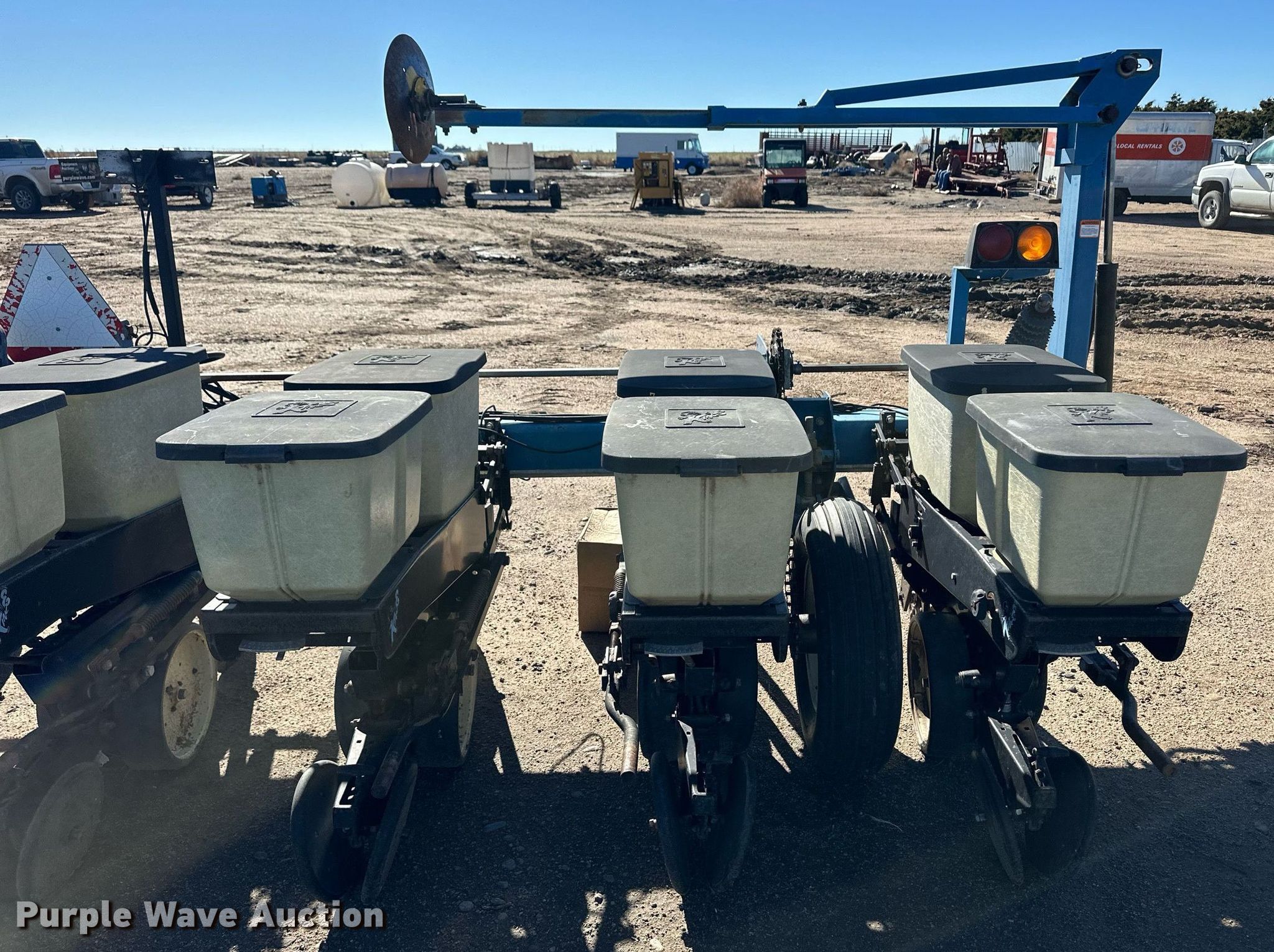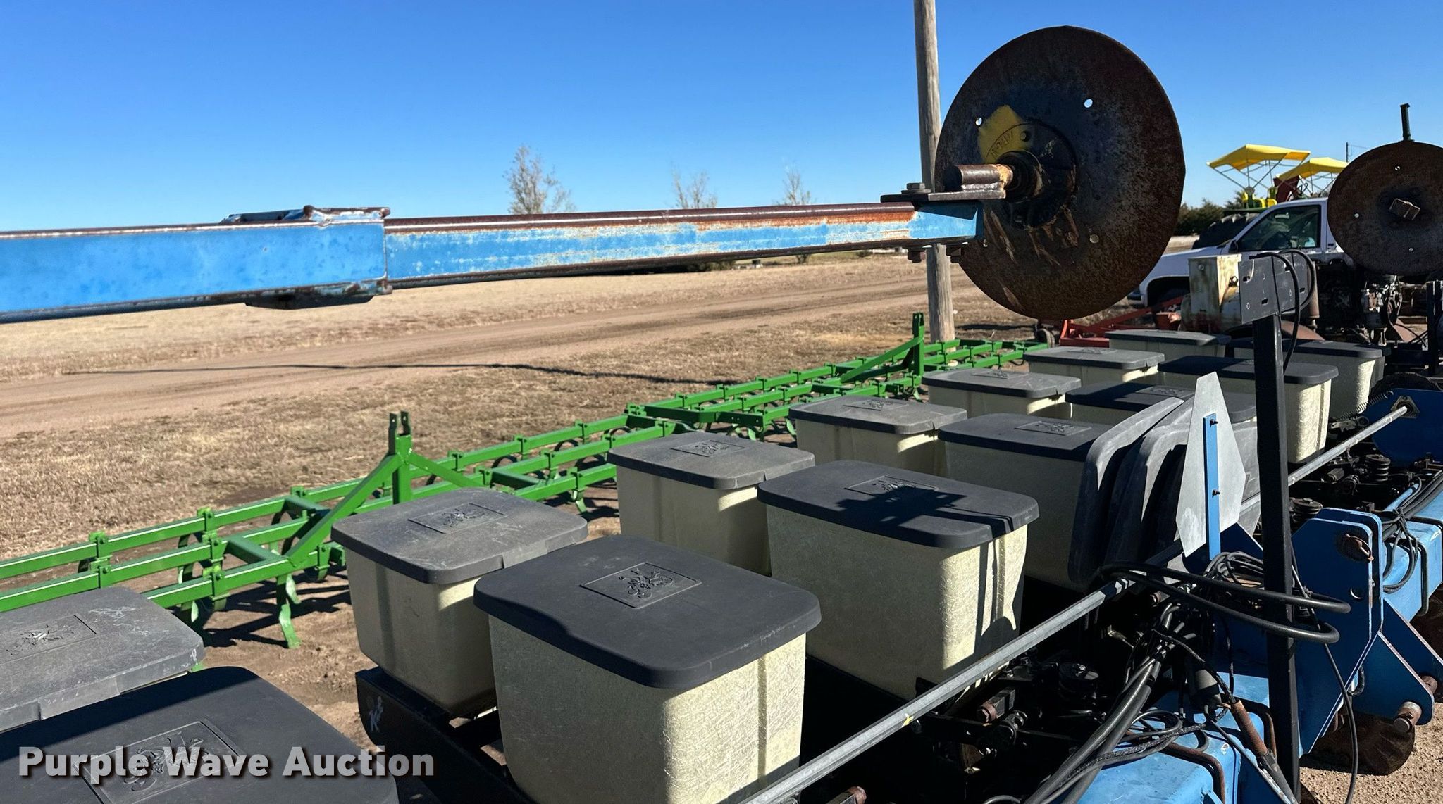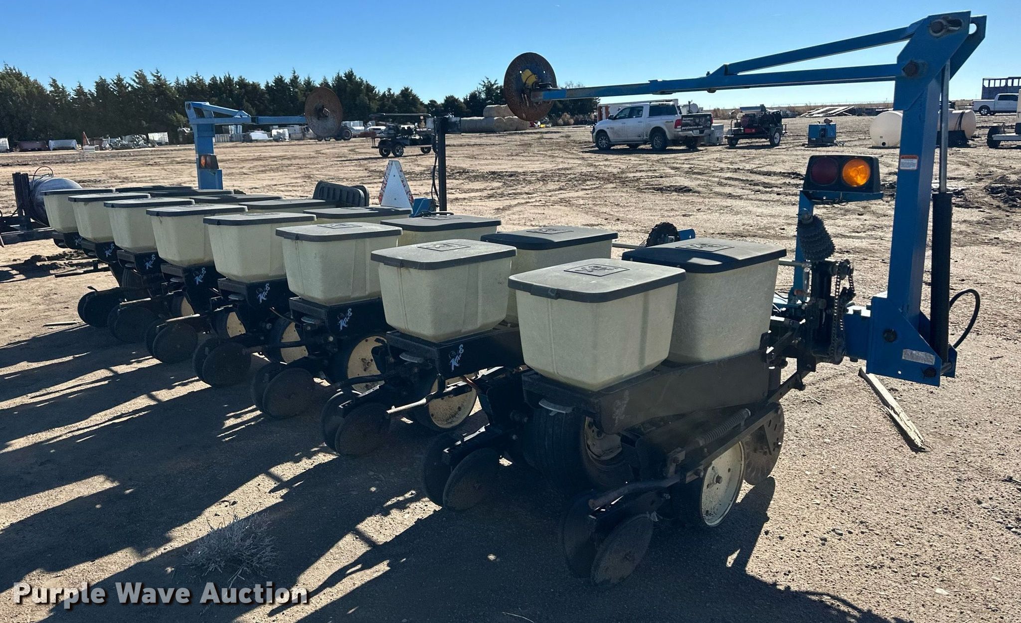 Kinze 2100 no-till planter. Row units: 8, Row spacing: 30". Features Frame Hitch: Three point, Marker arm, Seed delivery Individual seed hoppers, Row units Meter drive: Ground, Seed meters: Corn, Other meters: Milo, Down pressure: Spring, No-till coulters, Disk openers: Double, Gauge wheels: Double, Closing system: Double Type: Rubber, Fertilizer/ insecticide Fertilizer, Application method: Coulter, Coulter type: Off-set, Insecticide boxes, Electronics Monitor Kinze KM3000.. Tires Drive/ outside tire size: 7.60-15 Quantity: 2. Notes Additional parts. Sublette, KS 67877