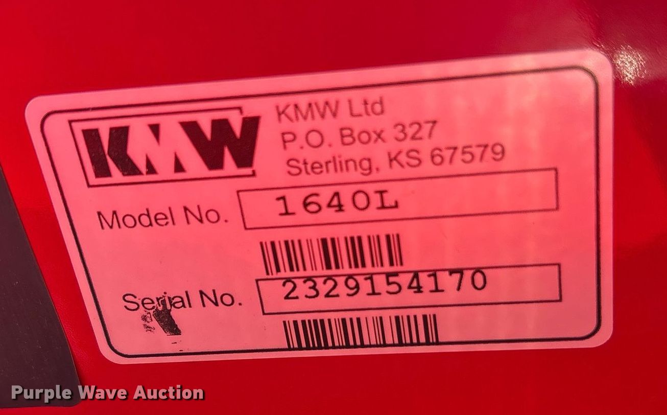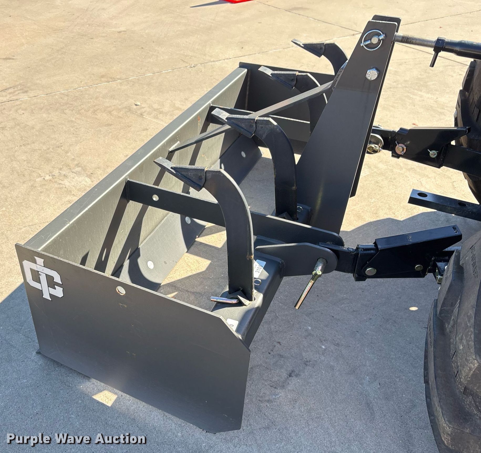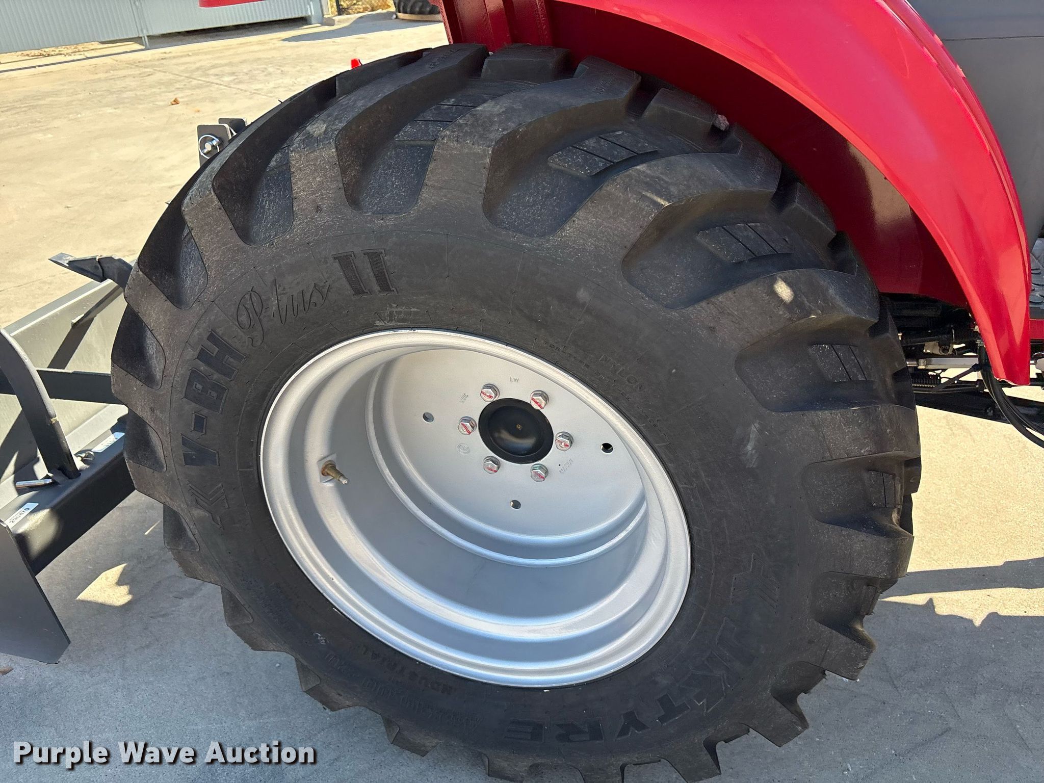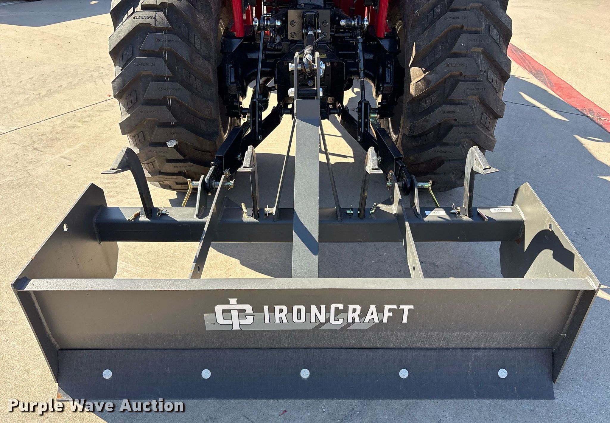 2023 Mahindra 1640 HST MFWD tractor. Hours: 5 on meter, Serial: 40H230621230. Engine Mahindra CE-38, Displacement: 2.731L, Cylinders: 4, Fuel type: Diesel, kW: 28. Transmission Hydrostatic, Three speed travel, Differential lock. Features PTO: 540, Three point Top link, Loader Mahindra 1640L, Controls: Joystick, Bucket Width: 65", Box blade IronCraft, Width: 60", Draw bar. Tires Front: 28x8.50-15NHS, Rear: 43x16.00-20. Kubota Tractor Corp. Grapevine, TX 76051