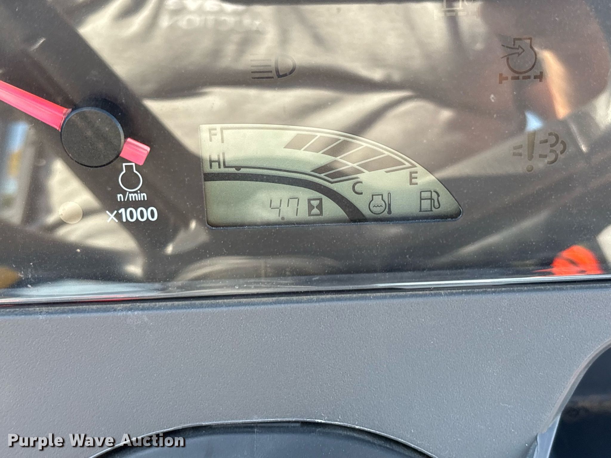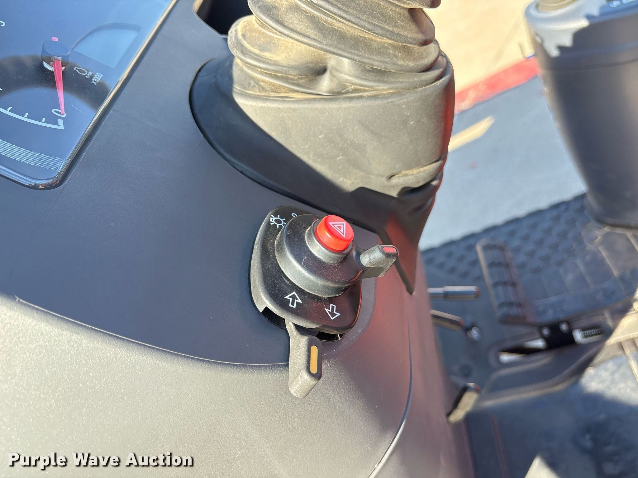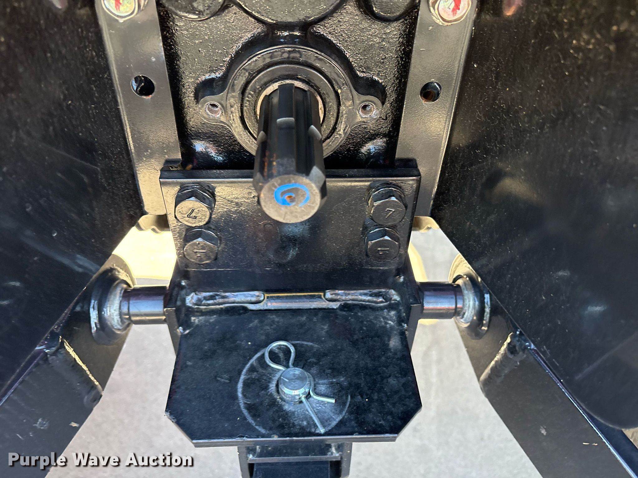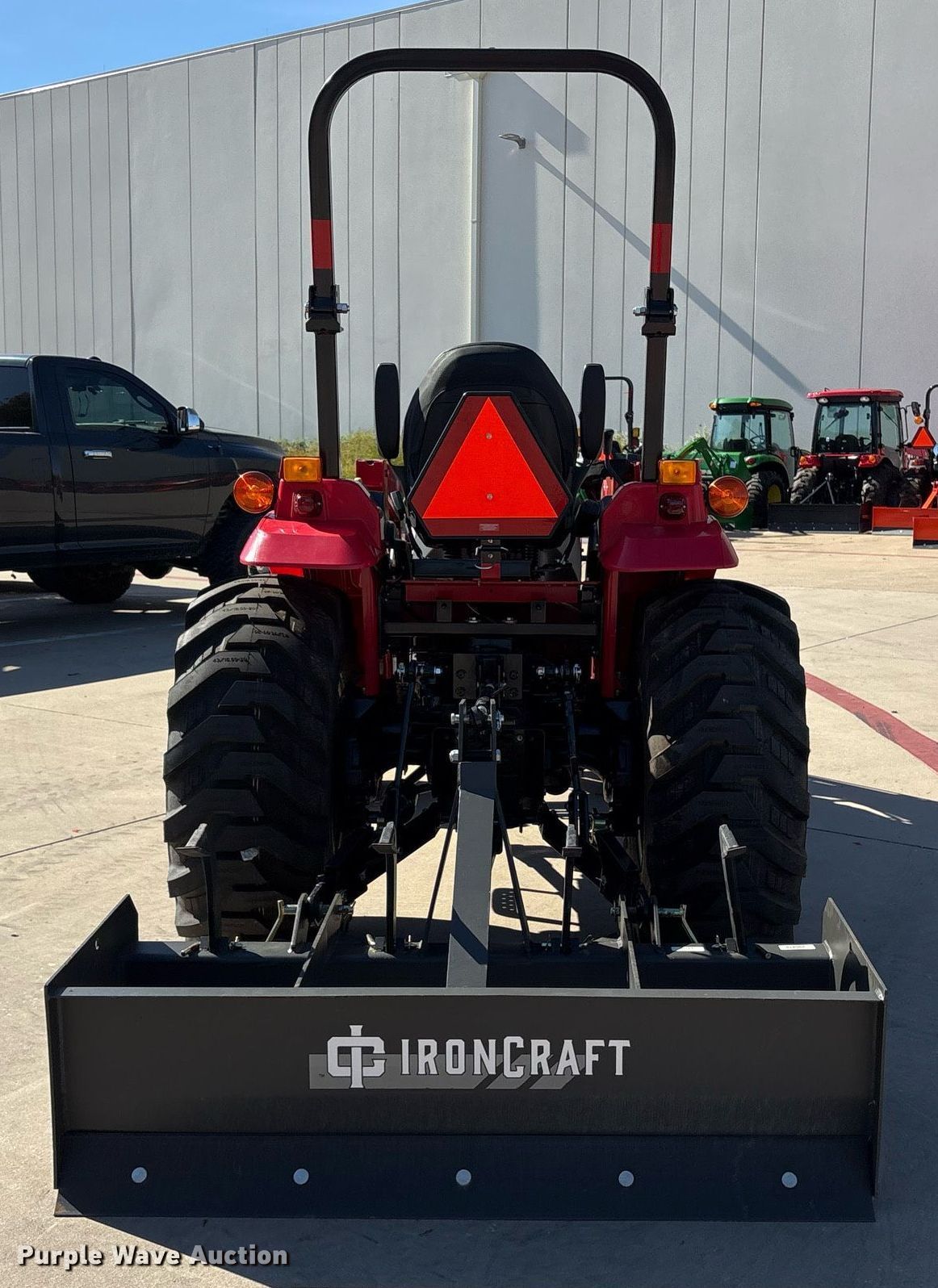 2023 Mahindra 1640 HST MFWD tractor. Hours: 5 on meter, Serial: 40H230621230. Engine Mahindra CE-38, Displacement: 2.731L, Cylinders: 4, Fuel type: Diesel, kW: 28. Transmission Hydrostatic, Three speed travel, Differential lock. Features PTO: 540, Three point Top link, Loader Mahindra 1640L, Controls: Joystick, Bucket Width: 65", Box blade IronCraft, Width: 60", Draw bar. Tires Front: 28x8.50-15NHS, Rear: 43x16.00-20. Kubota Tractor Corp. Grapevine, TX 76051