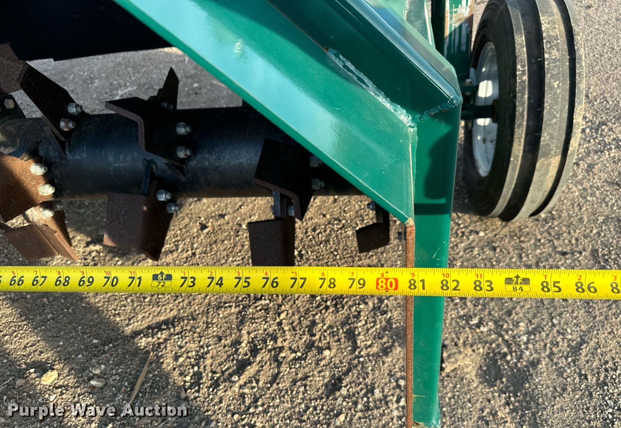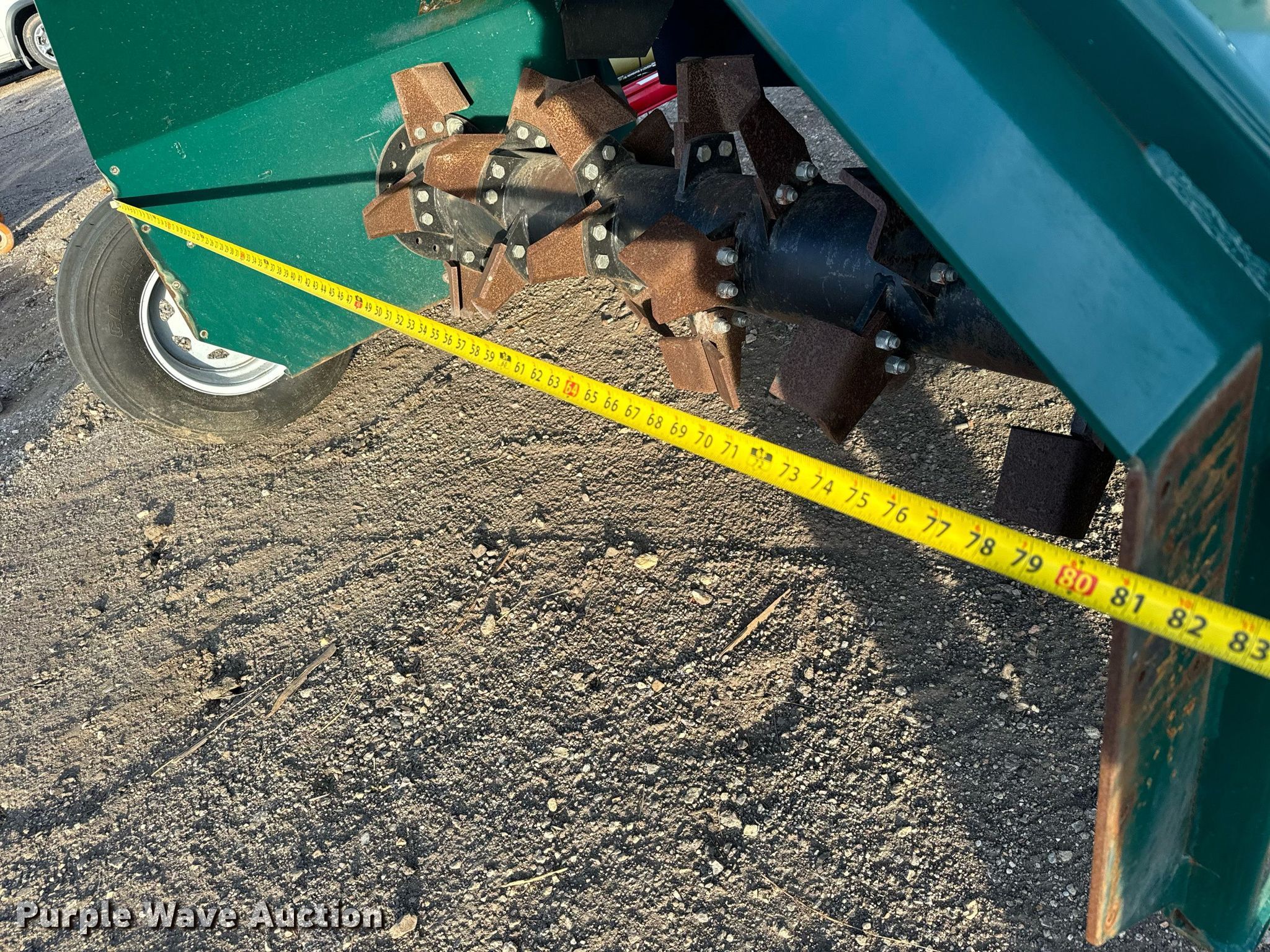 Frontier MM80 compost turner. Serial: 22190730124. Features Working width: 80", PTO: 540. Tires Size: 7.5L-15. AGCO Corp. Hesston, KS 67062