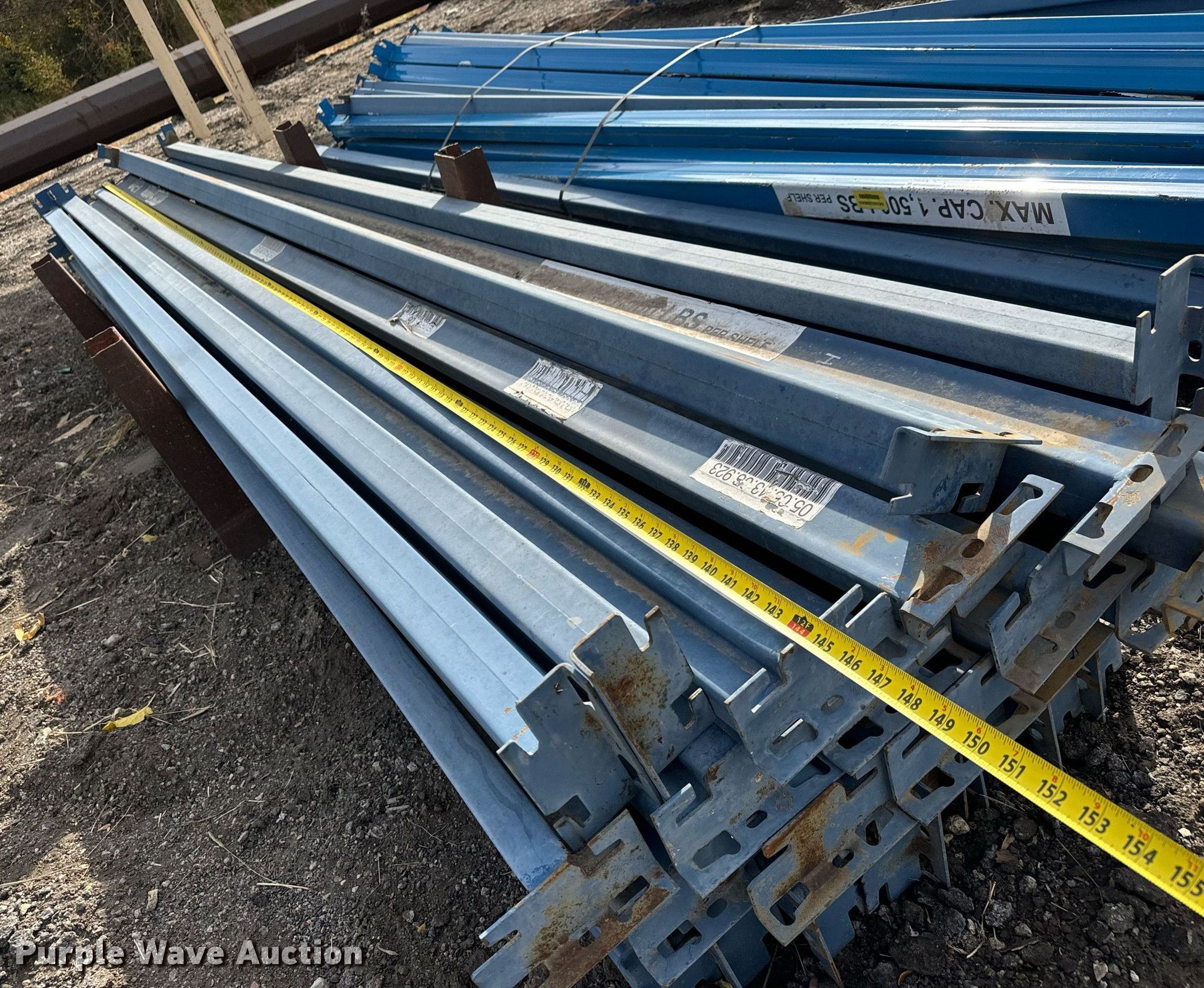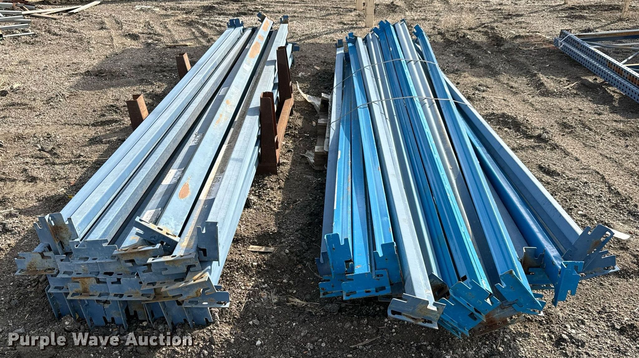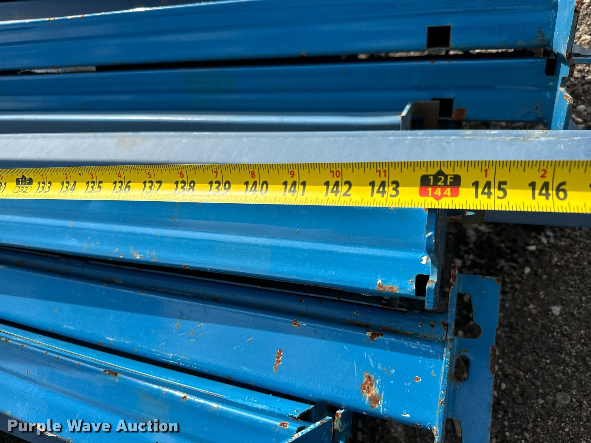 Purple Wave is selling a used Pallet Racking in Kansas. This item is a Pallet racking with the following: Approx 48 horizontal members, Length: 12'