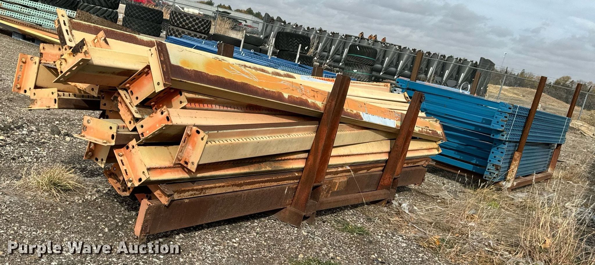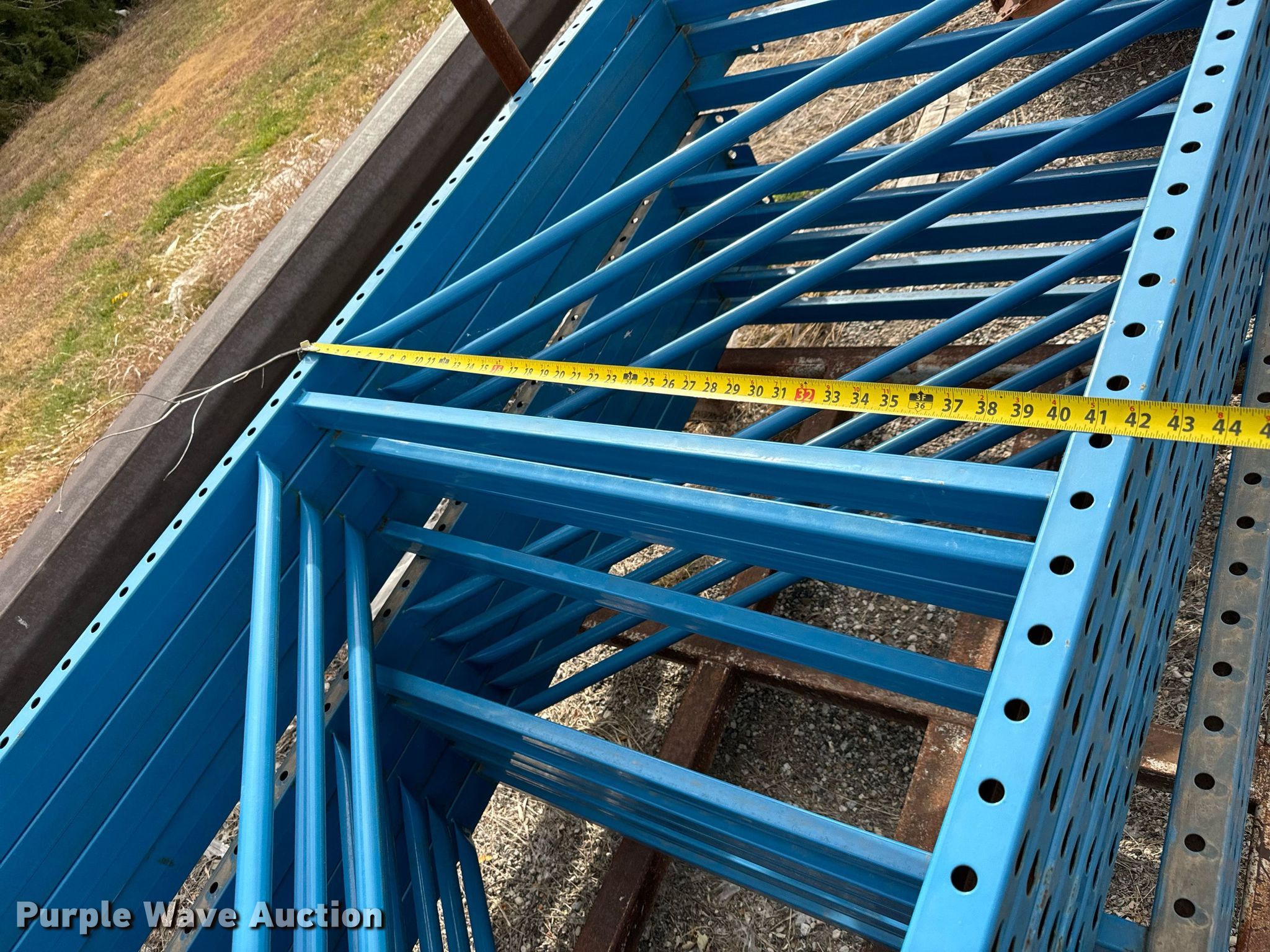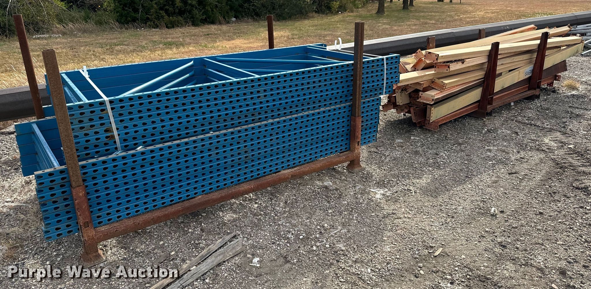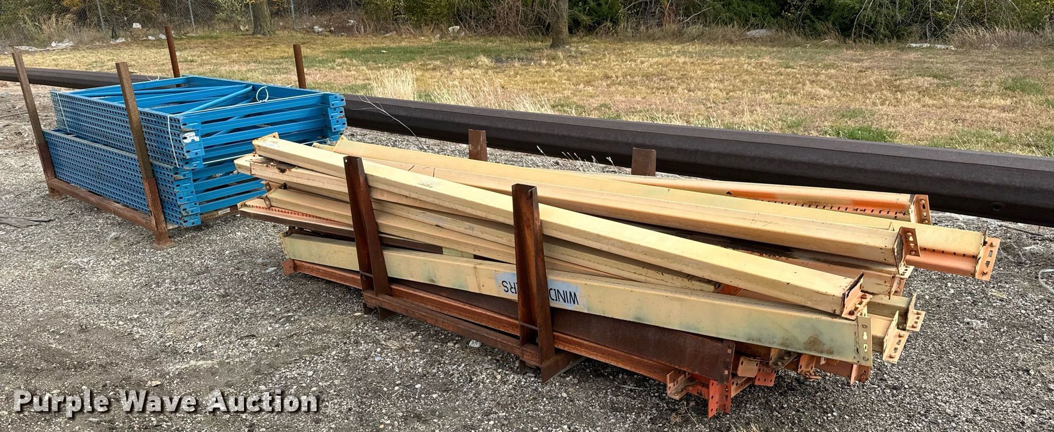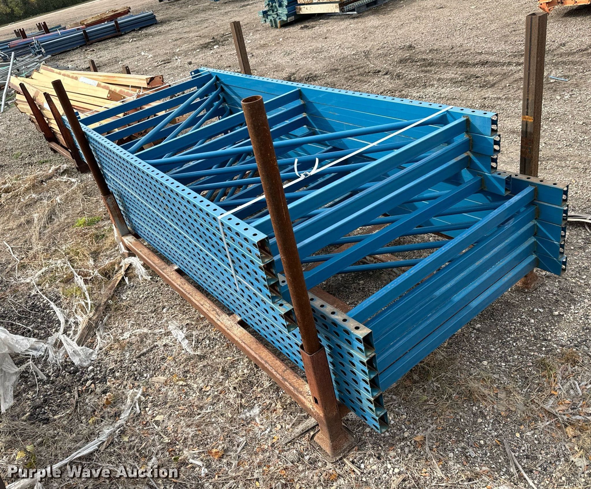 Purple Wave is selling a used Pallet Racking in Kansas. This item is a Pallet racking with the following: (9) uprights, Approx. 36 horizontal members