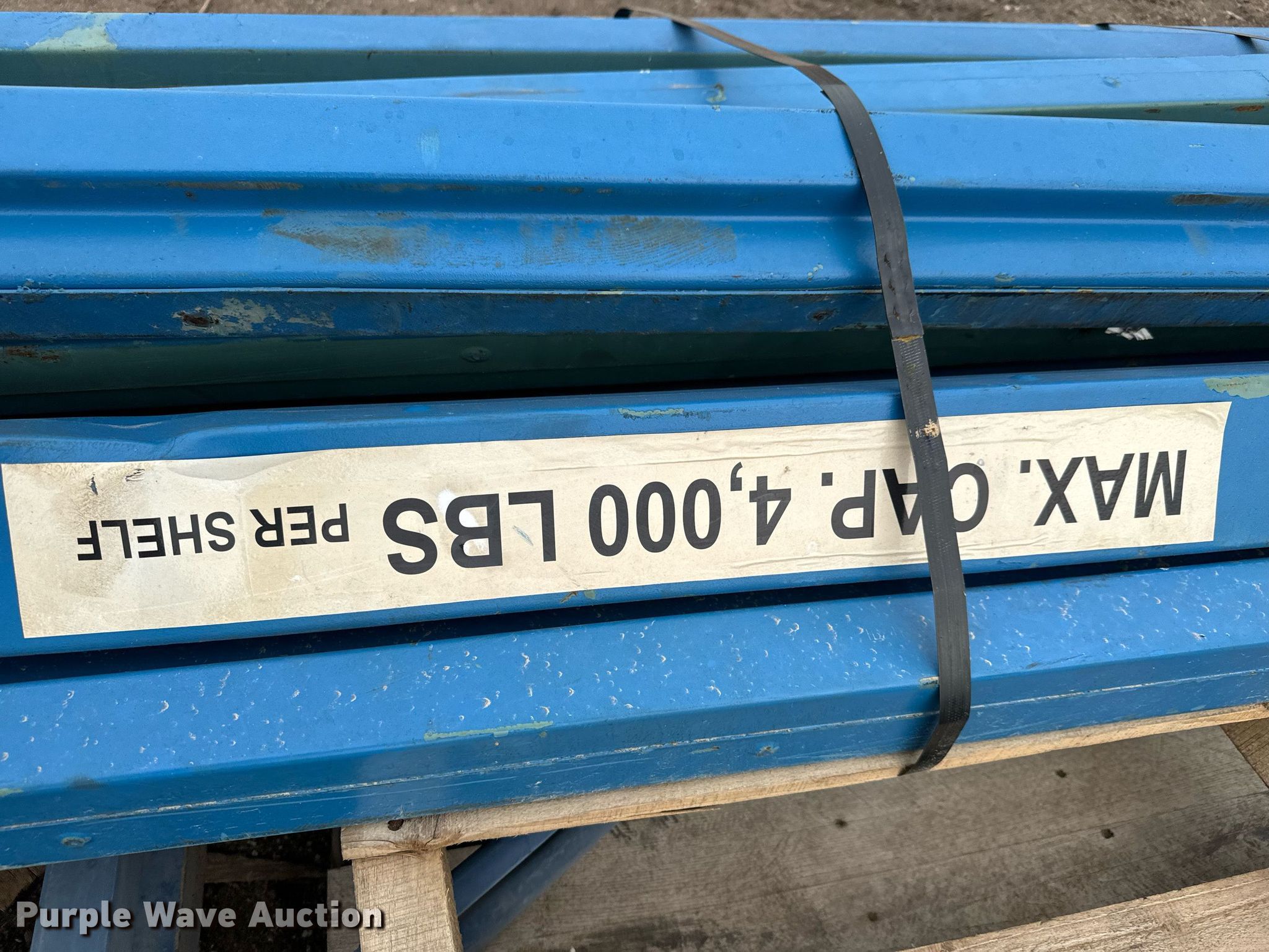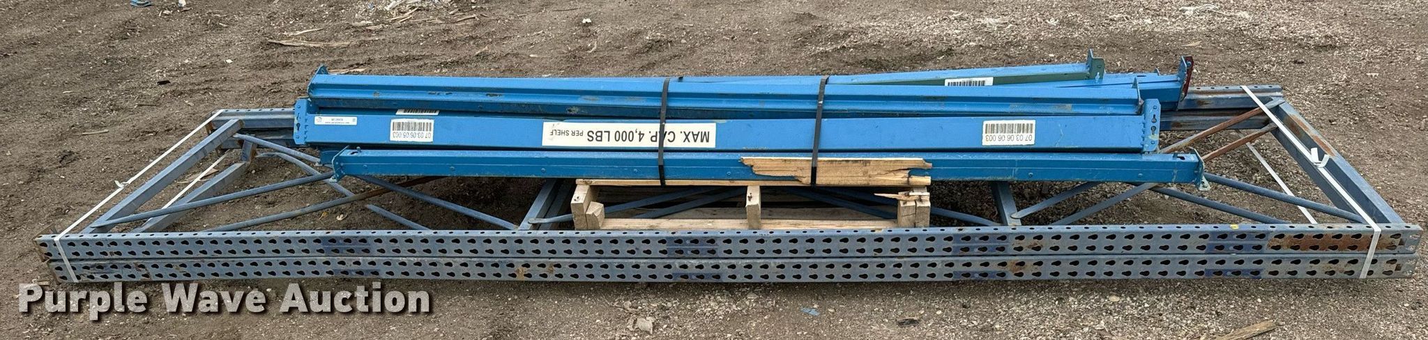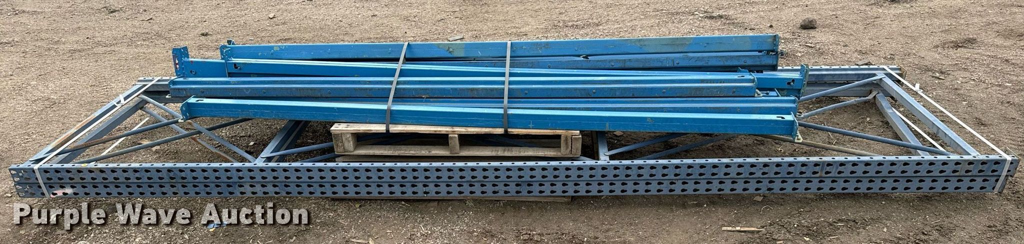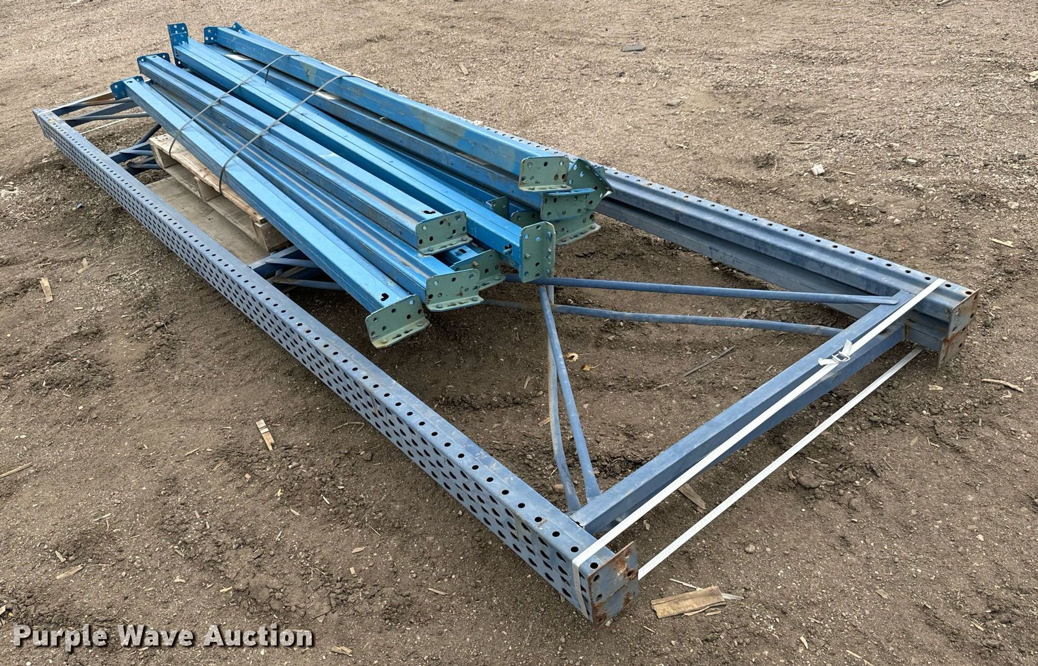 Purple Wave is selling a used Pallet Racking in Kansas. This item is a Pallet racking with the following: (2) uprights, (12) horizontal members