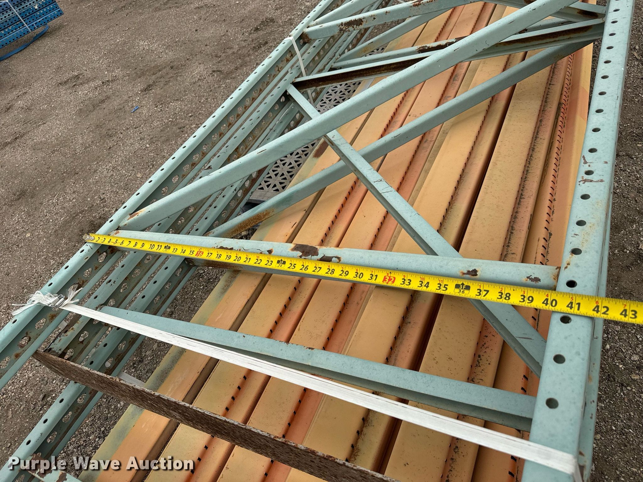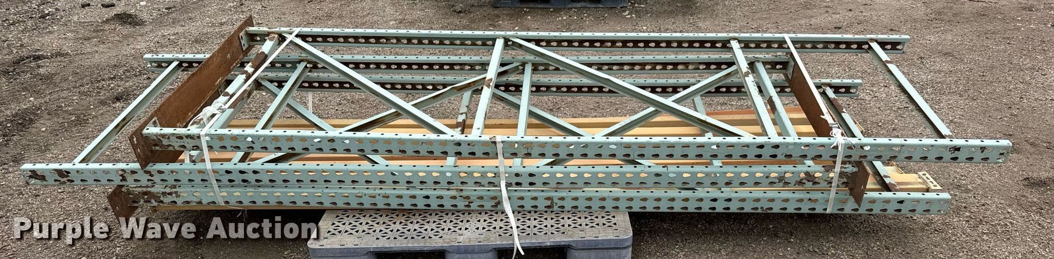 Purple Wave is selling a used Pallet Racking in Kansas. This item is a Pallet racking with the following: (3) uprights, (8) horizontal members