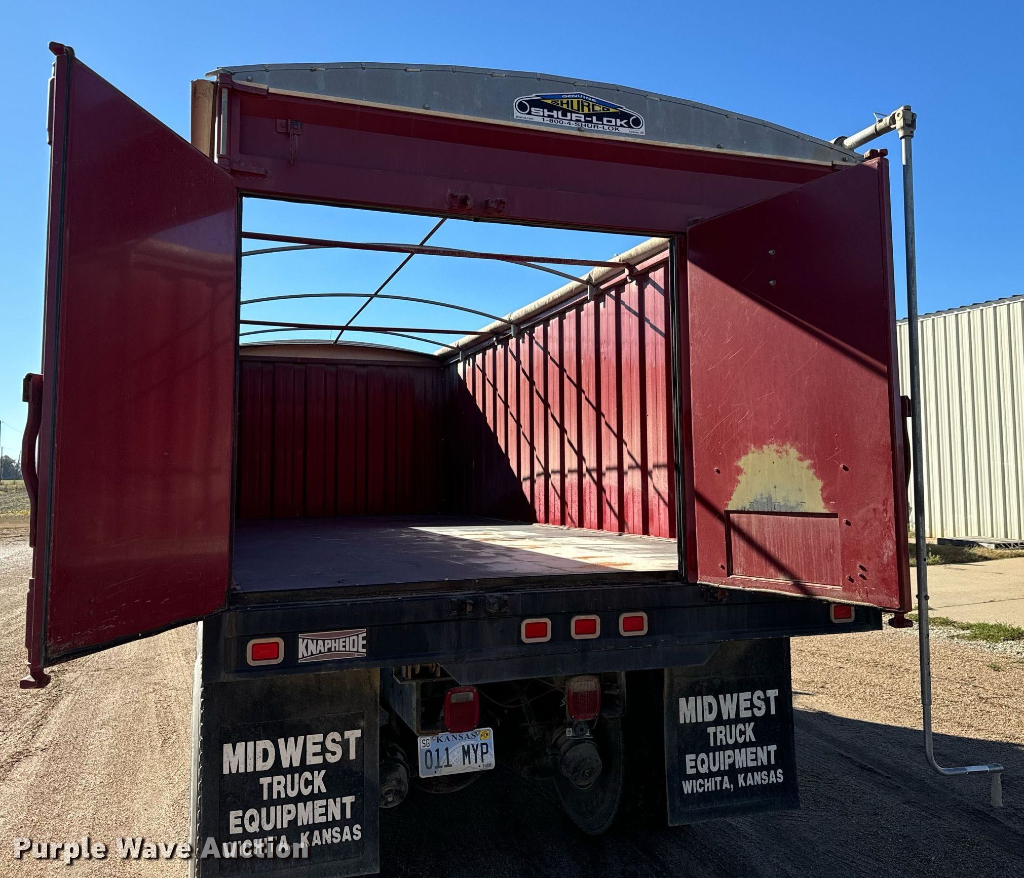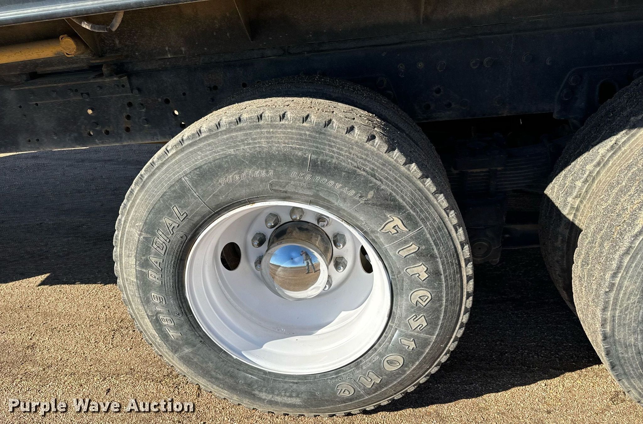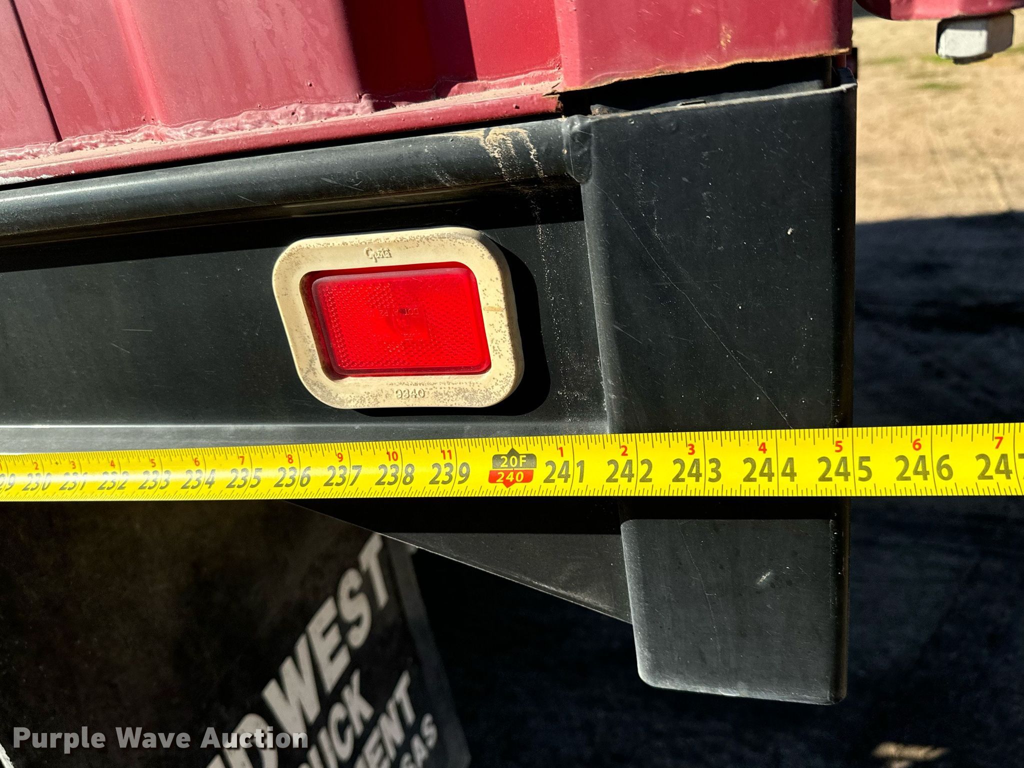 1995 Ford L8000 grain truck. Miles: 274,698 on odometer, Hours: 2,861 on meter, VIN: 1FDZW82E1SVA82383. Engine Cummins C8.3-250, Serial: 45204978, Displacement: 8.3L, Cylinders: 6, Fuel type: Diesel, HP: 250. Transmission Allison, Automatic. Chassis Double frame, Axles: Tandem, Differential lock: Inter-axle, Suspension: Spring over walking beam, Brakes: Air, PTO, GVWR: 56,000 lbs, Wheelbase: 194". Interior AC, Heat. Features Dump bed Knapheide PFXS-205C, 20' 5" L x 96" W, Side height: 62", Bed type: Steel, Roll tarp, Ram: Dual, End gate: Manual. Tires Front: 315/80R22.5, Rear: 11R22.5. Notes Unknown operating condition of AC. Kansas title. Title distribution may be delayed up to 14 days from verification of funds. Leeker Farms. Wichita, KS 67204