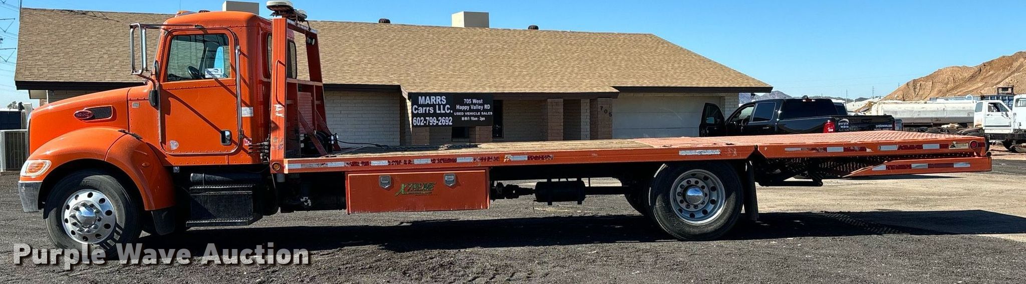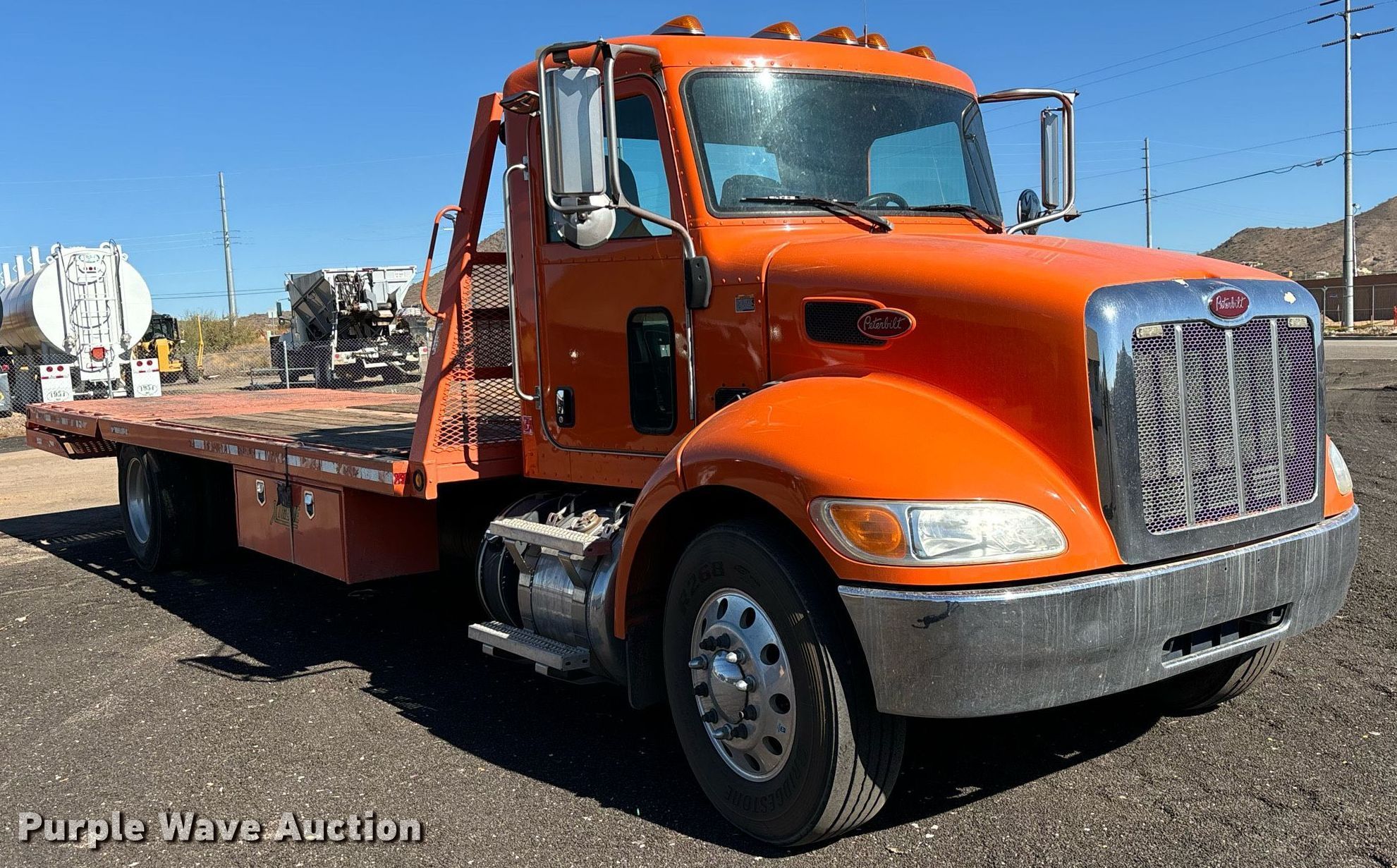 Purple Wave is selling a used Flat Bed Truck in Arizona. This item is a 2017 Peterbilt 337 hydraulic tail flatbed truck with the following: Miles: 231,283 on odometer, VIN: 2NP2HM7X6HM387267
