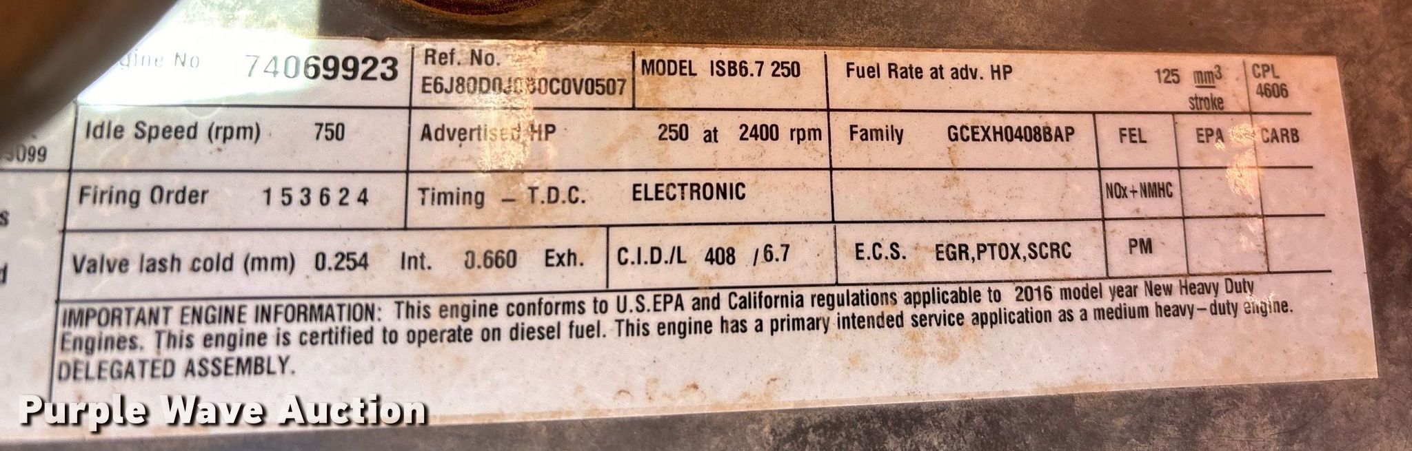 • Paccar ISB6.7 250