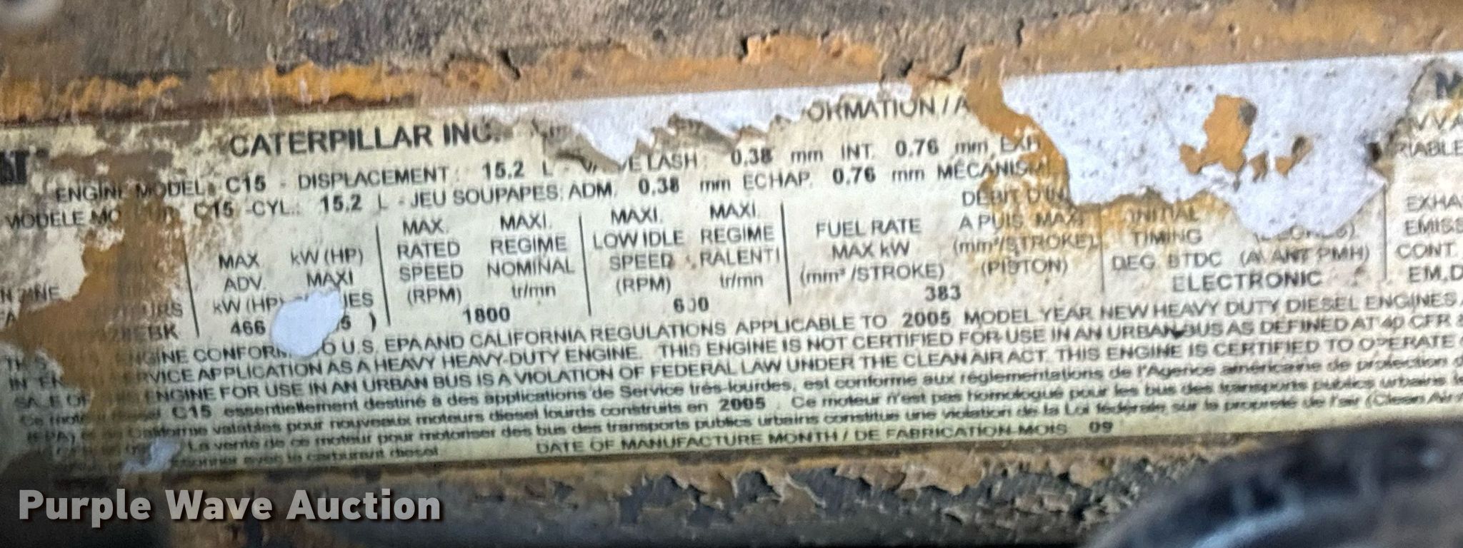 2006 Freightliner Century Class semi truck. Miles: 1,105,782 on odometer, VIN: 1FUJBBAVX6LW66433. Engine Caterpillar C15, Displacement: 15.2L, Cylinders: 8, Fuel type: Diesel, HP: 475, Engine brake. Transmission Automated manual. Chassis Axles: Tandem, Differential lock: Inter-axle, Suspension: Air Dump valves, Brakes: Air, GVWR: 52,000 lbs FAWR: 12,000 lbs, RAWR: 20,000 lbs. Interior AC, Heat, Power windows, Power locks, Cruise control, Air ride cab, Sleeper Sleeper length: 60", Beds: Double bunk, Rear climate control. Features Fuel tank: Dual. Tires Size: 11R/22.5. Arizona title. Title distribution may be delayed up to 30 days from verification of funds. Arizona Equipment Repair. Kingman, AZ 86401