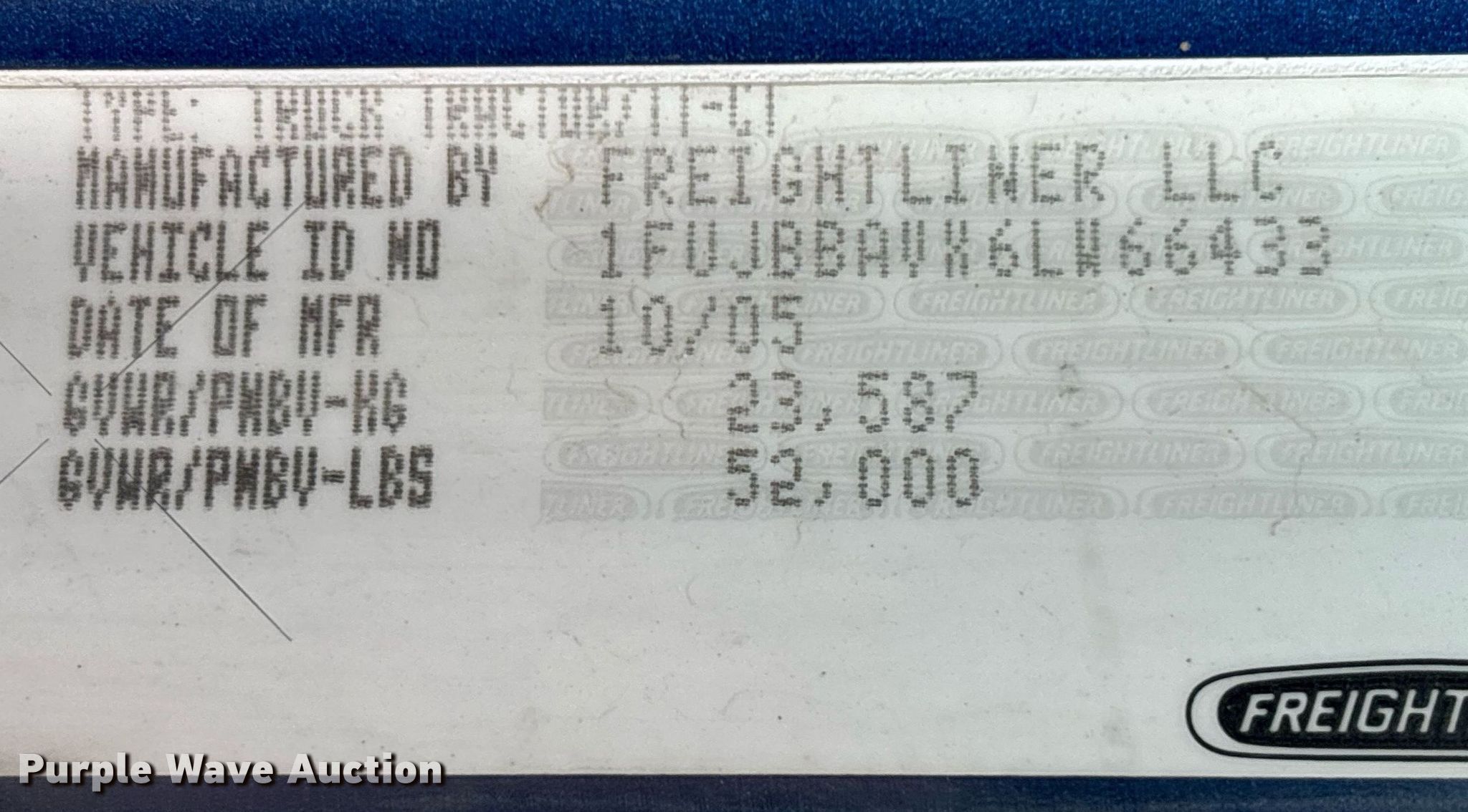 Purple Wave is selling a used Truck Tractor in Arizona. This item is a 2006 Freightliner Century Class semi truck with the following: Miles: 1,105,782 on odometer, VIN: 1FUJBBAVX6LW66433