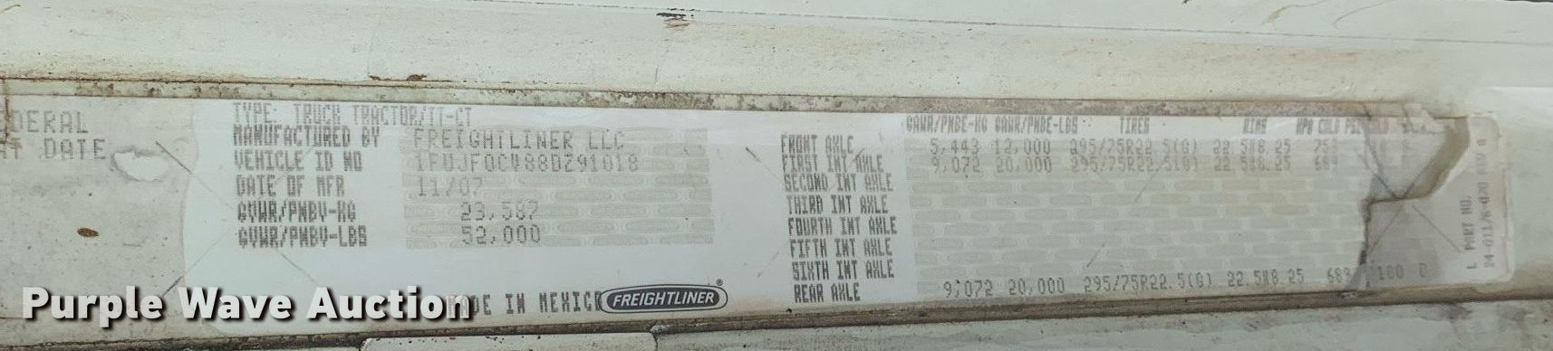 Purple Wave is selling a used Truck Tractor in Texas. This item is a 2008 Freightliner Columbia 112 semi truck with the following: Miles: 283,180 on odometer, Hours: 11,277 on meter, VIN: 1FUJF0CV88DZ91018, Unit #: 817