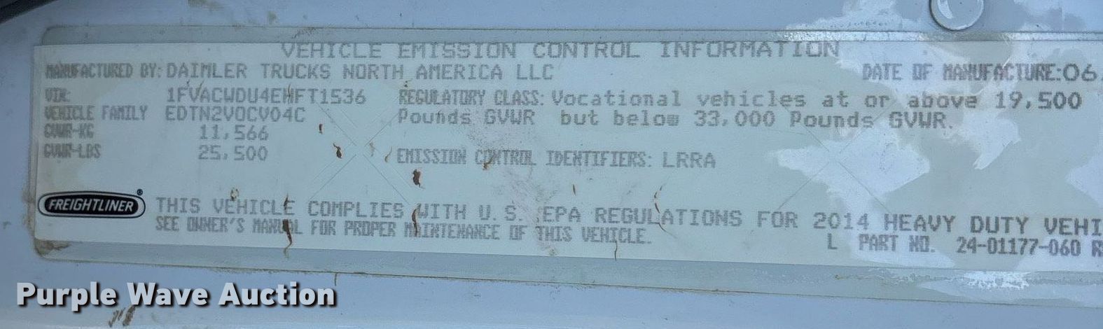 Purple Wave is selling a used Flat Bed Truck in Oklahoma. This item is a 2014 Freightliner Business Class M2 106 flatbed truck with the following: Miles: 200,210 on odometer, VIN: 1FVACWDU4EHFT1536, Unit #: 2619