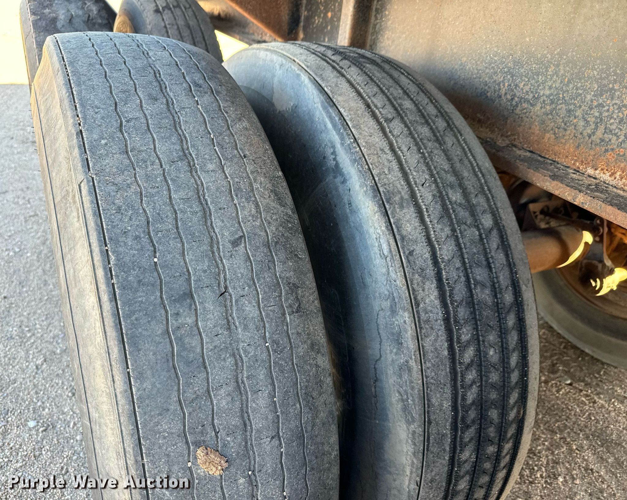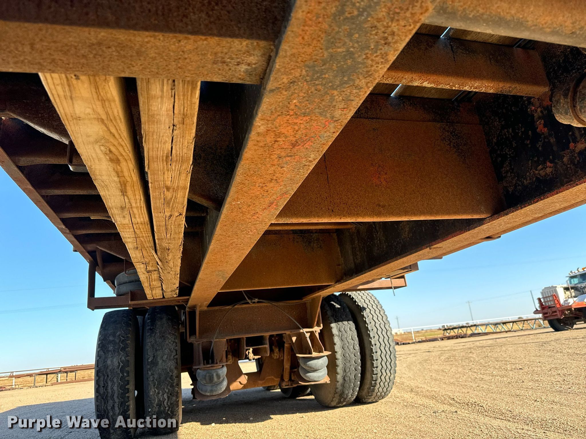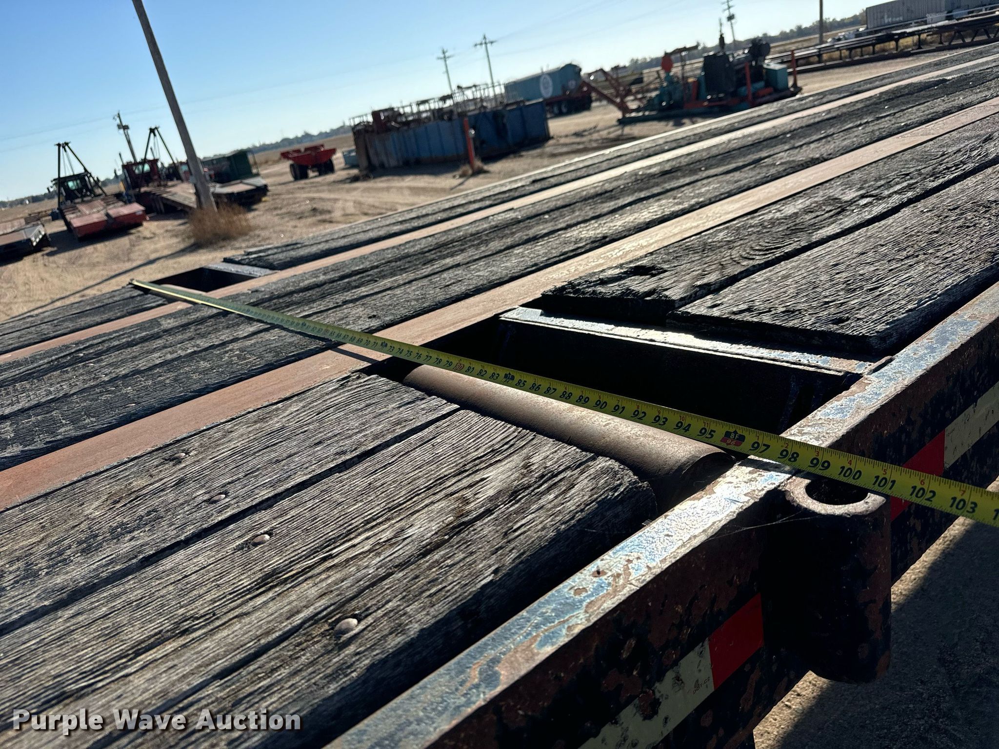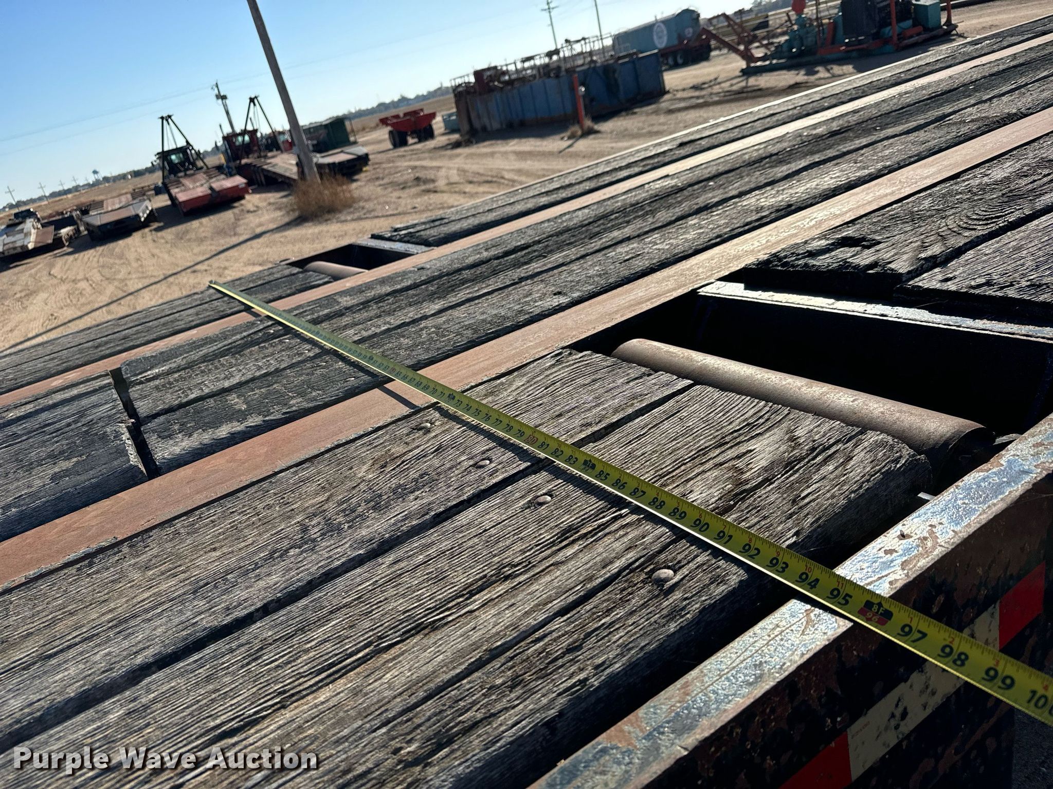 1980 Shop built oilfield trailer. VIN: TR145779. Dimensions Overall: 41' L x 102" W, Deck: 41' L x 96" W, Deck height: 59". Features Deck type: Wood, Rolling tailboard. Chassis Landing gear: Dual, Suspension: Spring, Brakes: Air, Axles: Triple. Tires Steel wheels, Size: 11R22.5, 11R24.5. Kansas title. Flex Inc. Ellinwood, KS 67526