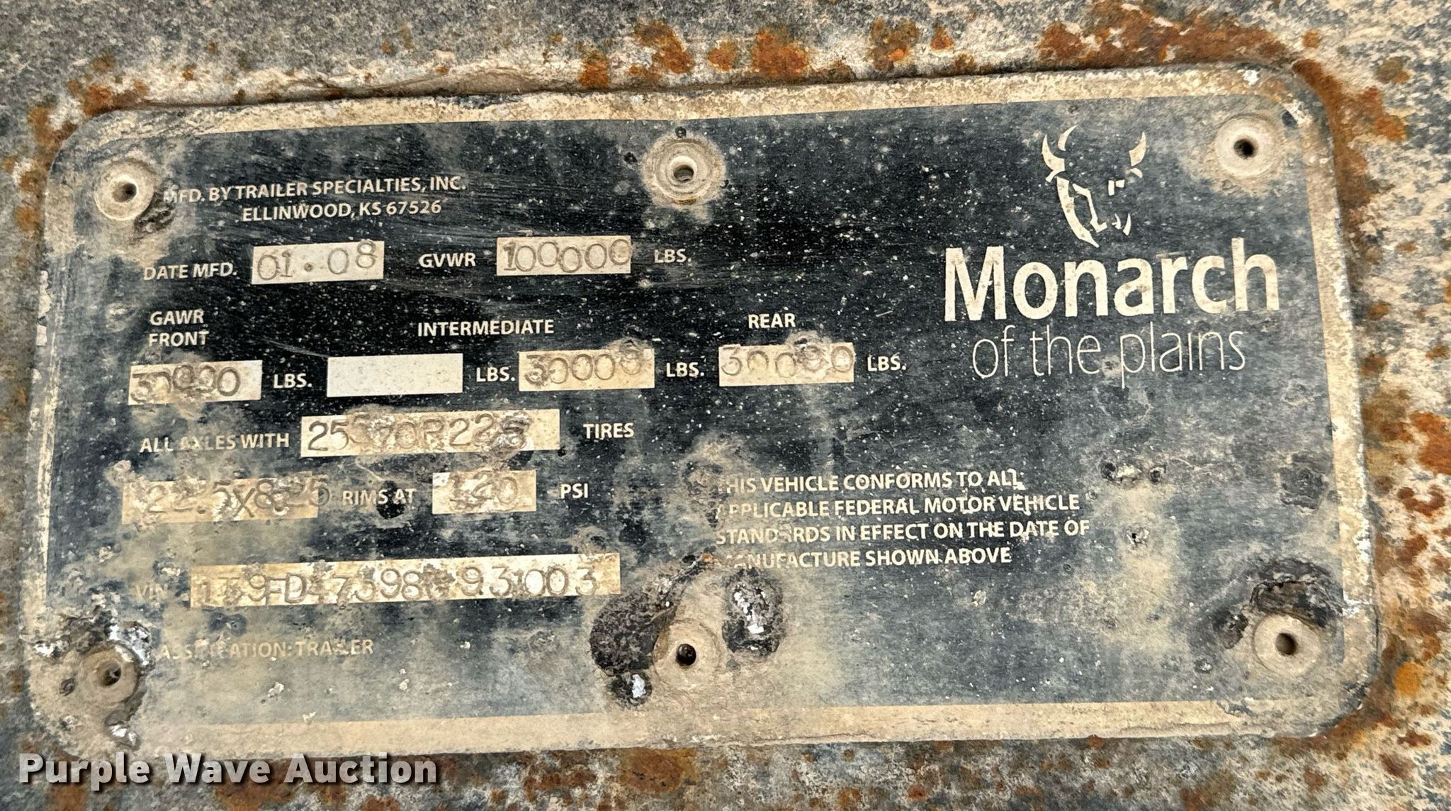 Purple Wave is selling a used Oilfield Trailer in Kansas. This item is a 2008 Monarch drop deck oilfield trailer with the following: VIN: 1T9FD47398G931003