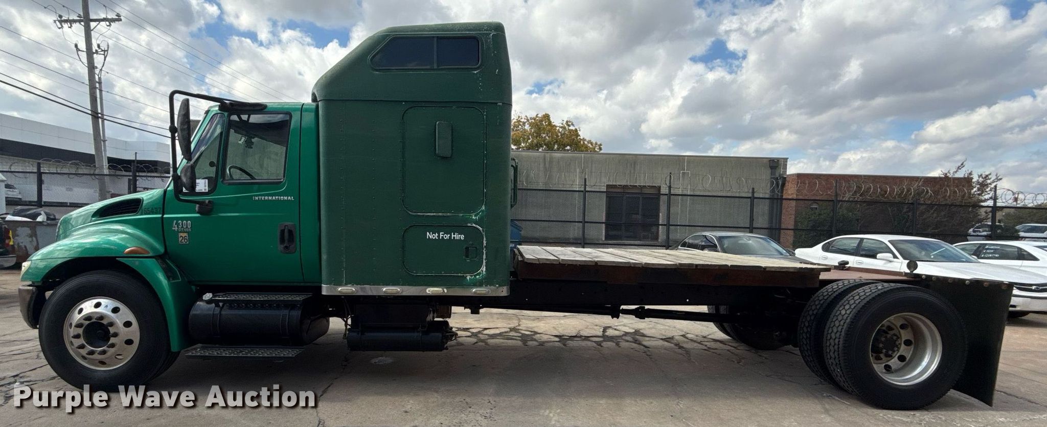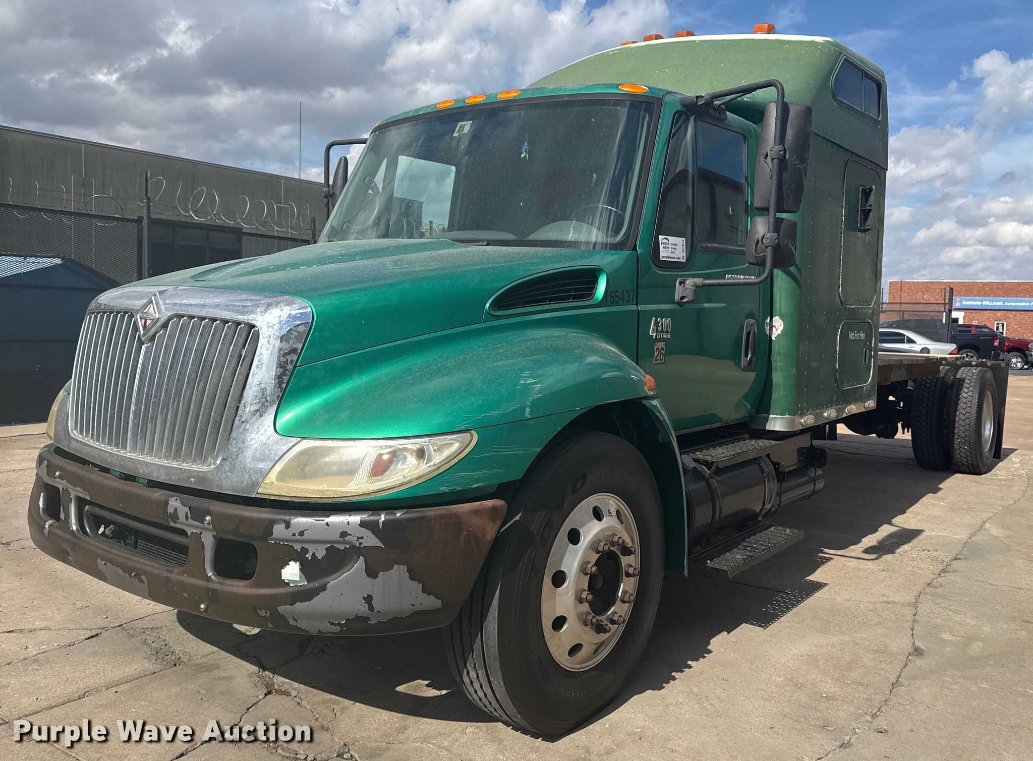This 2003 International 4300 truck cab and chassis will sell to the highest bidder regardless of price.