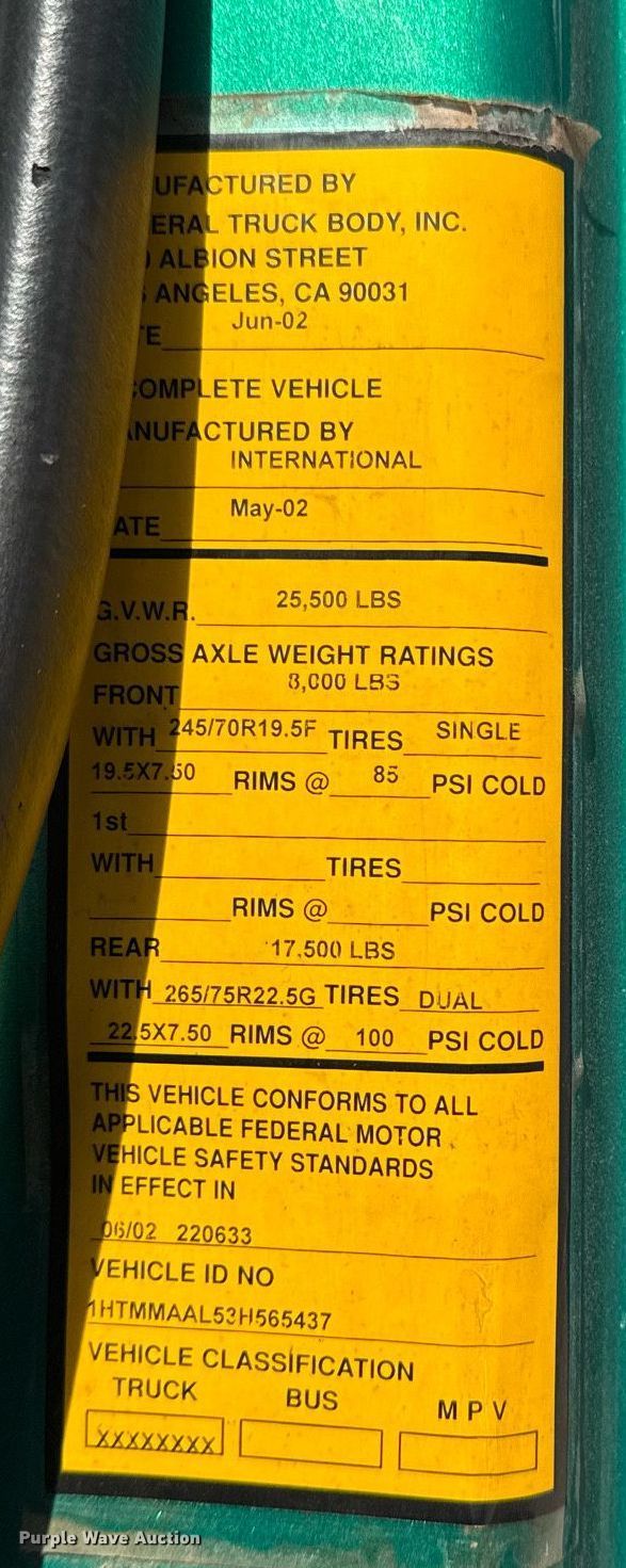 Purple Wave is selling a used Truck Chassis in Oklahoma. This item is a 2003 International 4300 truck cab and chassis with the following: Miles: 461,260 on odometer, Hours: 12,386 on meter, VIN: 1HTMMAAL53H565437