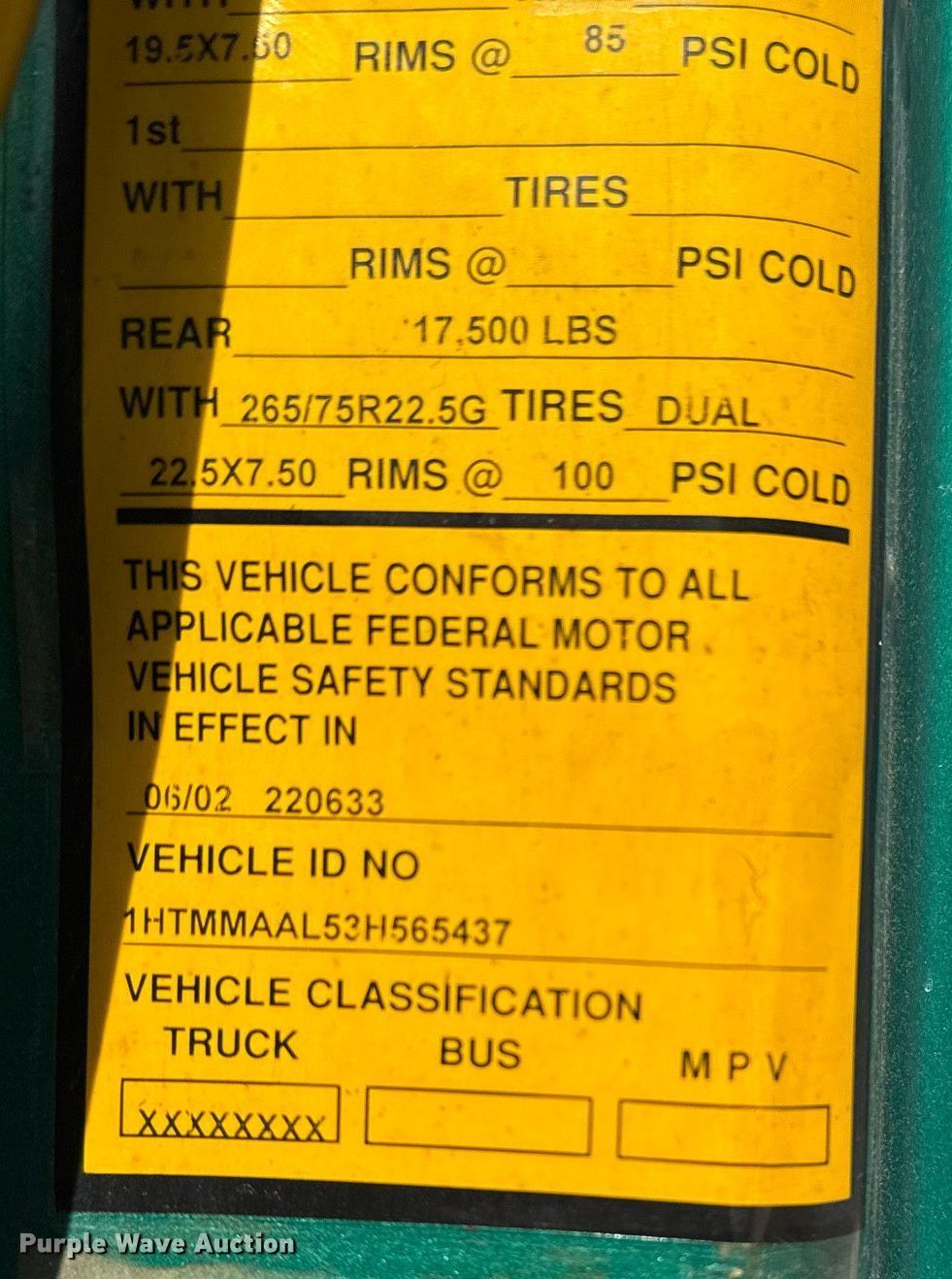 - VIN: 1HTMMAAL53H565437