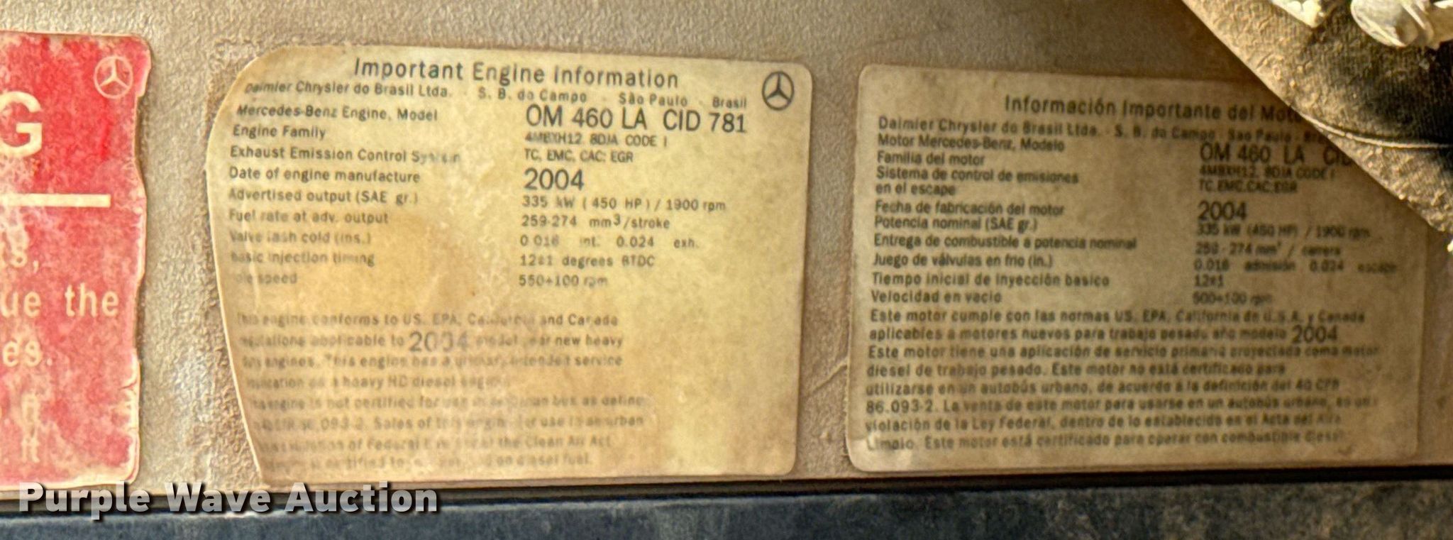 2005 Sterling LT9500 truck cab and chassis. Miles: 172,776 on odometer, Hours: 5,938 on meter, VIN: 2FWBAZCV75AU15510. Engine Mercedes-Benz OM460LA, Displacement: 12.0L, Cylinders: 6, Fuel type: Diesel, HP: 450, Engine brake. Transmission Automatic. Chassis Axles: Single, Suspension: Spring, Brakes: Hydraulic, PTO, Truck chassis: 16' 8", GVWR: 40,600 lbs FAWR: 14,600 lbs, RAWR: 26,000 lbs. Interior AC, Heat, Cruise control, Air ride cab. Features Fuel tank: Single. Tires Front: 11R22.5, Rear: 12R22.5. Notes PTO not connected. Kansas title. Title distribution may be delayed up to 30 days from verification of funds. G.W. Van Keppel Company. Tulsa, OK 74130