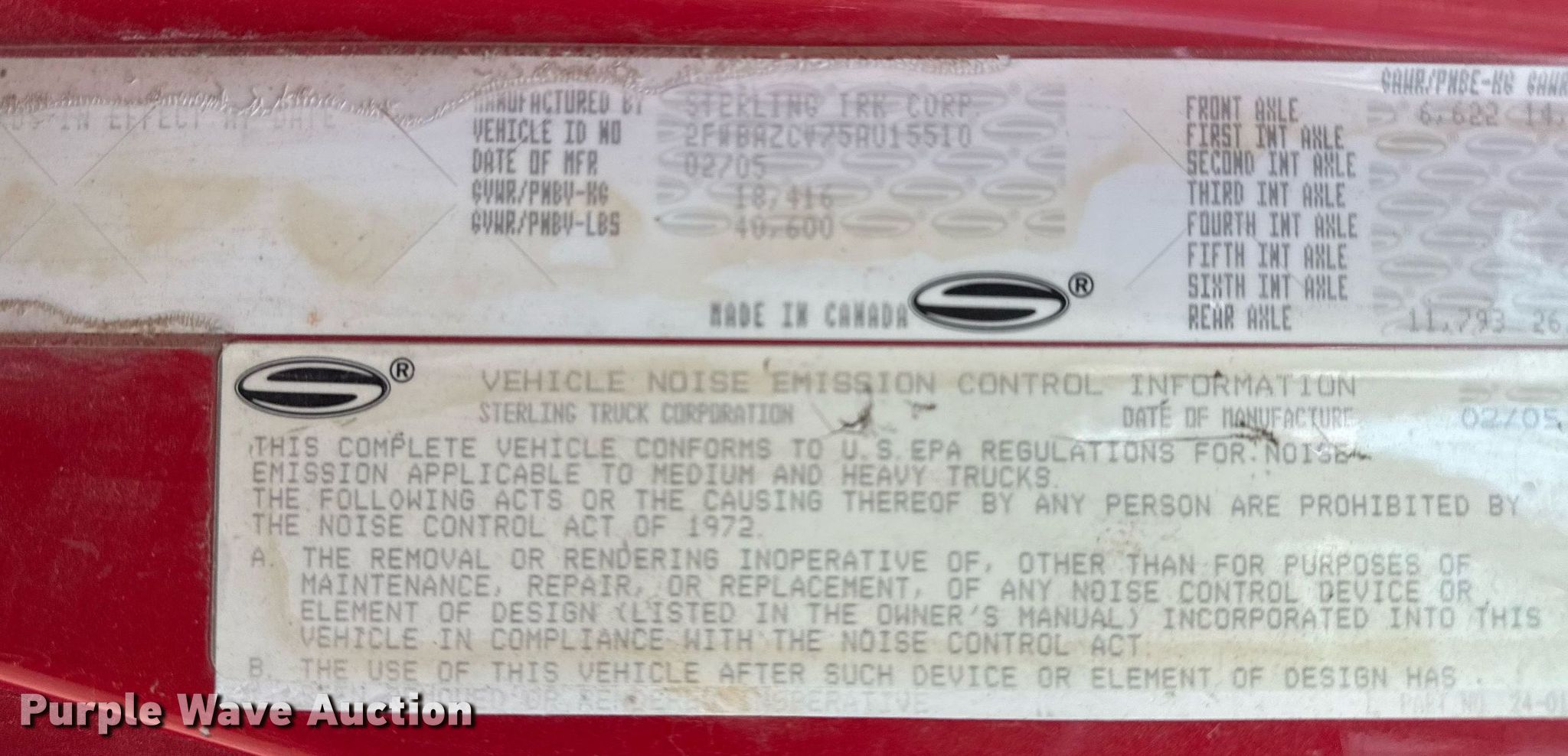 Purple Wave is selling a used Truck Chassis in Oklahoma. This item is a 2005 Sterling LT9500 truck cab and chassis with the following: Miles: 172,776 on odometer, Hours: 5,938 on meter, VIN: 2FWBAZCV75AU15510