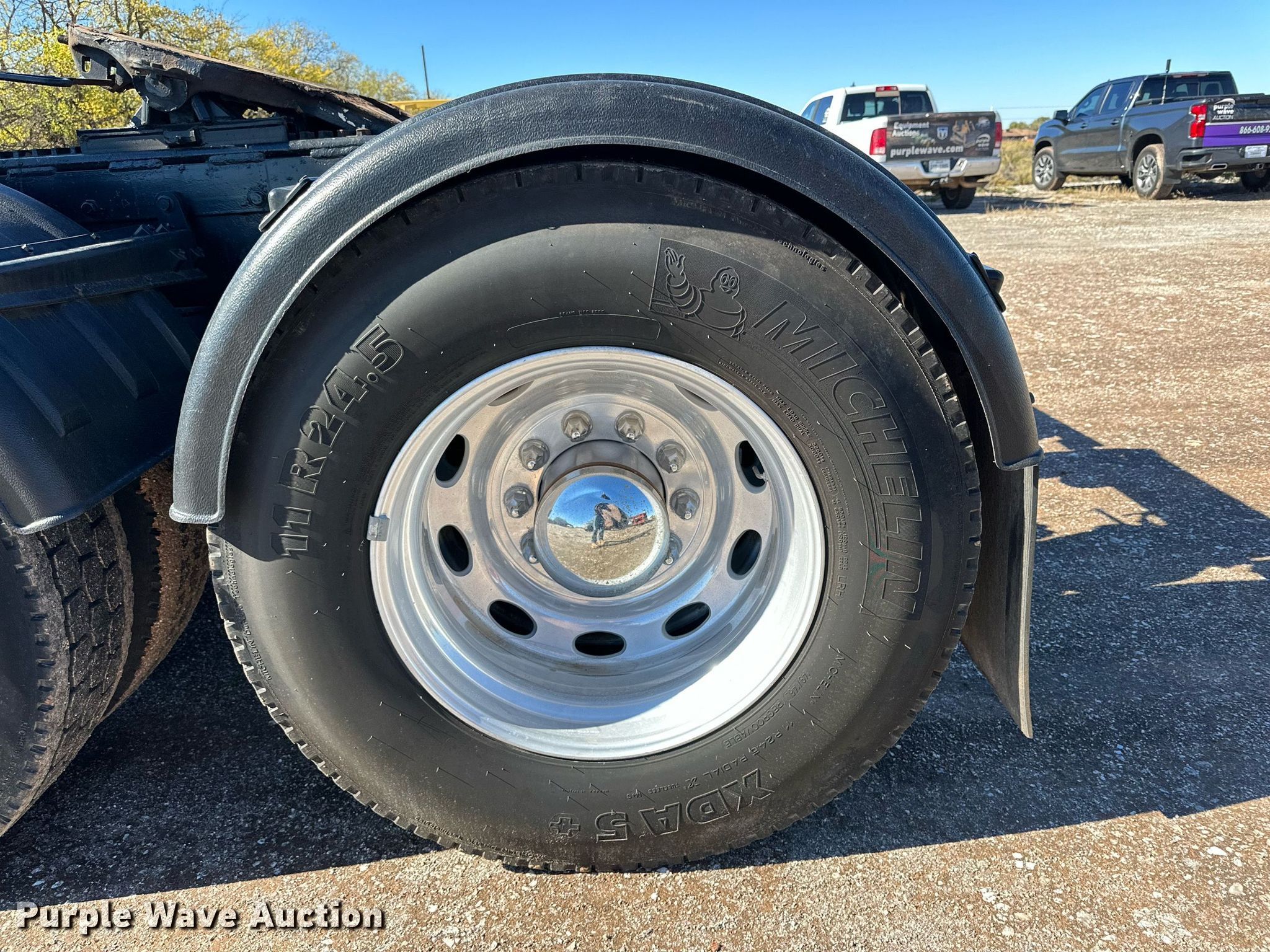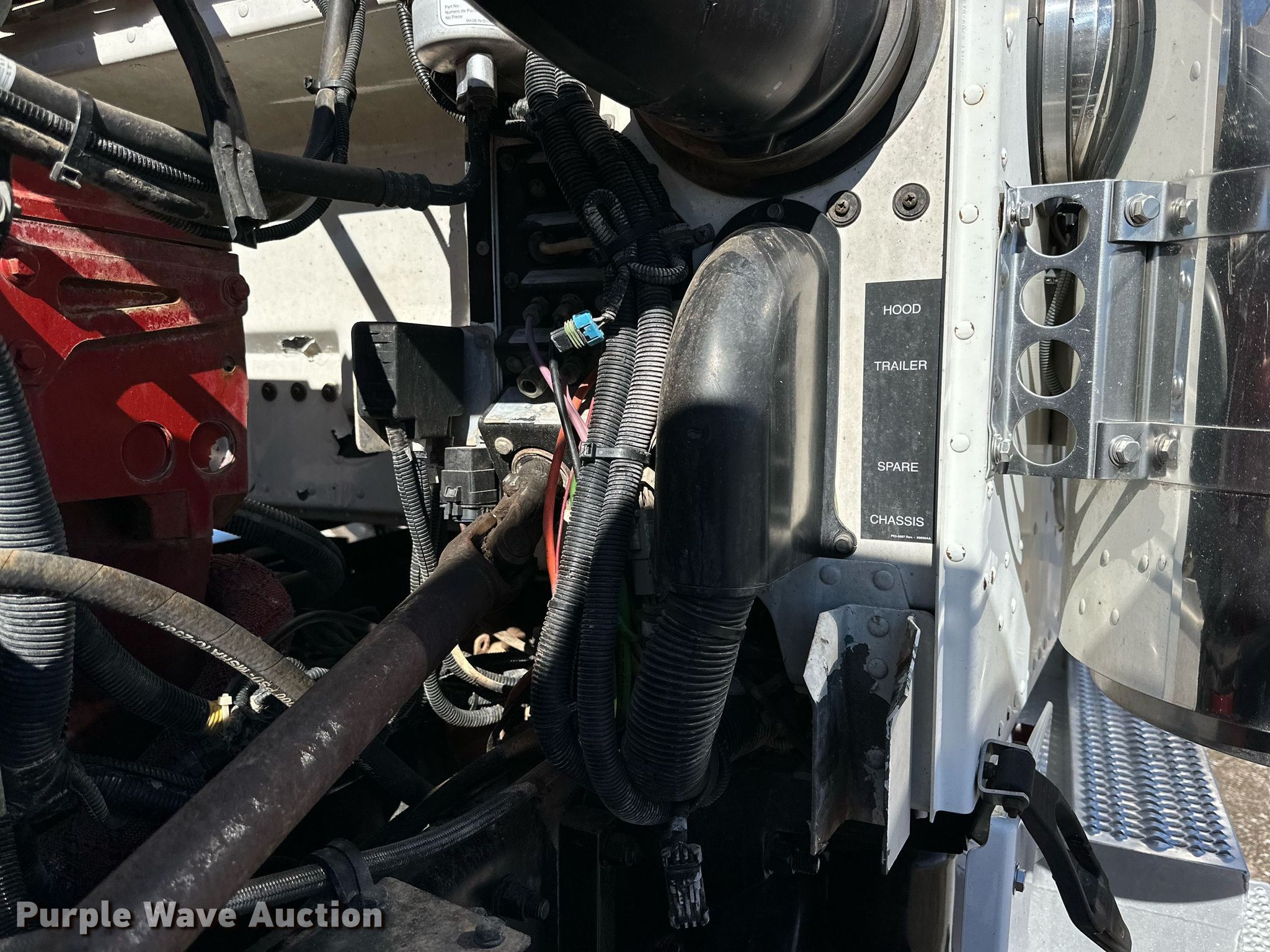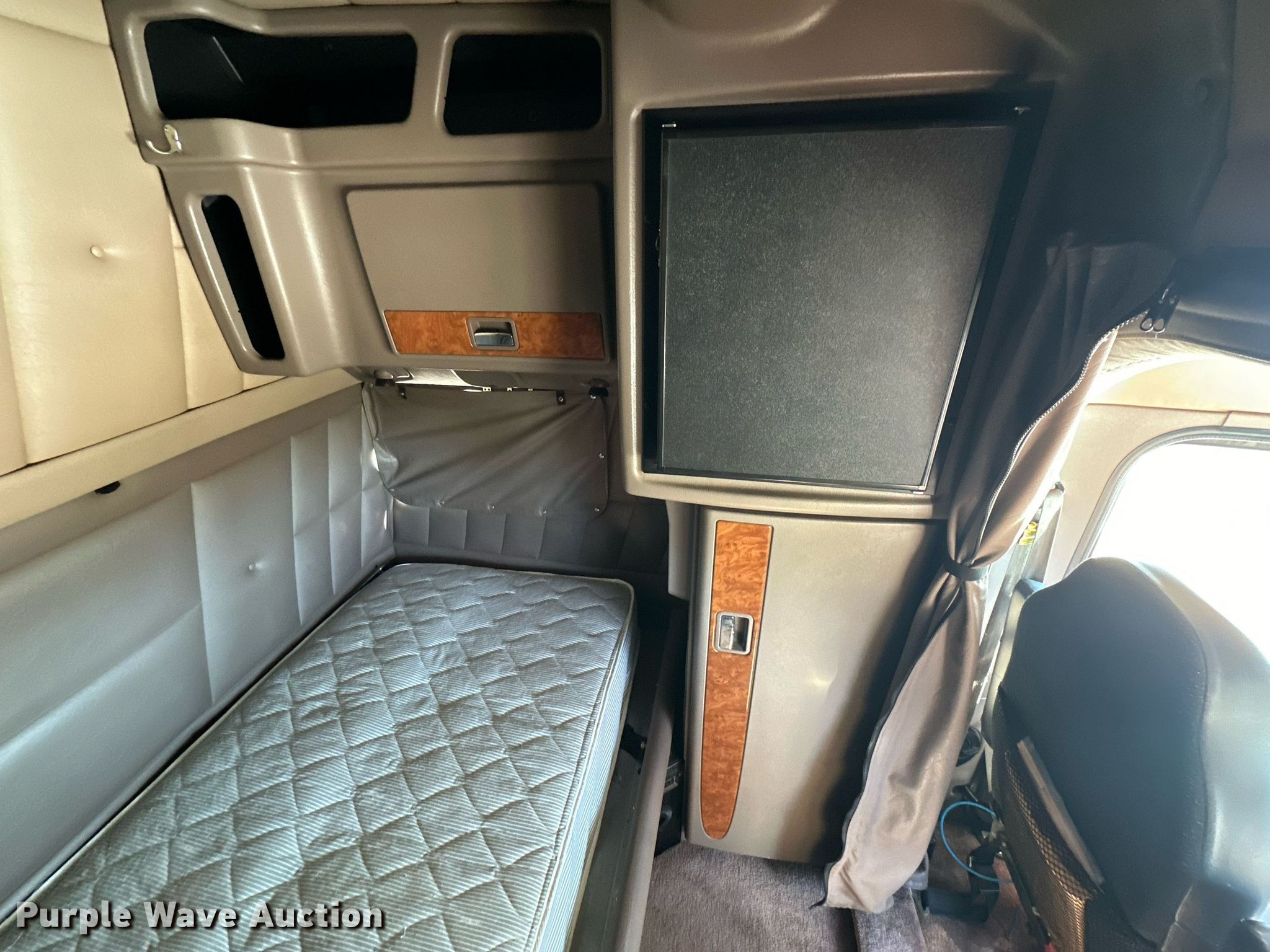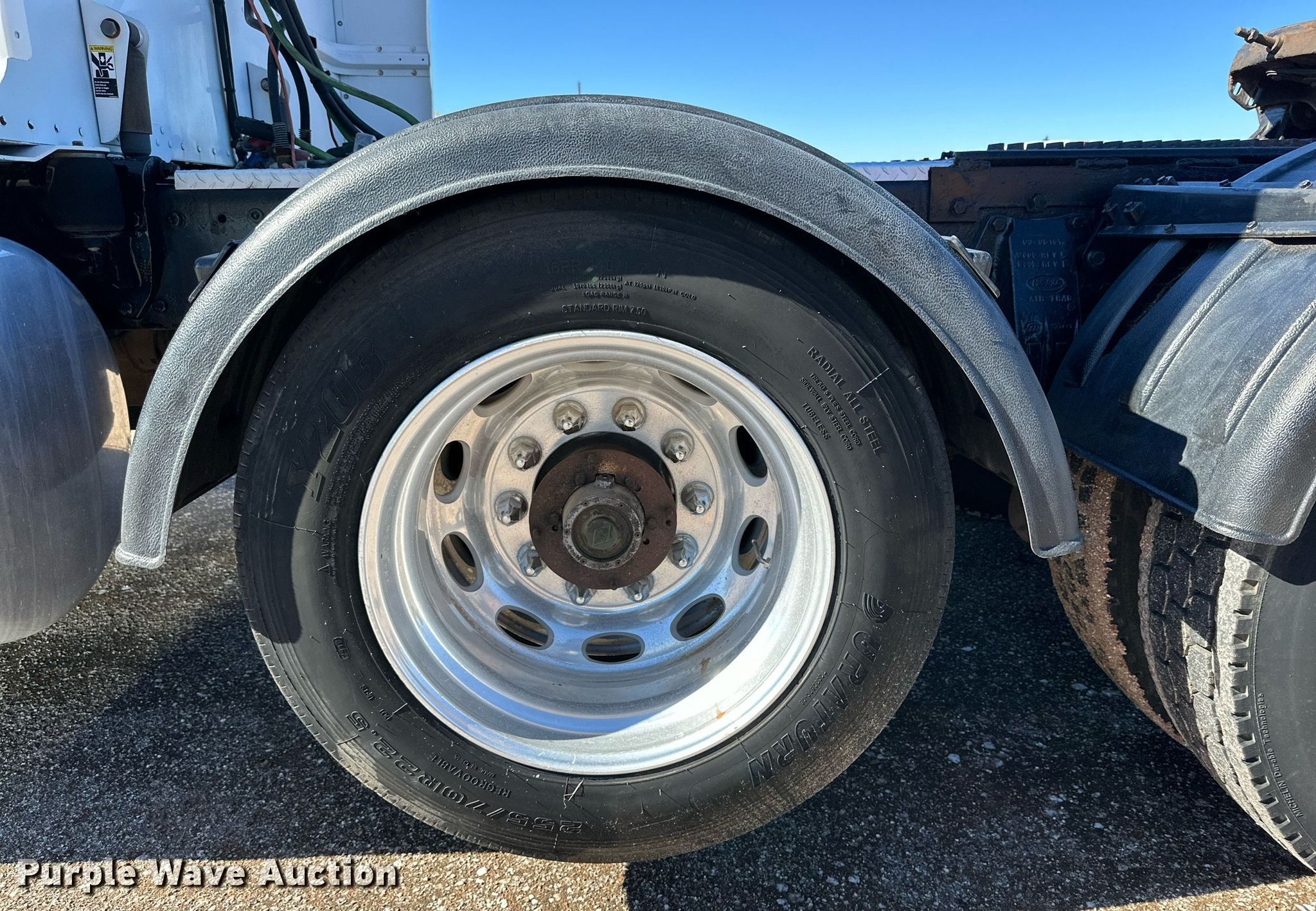 2007 Peterbilt 379 semi truck. Miles: 851,504 on odometer, Hours: 9,162 on meter, VIN: 1XP5D4EX17N735394. Engine Cummins ISX 565, Serial: 79215047, Displacement: 14.9L, Cylinders: 6, Fuel type: Diesel, HP: 565, Engine brake. Transmission Eaton Fuller, Manual, Speed: 18. Chassis Axles: Triple, Pusher axle, Differential lock: Inter-axle, Suspension: Air, Brakes: Air, PTO, Double frame, GVWR: 74,600 lbs FAWR: 14,320 lbs, IAWR: 23,000 lbs, RAWR: 23,000 lbs, Lift axle GAWR: 20,280 lbs. Interior AC, Heat, Power windows, Power locks, Cruise control, Air ride cab, Sleeper Sleeper length: 5' 6", Beds: Single, Refrigerator, Rear climate control, Auxiliary power unit Dynasys, Engine Yanmar.. Features Deck plate: Aluminum, Fifth wheel type: Air operated, Sliding, Fuel tank: Dual. Tires Size: 385/65R22.5, Lift axle: 255/70R22.5. Notes EGR deleted. Oklahoma title. Title has a lien that will be released following the close of the auction. Title distribution may be delayed up to 30 days from verification of funds. Reydon, OK 73660