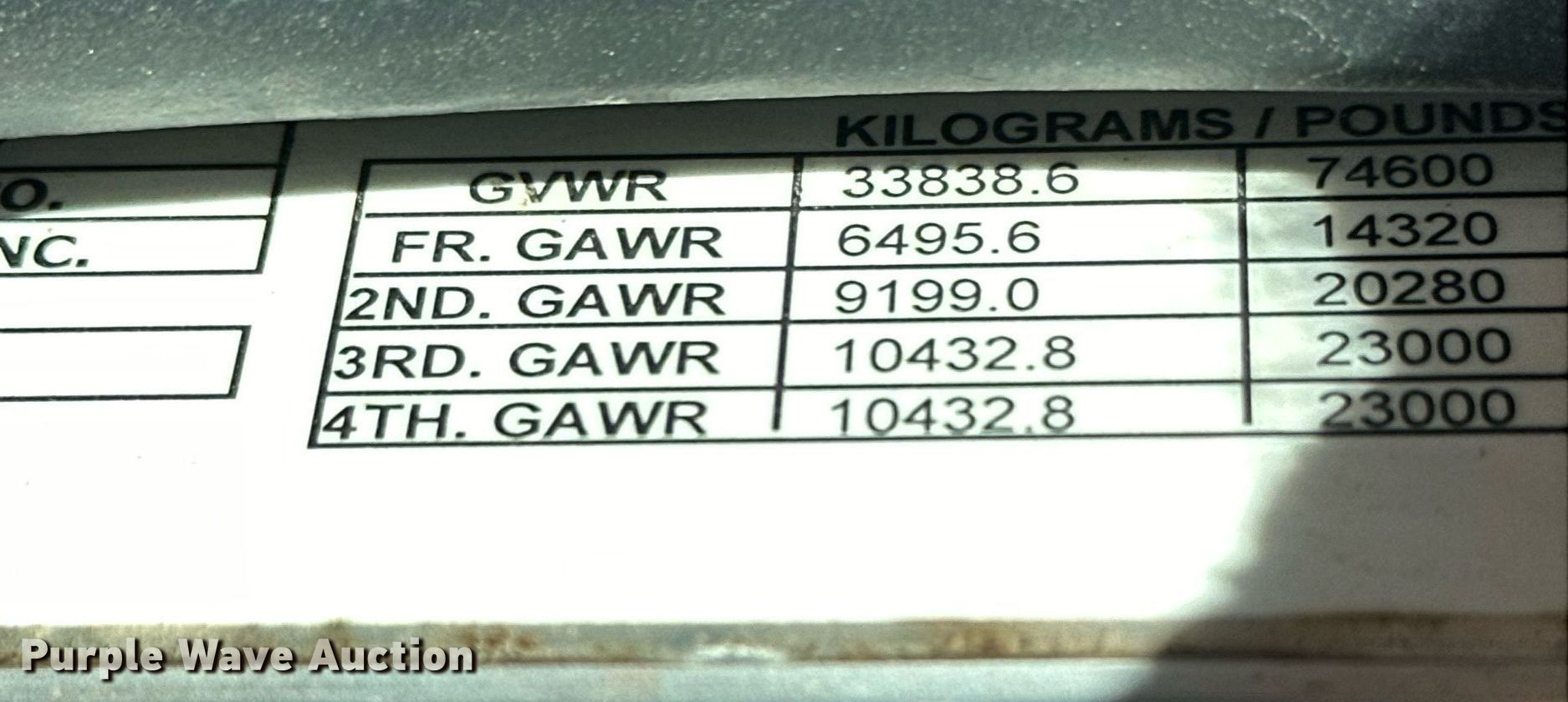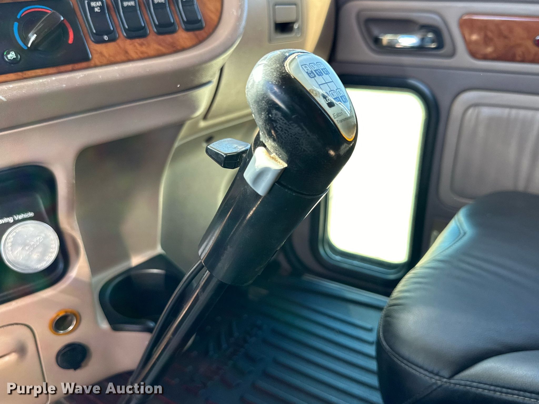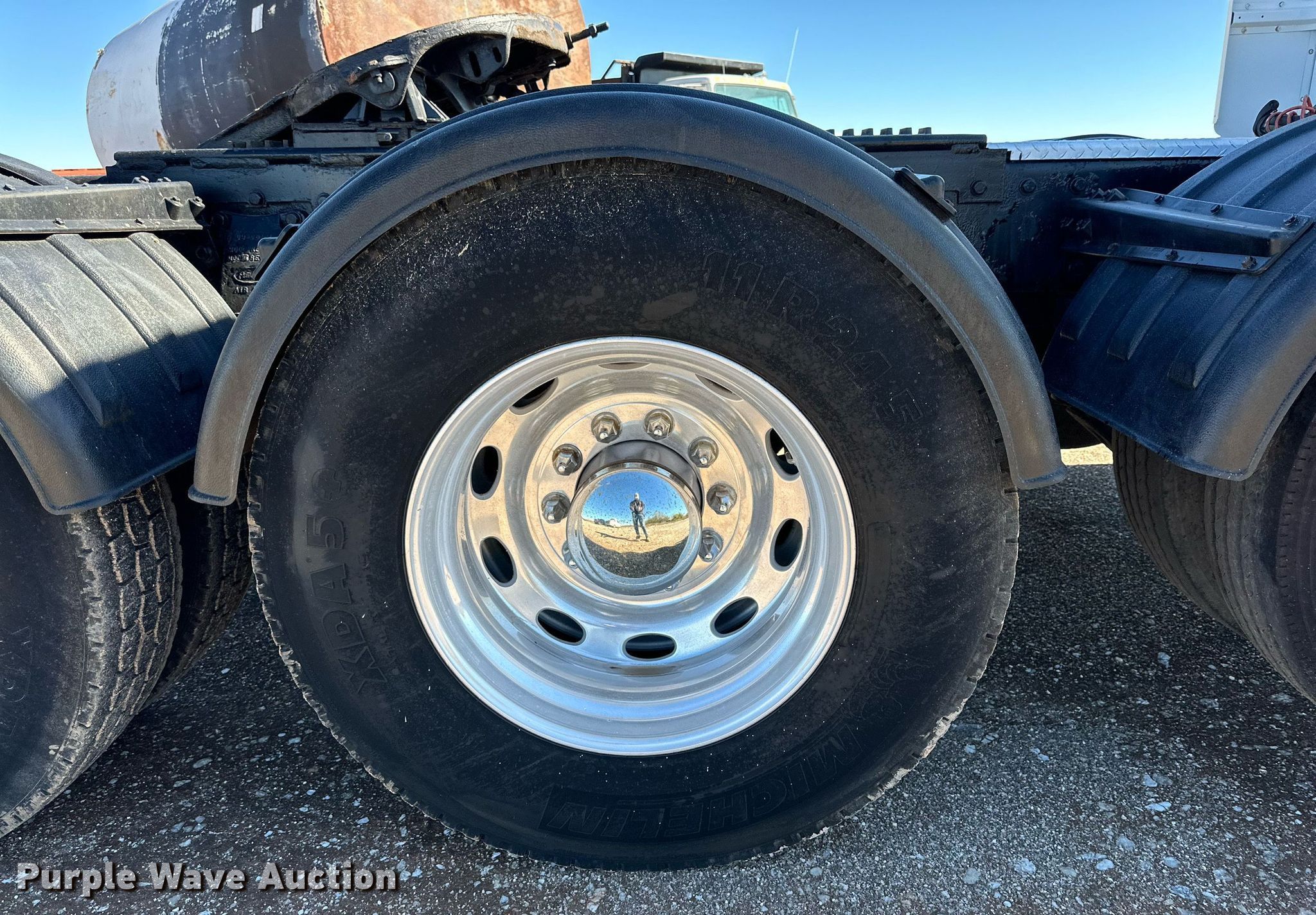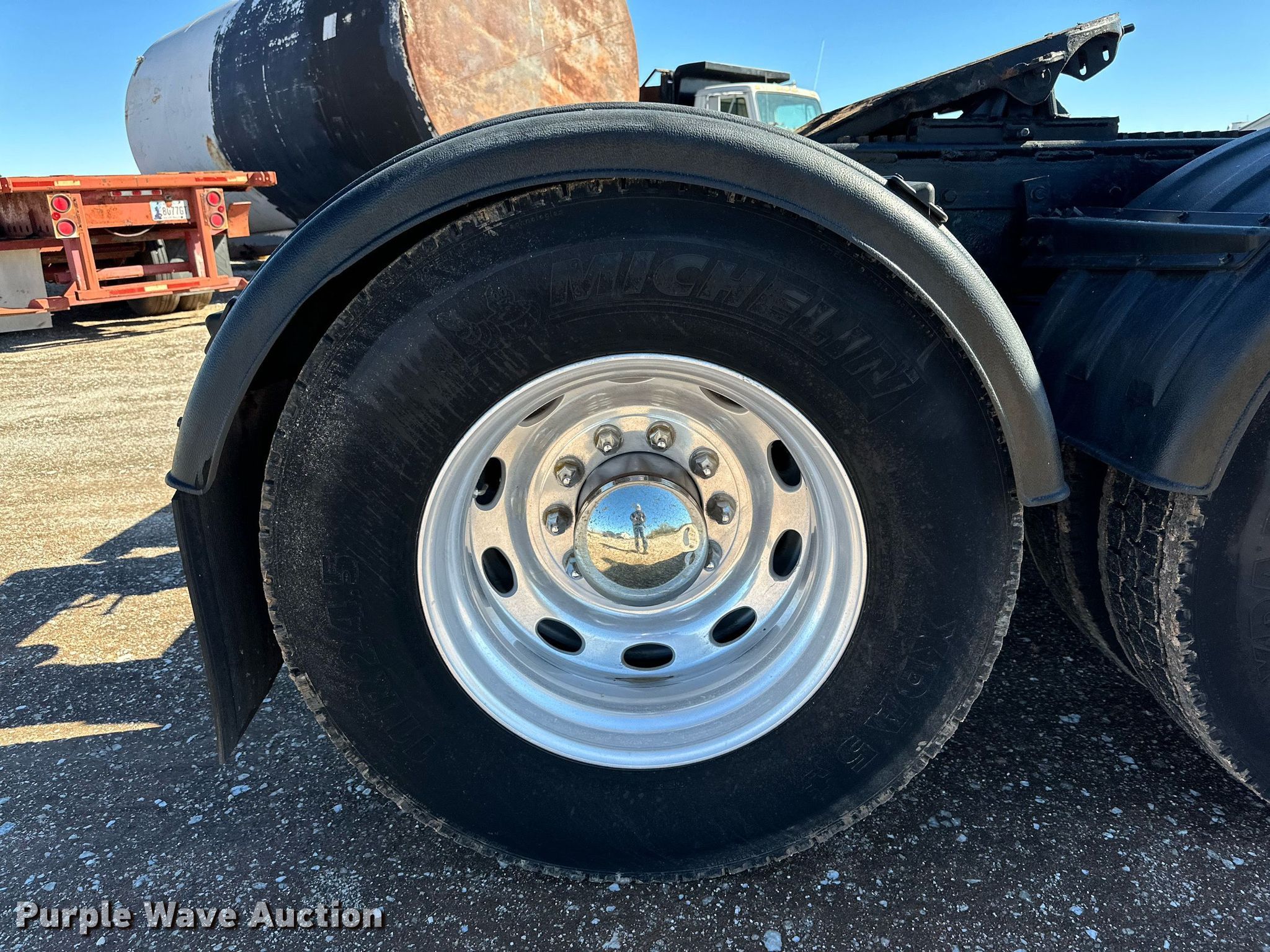 2007 Peterbilt 379 semi truck. Miles: 851,504 on odometer, Hours: 9,162 on meter, VIN: 1XP5D4EX17N735394. Engine Cummins ISX 565, Serial: 79215047, Displacement: 14.9L, Cylinders: 6, Fuel type: Diesel, HP: 565, Engine brake. Transmission Eaton Fuller, Manual, Speed: 18. Chassis Axles: Triple, Pusher axle, Differential lock: Inter-axle, Suspension: Air, Brakes: Air, PTO, Double frame, GVWR: 74,600 lbs FAWR: 14,320 lbs, IAWR: 23,000 lbs, RAWR: 23,000 lbs, Lift axle GAWR: 20,280 lbs. Interior AC, Heat, Power windows, Power locks, Cruise control, Air ride cab, Sleeper Sleeper length: 5' 6", Beds: Single, Refrigerator, Rear climate control, Auxiliary power unit Dynasys, Engine Yanmar.. Features Deck plate: Aluminum, Fifth wheel type: Air operated, Sliding, Fuel tank: Dual. Tires Size: 385/65R22.5, Lift axle: 255/70R22.5. Notes EGR deleted. Oklahoma title. Title has a lien that will be released following the close of the auction. Title distribution may be delayed up to 30 days from verification of funds. Reydon, OK 73660