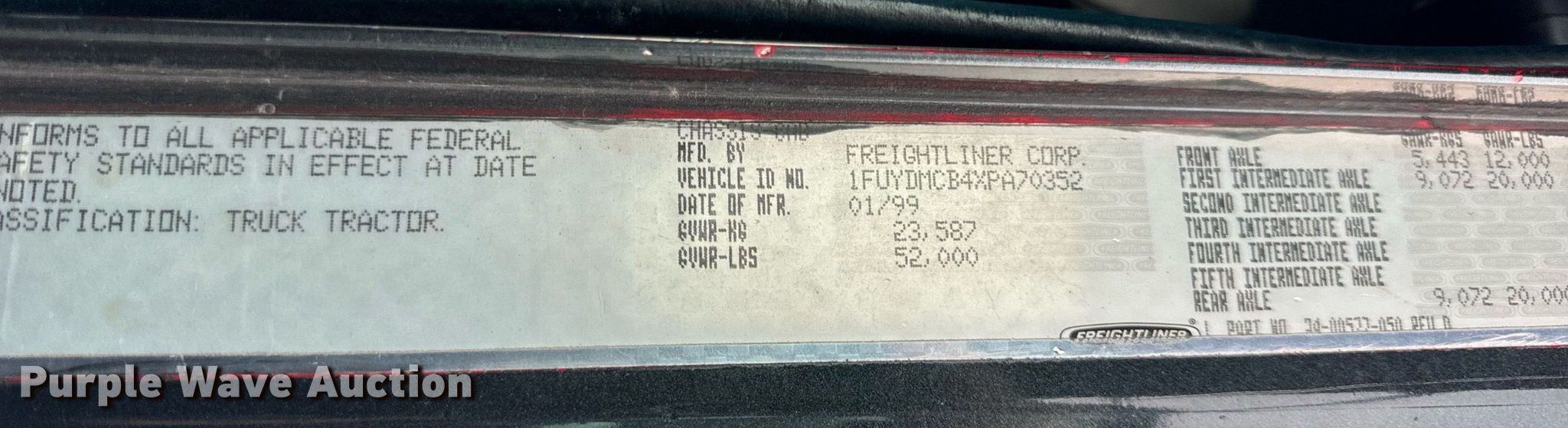 Purple Wave is selling a used Truck Tractor in Indiana. This item is a 1999 Freightliner FLD120 semi truck with the following: Miles: 556,043 on odometer, VIN: 1FUYDMCB4XPA70352